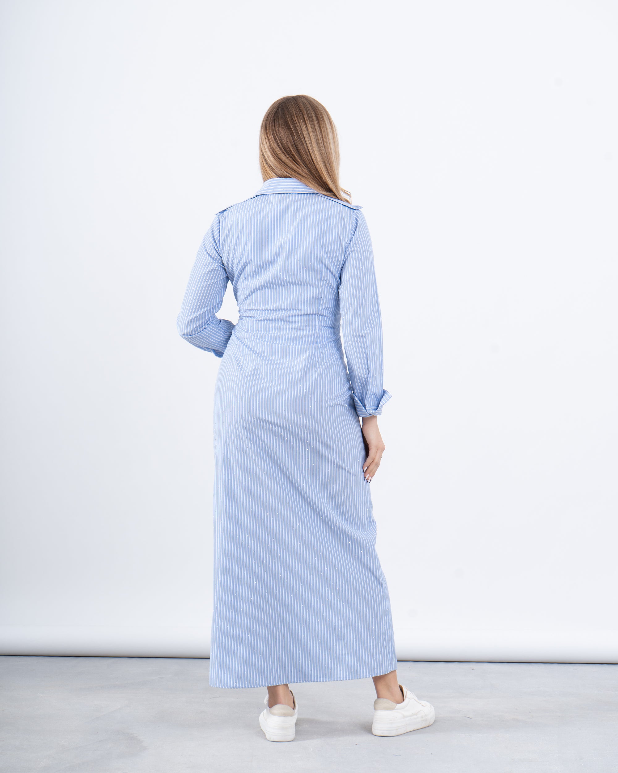 A classic with a shimmering twist ✨ This striped long dress blends timeless elegance with modern details. Featuring delicate embellishments that catch the light, it’s designed for effortless day-to-night styling. The flowing silhouette and tailored details make it a go-to for both casual and chic looks.