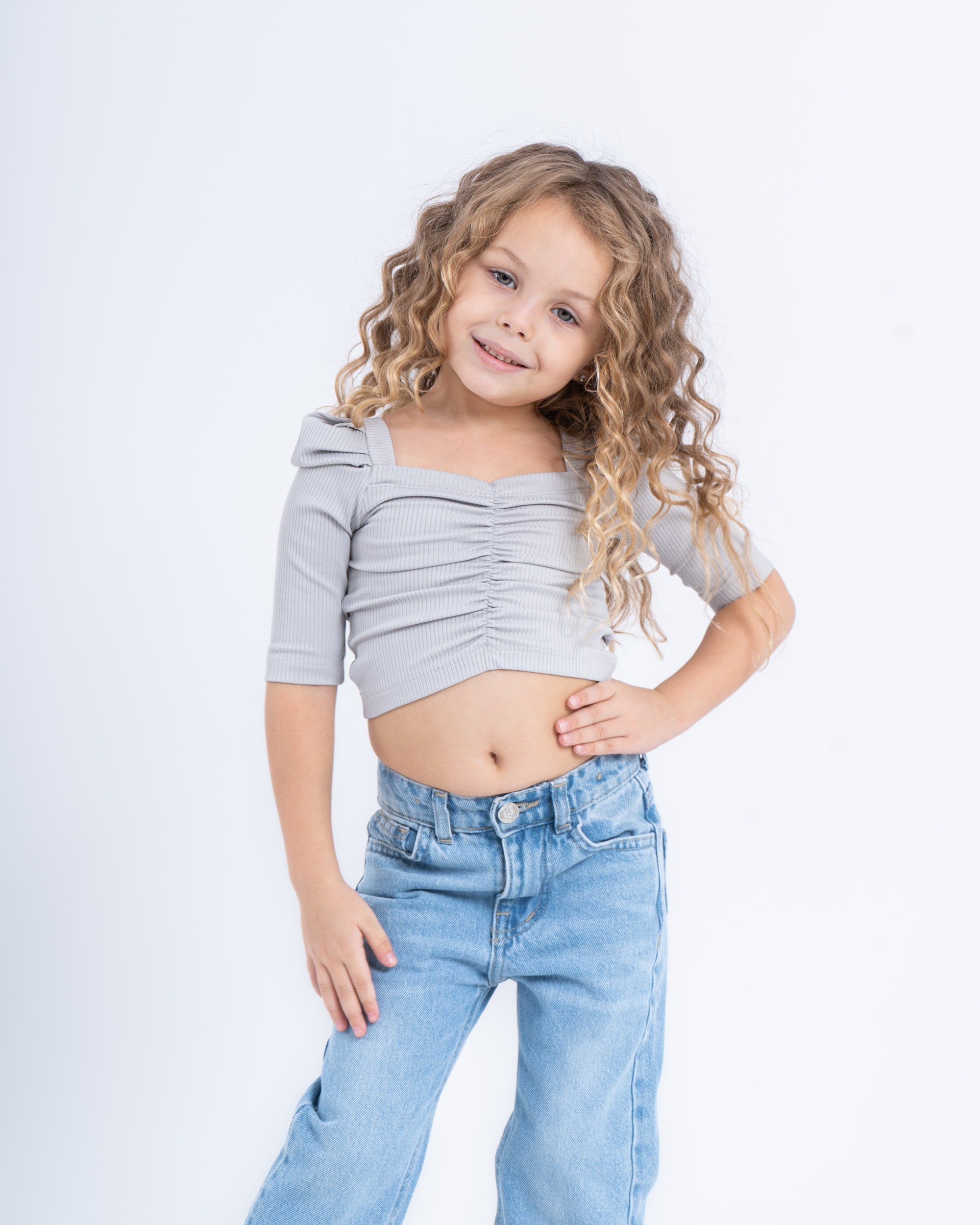 Grey and Playful: The Puff Sleeve Top, This adorable grey top features playful puff sleeves that add a touch of whimsy to any outfit. The soft, comfy fabric and cute sleeves make it perfect for twirling, playing, and conquering any adventure! She'll be the star of the show in this charming grey top. ✨