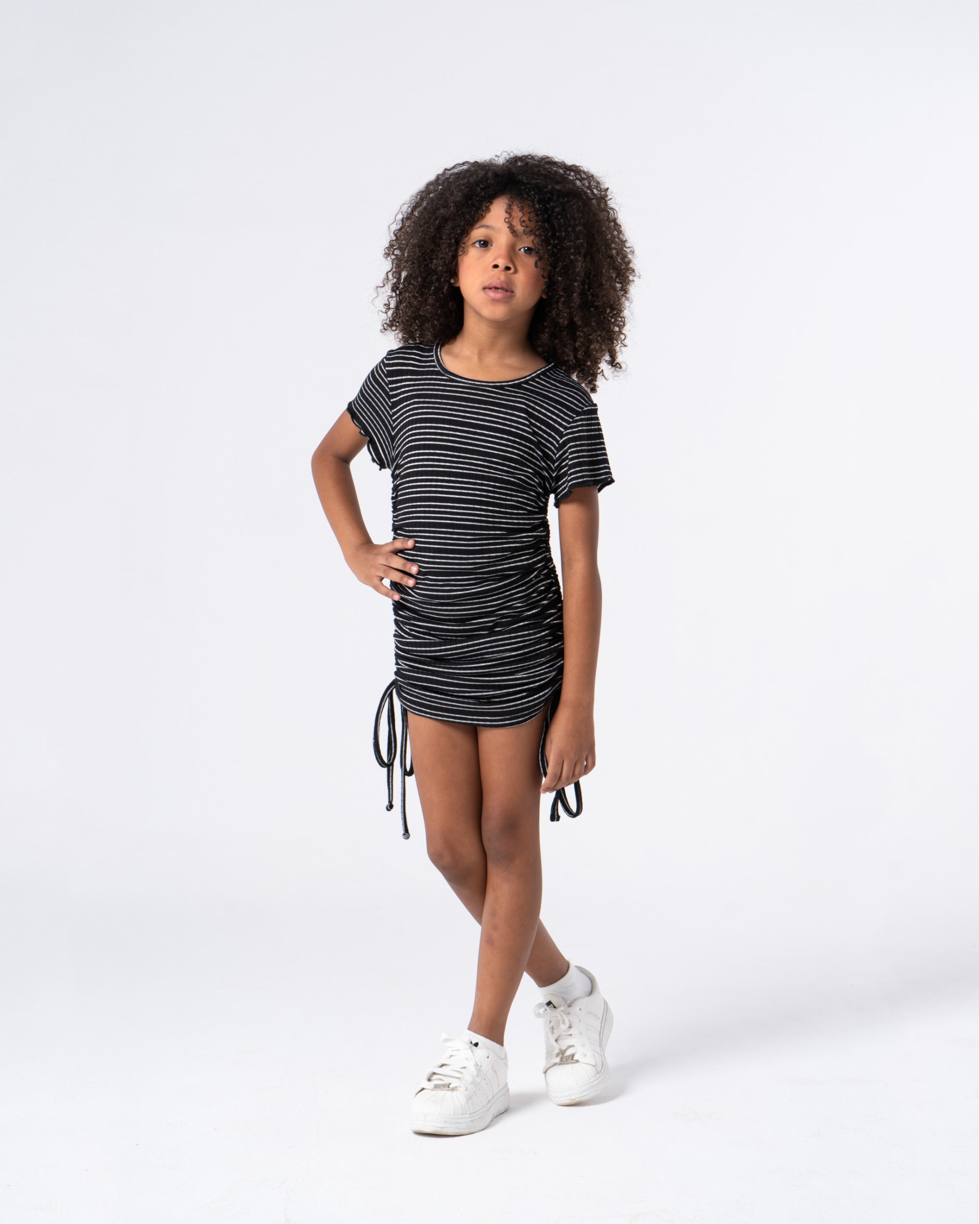 Cozy Comfort with a Twist: The Beige Drawstring Dress, This adorable beige dress is the perfect blend of comfy and cute! The soft fabric and relaxed fit keep her comfortable all day long, while the drawstring sides add a touch of playful style.