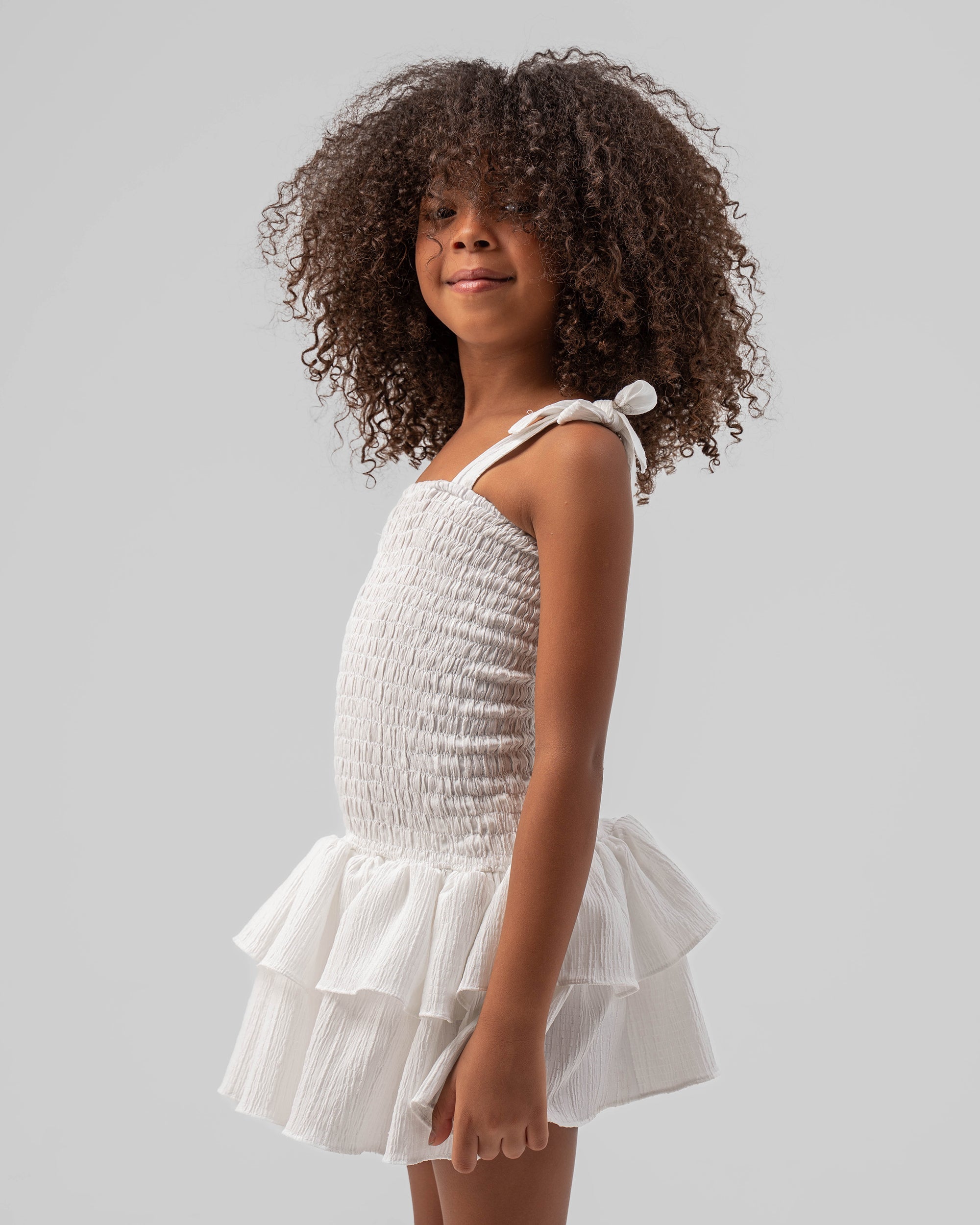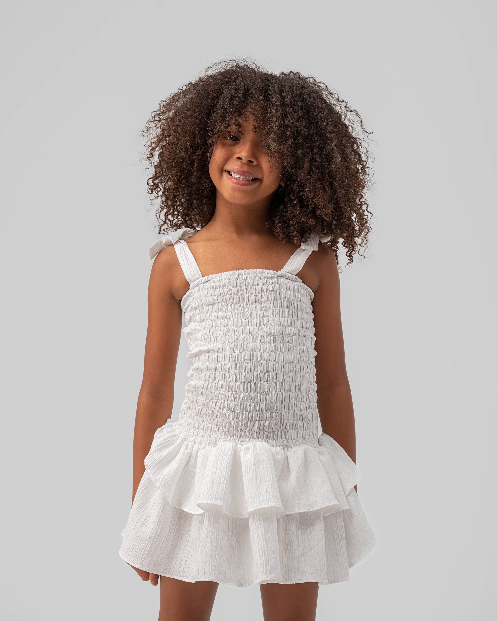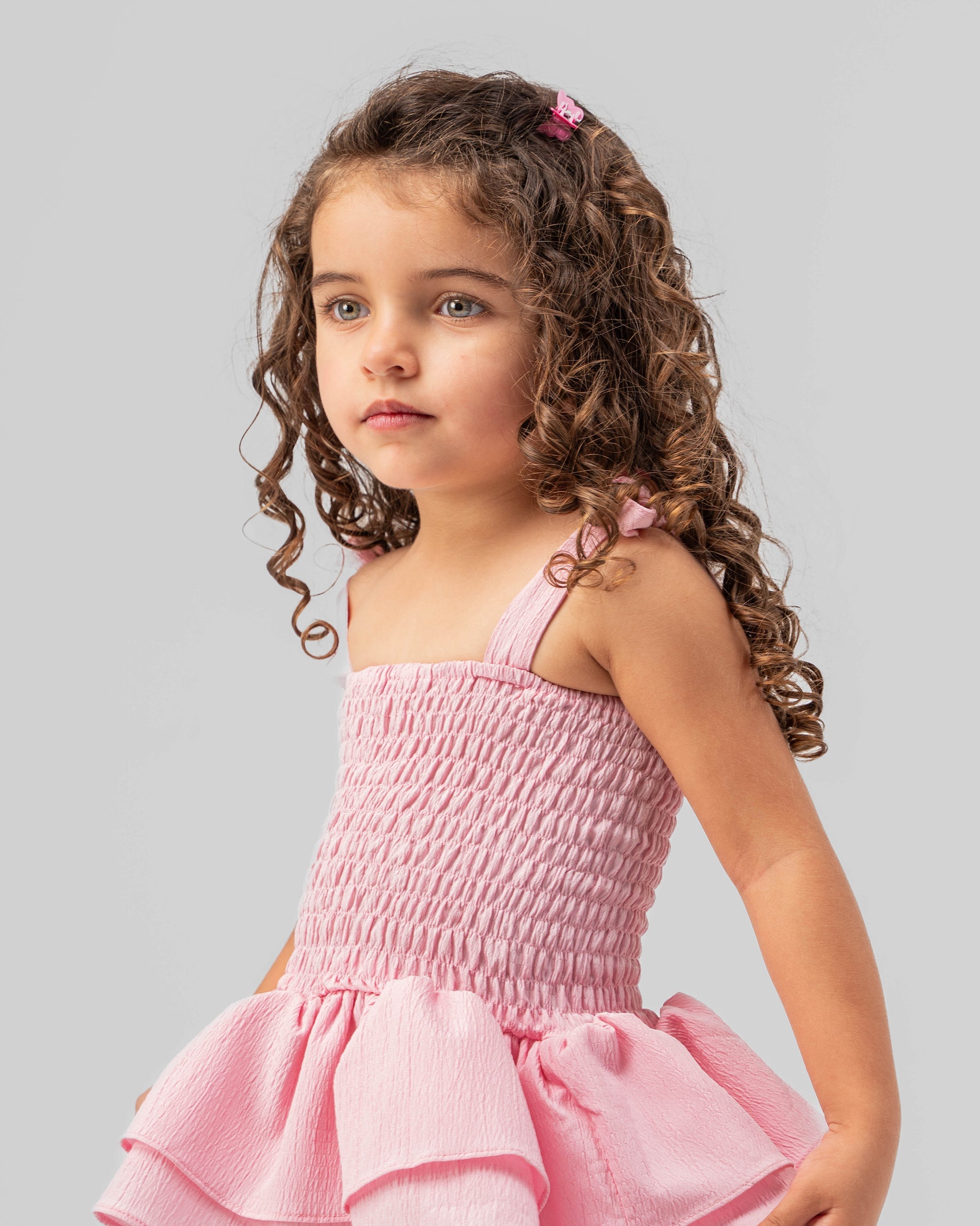 The best-selling smocked dress with ruffles for young girls. This dress comes in various vibrant colors and playful design, showcasing delightful ruffle details. These smocked bodices provide a comfortable fit and adds a charming touch to the dress. These dresses are designed for both style and functionality, making them perfect for casual outings, parties, or special occasions.
