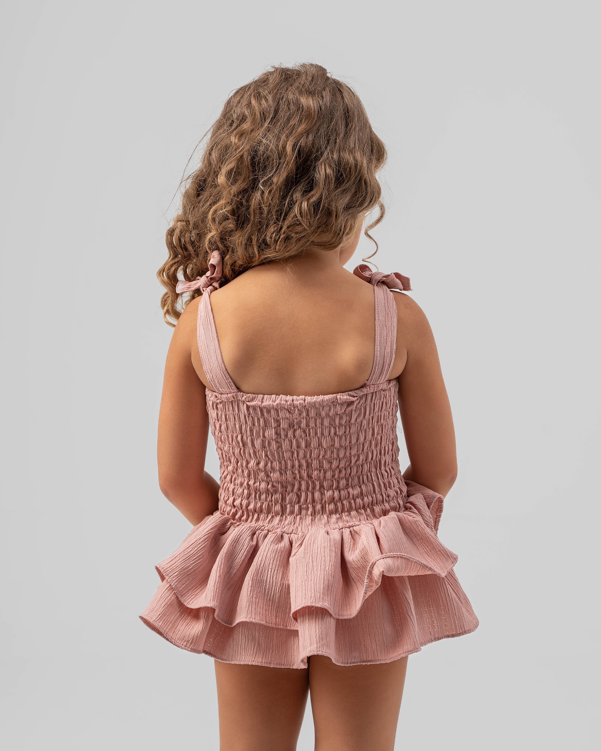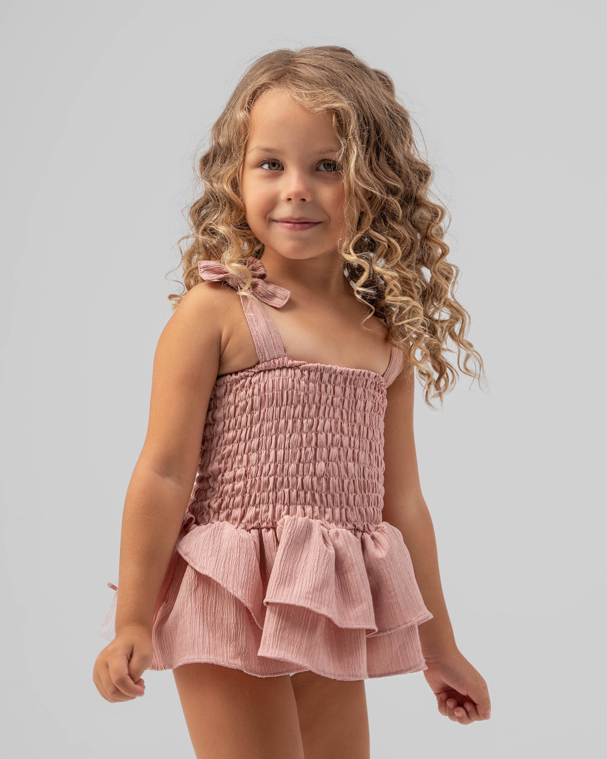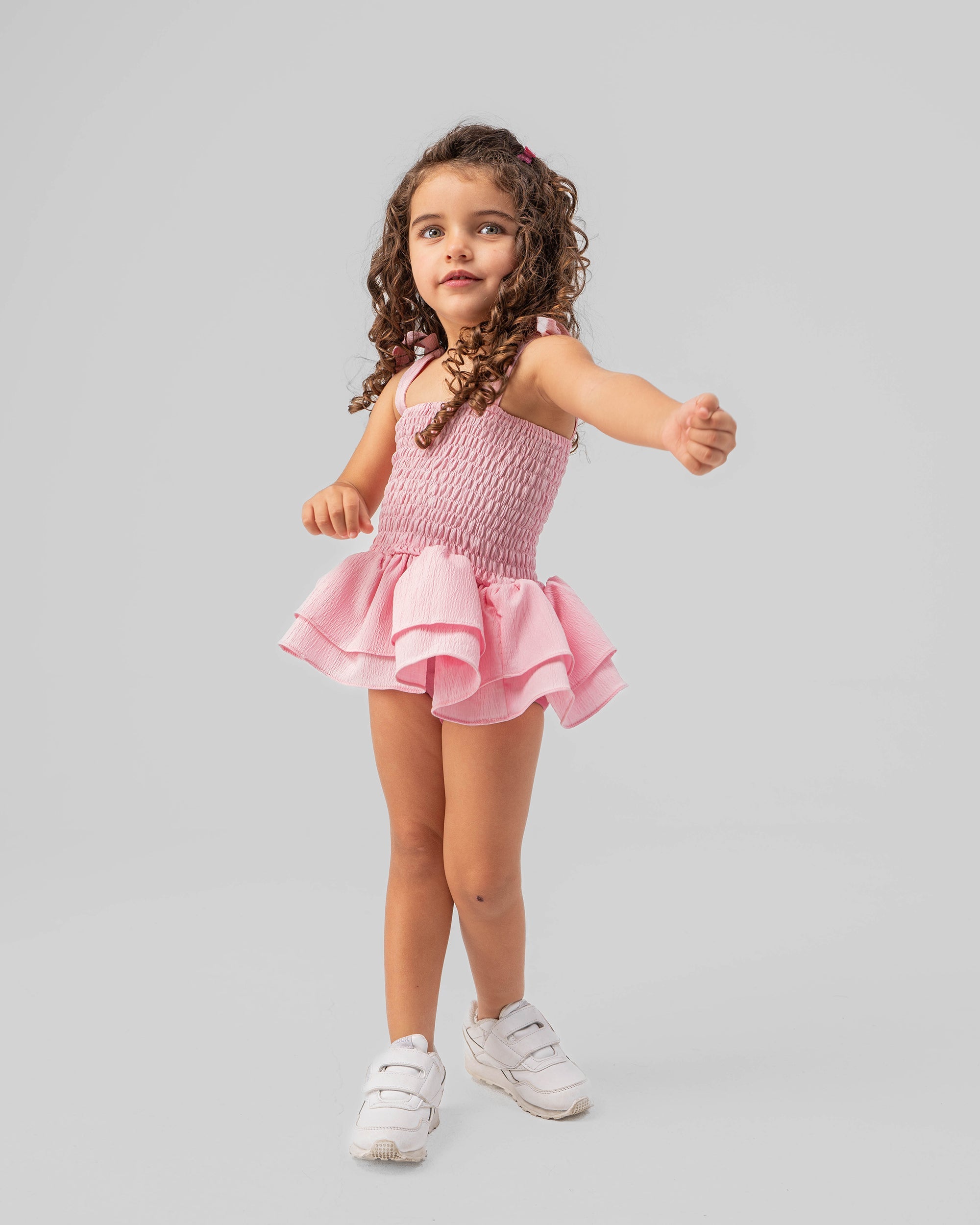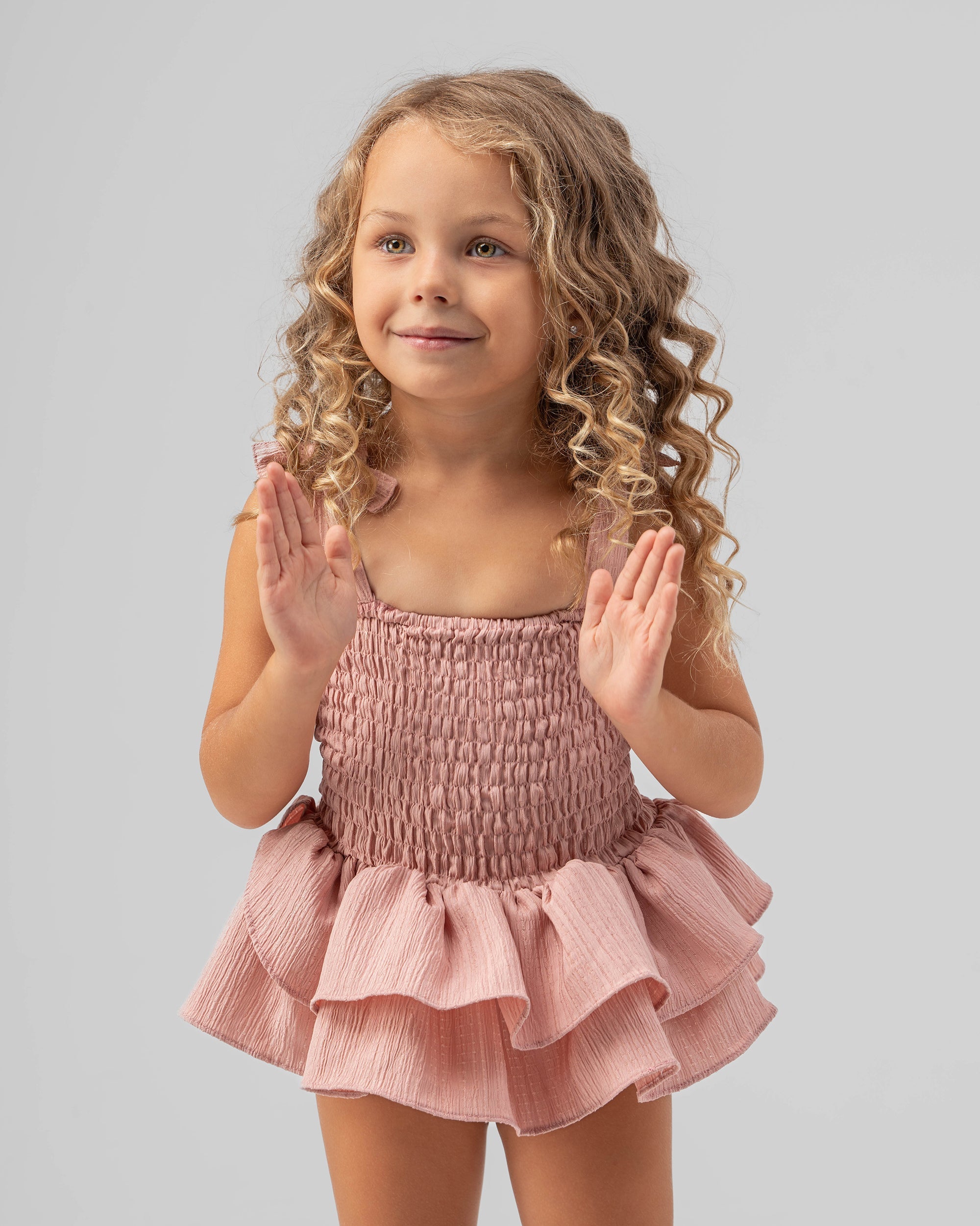 The best-selling smocked dress with ruffles for young girls. This dress comes in various vibrant colors and playful design, showcasing delightful ruffle details. These smocked bodices provide a comfortable fit and adds a charming touch to the dress. These dresses are designed for both style and functionality, making them perfect for casual outings, parties, or special occasions.