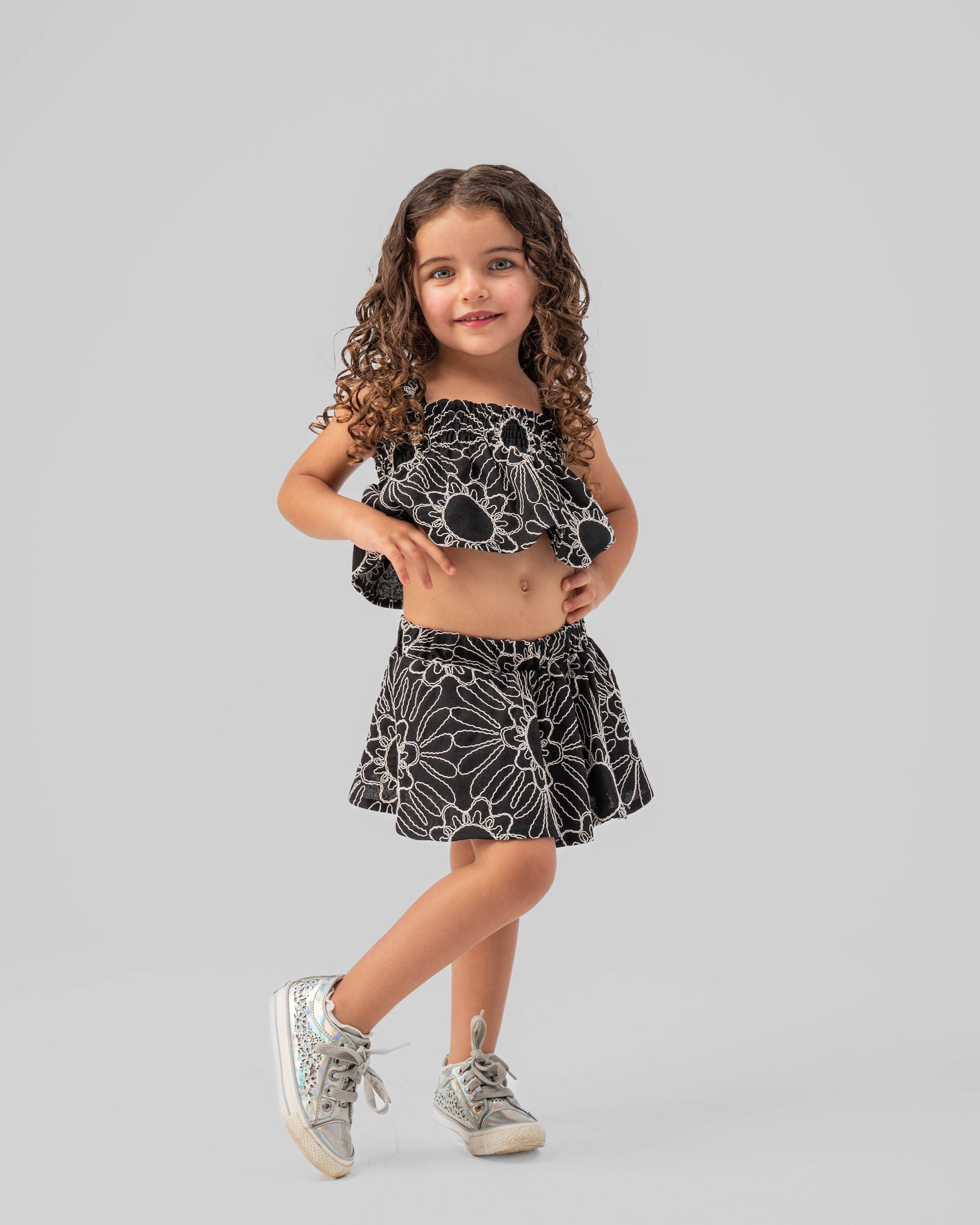 Dress her in a perfect blend of comfort and style with our embroidered floral top and skirt set, and watch her shine!