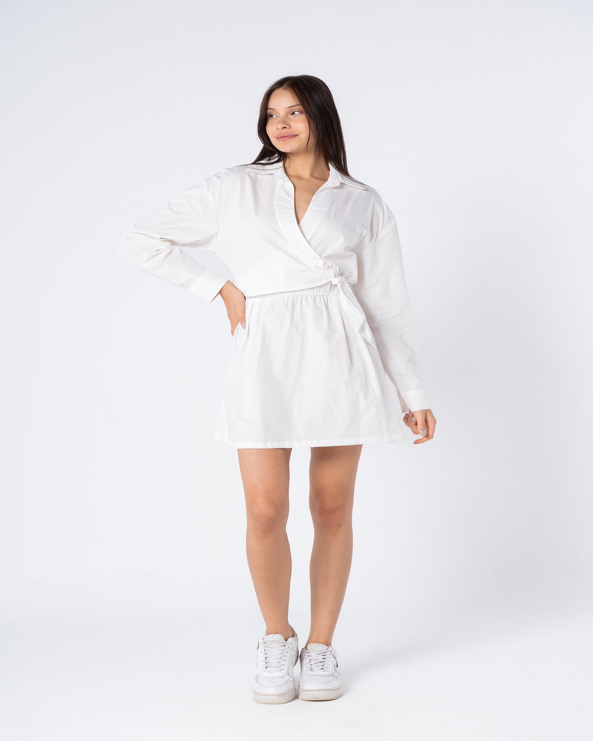 Wrap It Up in Style: The White Cross-Wrap Dress, The perfect blend of chic and comfort, this white cross-wrap dress flatters any figure. The wrap style creates a cinched waist and elongates your silhouette, while the short length keeps things cool and breezy.