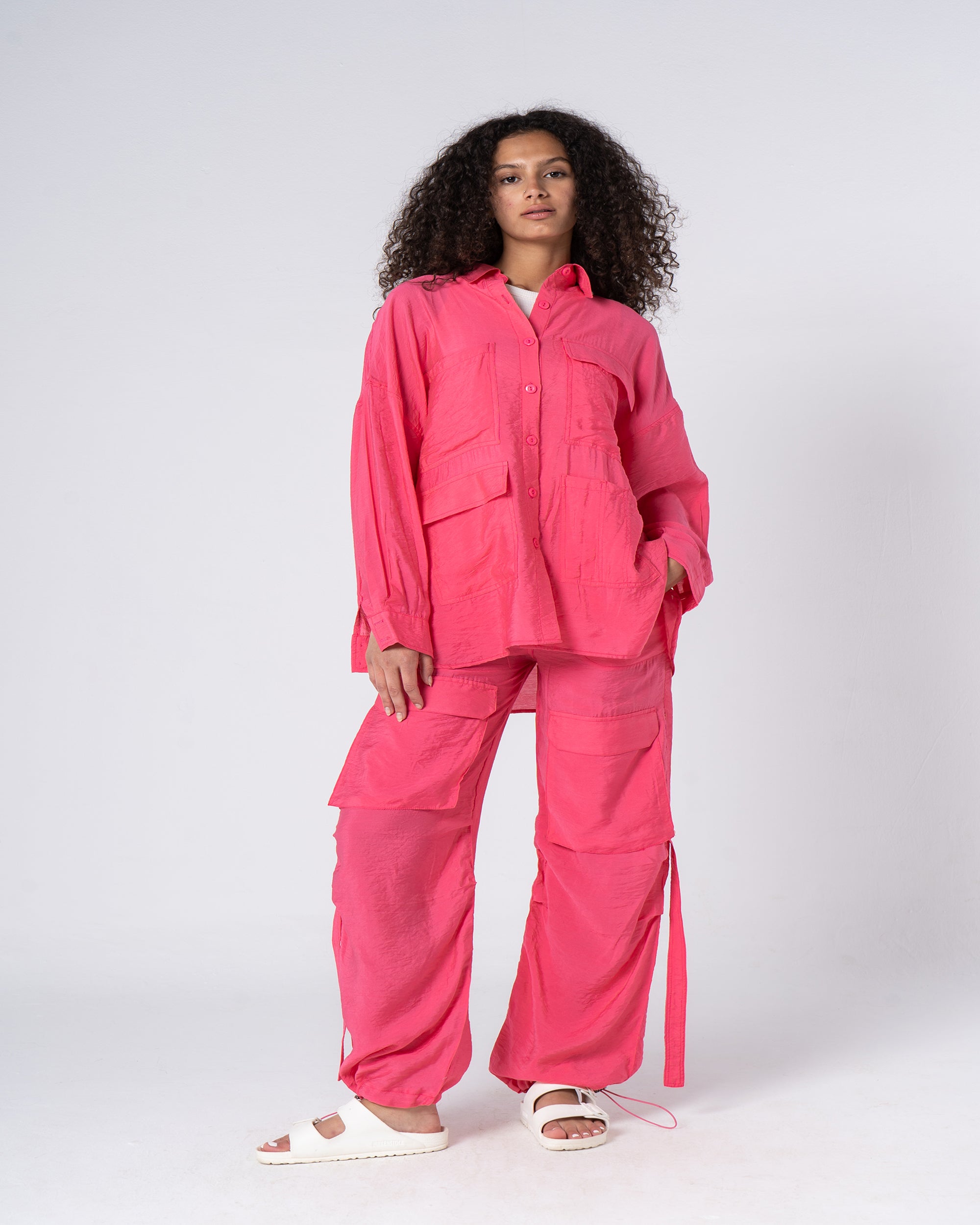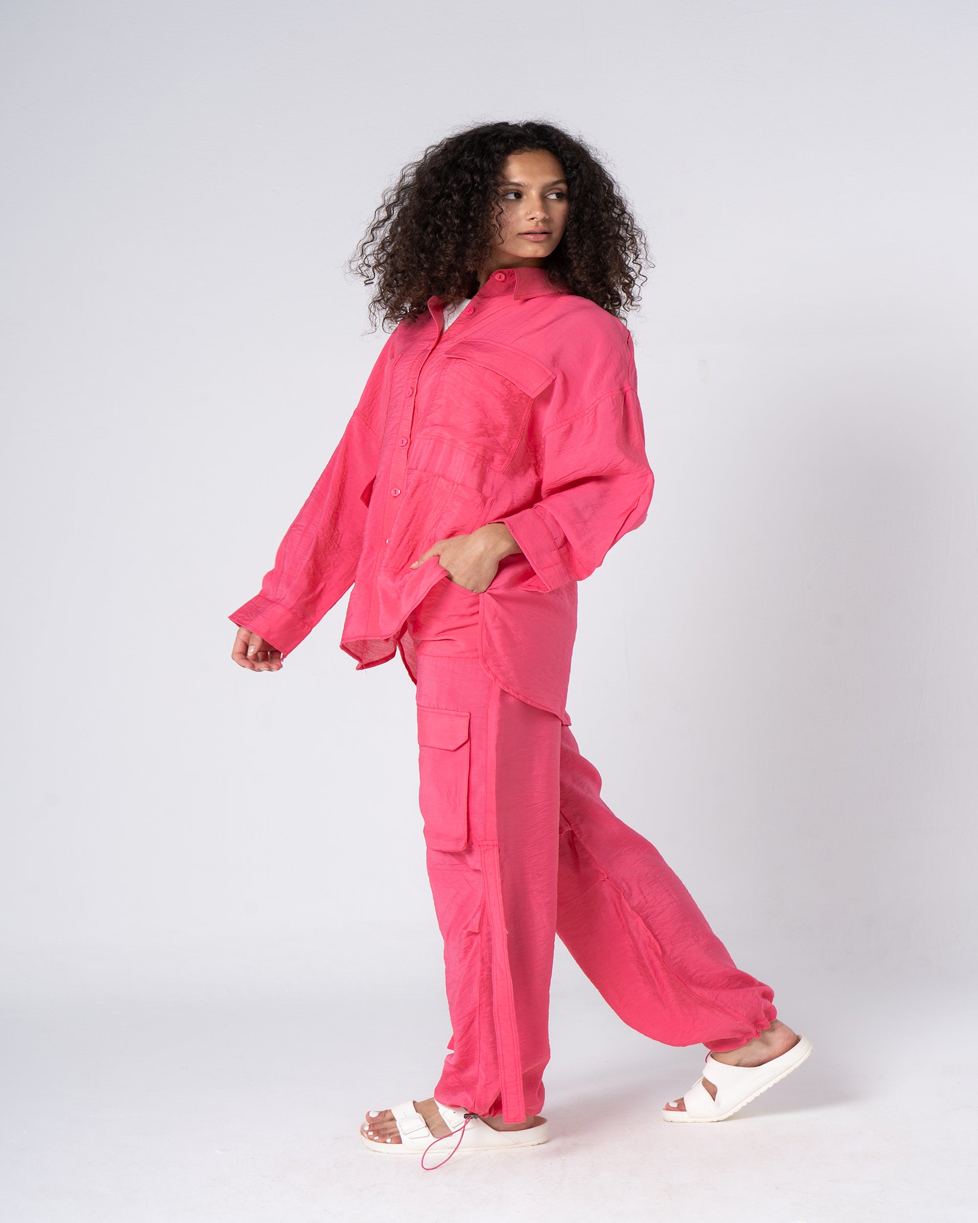 This rich brown cargo set offers a touch of utility chic. Functional pockets add a practical edge, while the relaxed silhouette drapes beautifully. Soft, breathable fabric keeps you cool on-the-go, making it perfect for conquering errands or dressing up with a statement necklace for an evening adventure.