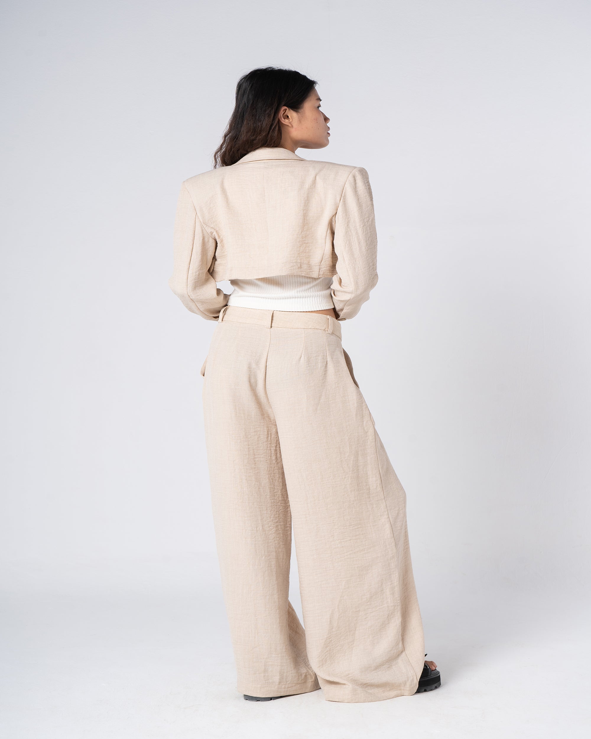Effortlessly channel downtown chic with our Women Cropped Blazer Set, also in Beige. This coordinated duo features a slim-fit, cropped blazer and complementary high-waisted shorts, creating a polished, put-together look with minimal effort. The structured, menswear-inspired blazer and streamlined shorts work seamlessly together or can be mixed and matched with your existing wardrobe essentials.