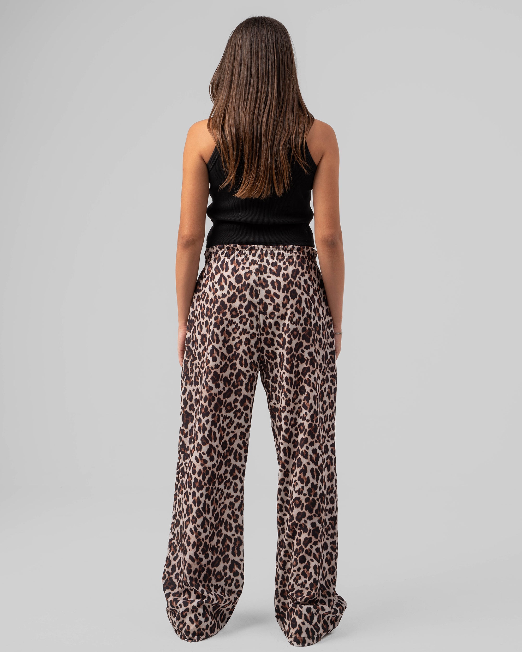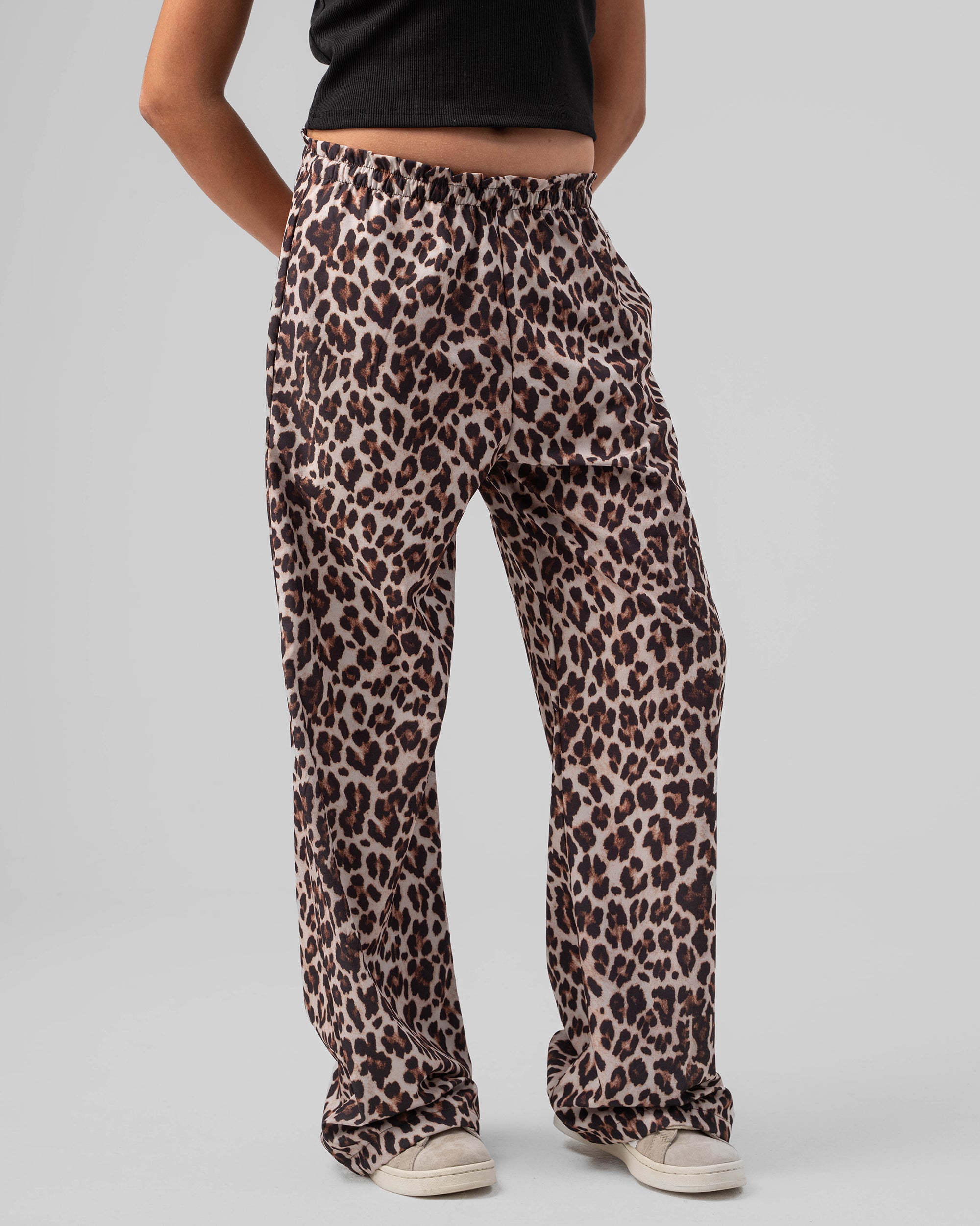 These statement-making wide-leg pants showcase an allover leopard print for a bold, trendy look. The relaxed, flowing silhouette creates a chic, elongating effect. Crafted from a soft, stretchy material, these pants offer all-day comfort and ease of movement. Pair them with a solid top and heels for a stylish, night-out ensemble.