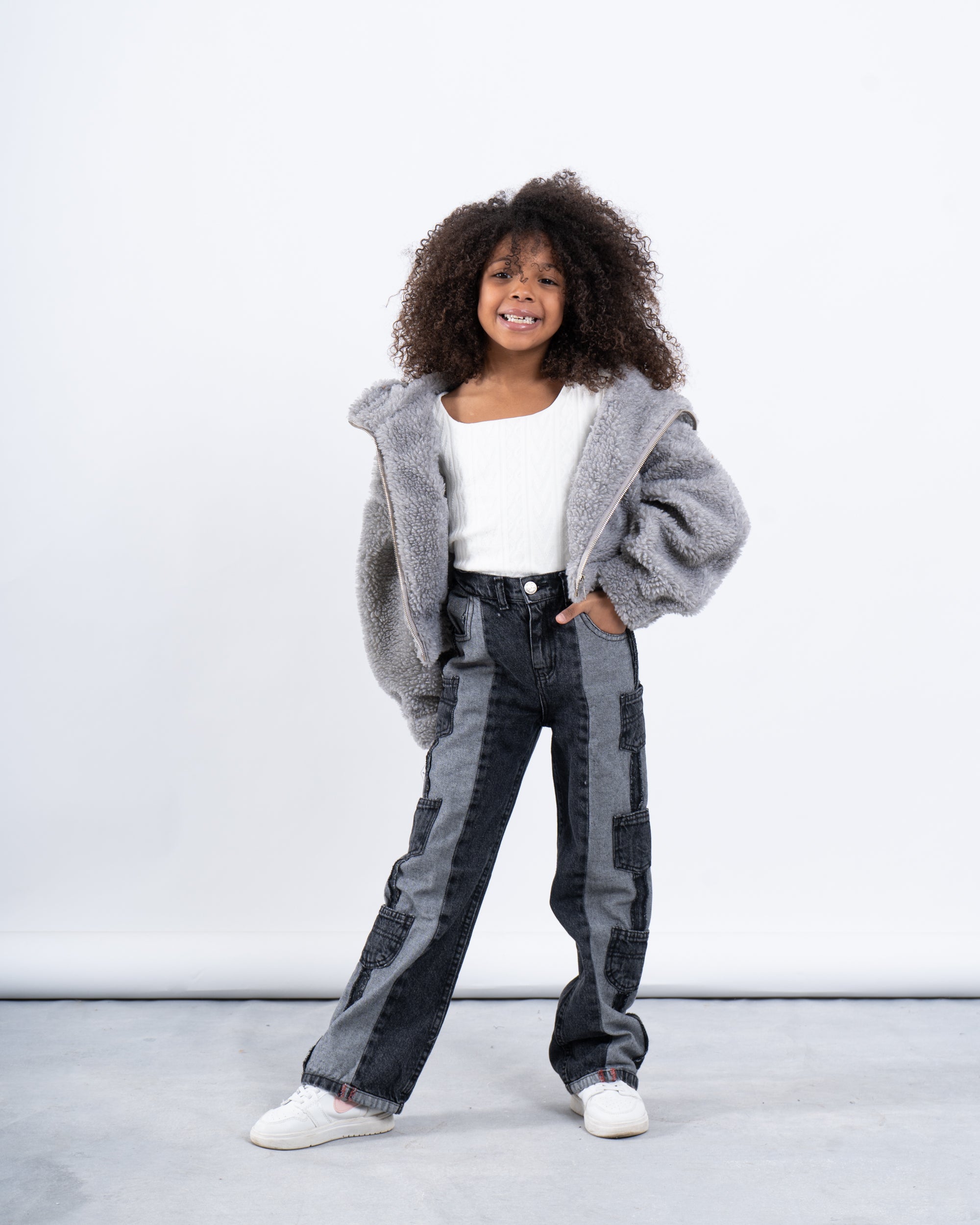 A cozy and stylish teddy cropped jacket for kids, available in vibrant colors to brighten up any outfit. Featuring a soft, plush texture and a zip-up front, this jacket is perfect for keeping warm while looking effortlessly cool. Designed with an elasticated hem and cuffs for a snug fit, it’s a must-have for chilly days.