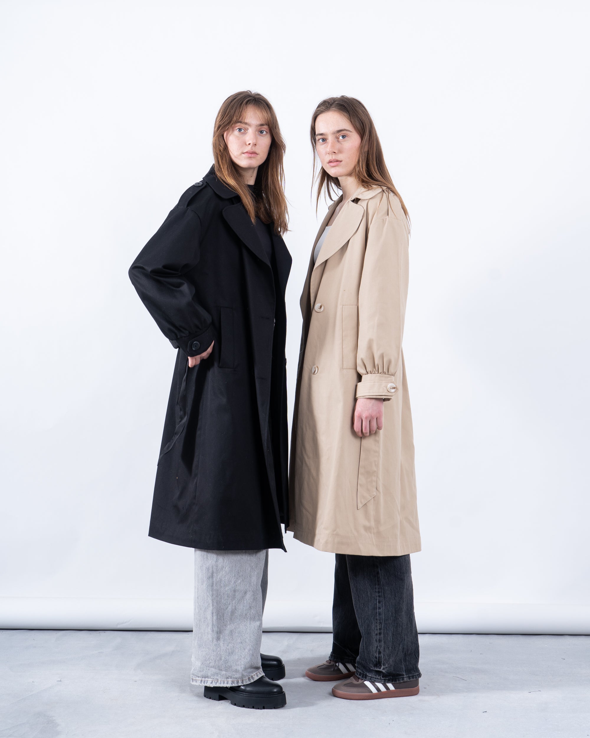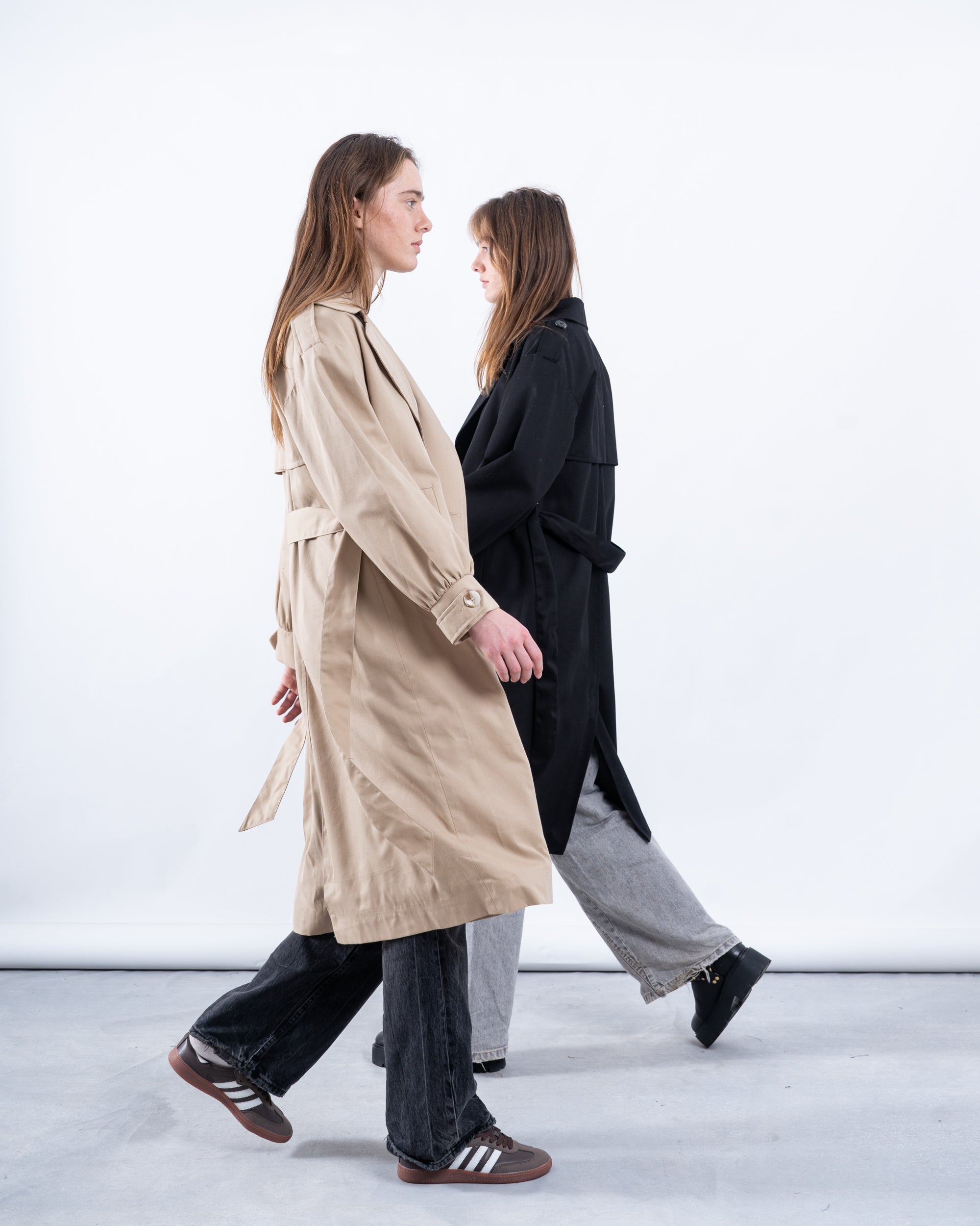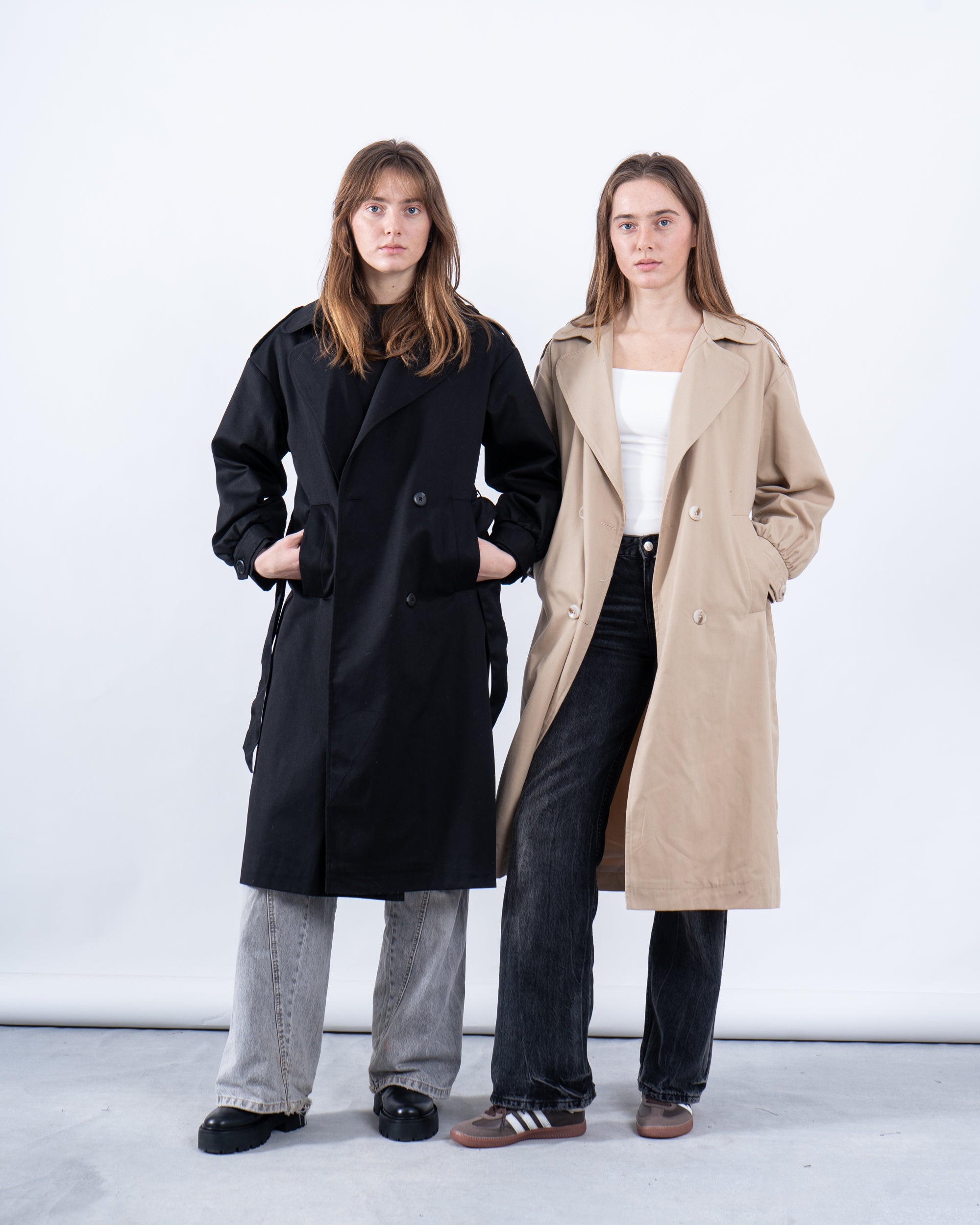 Classic and versatile, this double-breasted trench coat is a wardrobe essential for transitional weather. Whether you’re dressing up or down, it adds a sophisticated touch to any outfit.