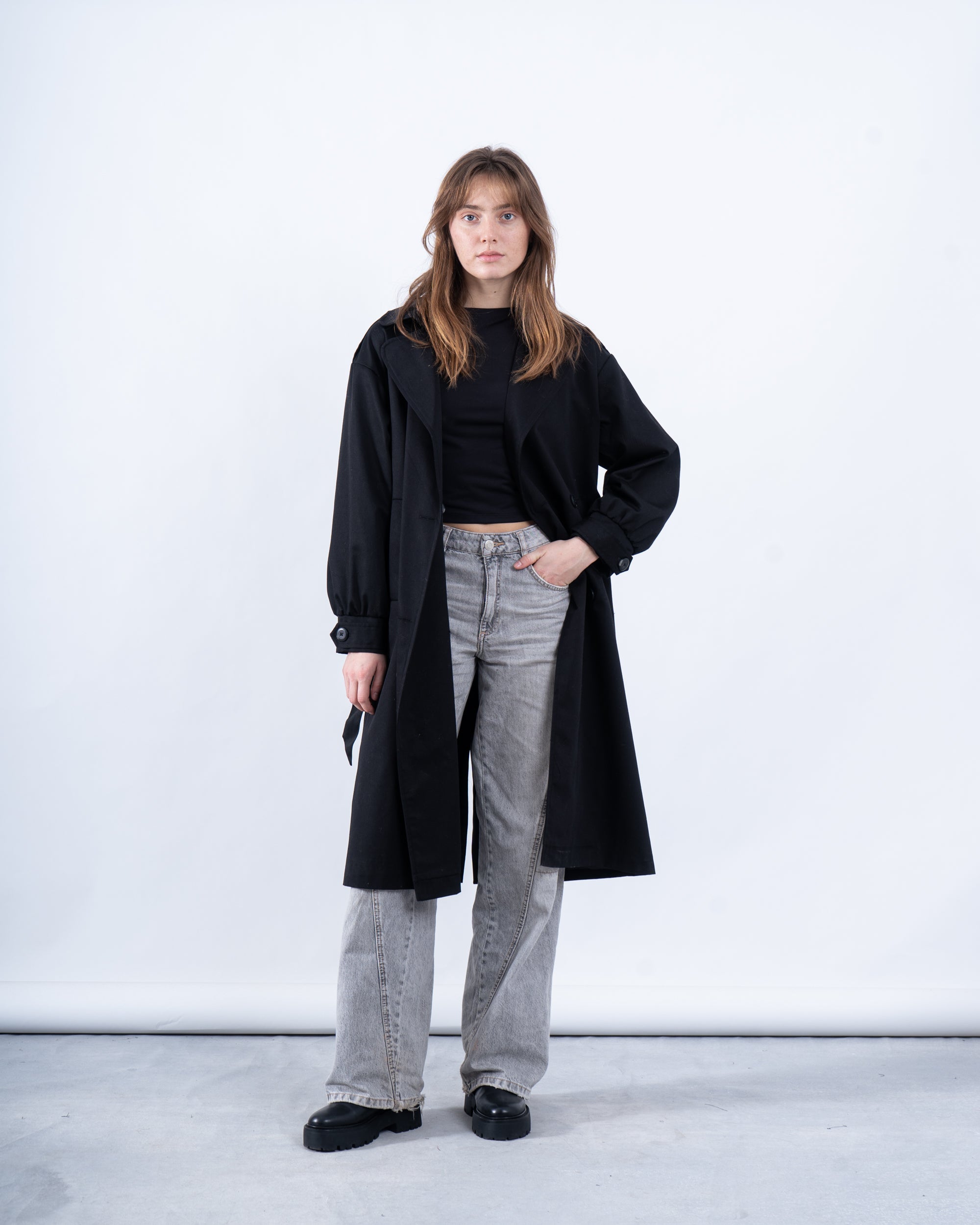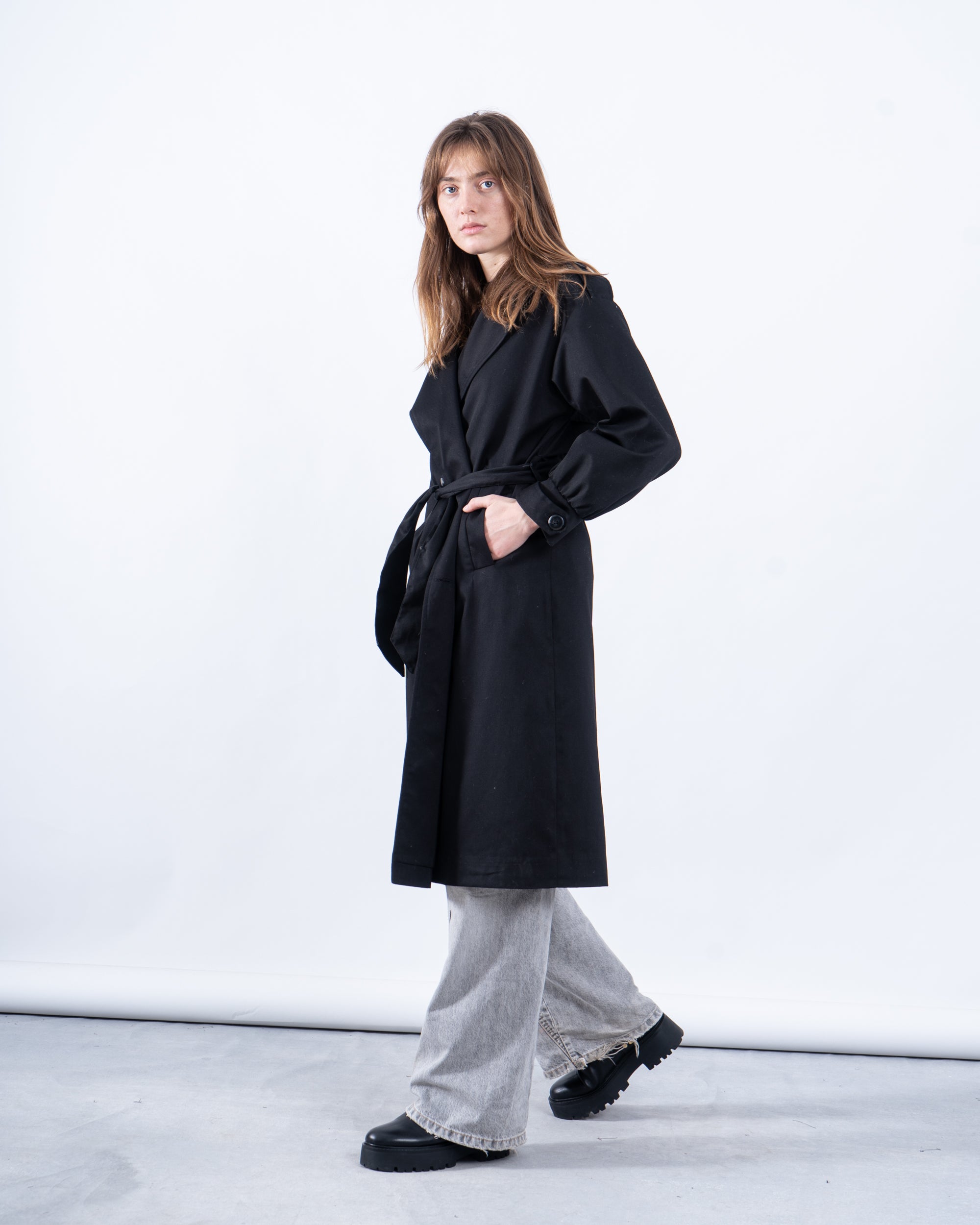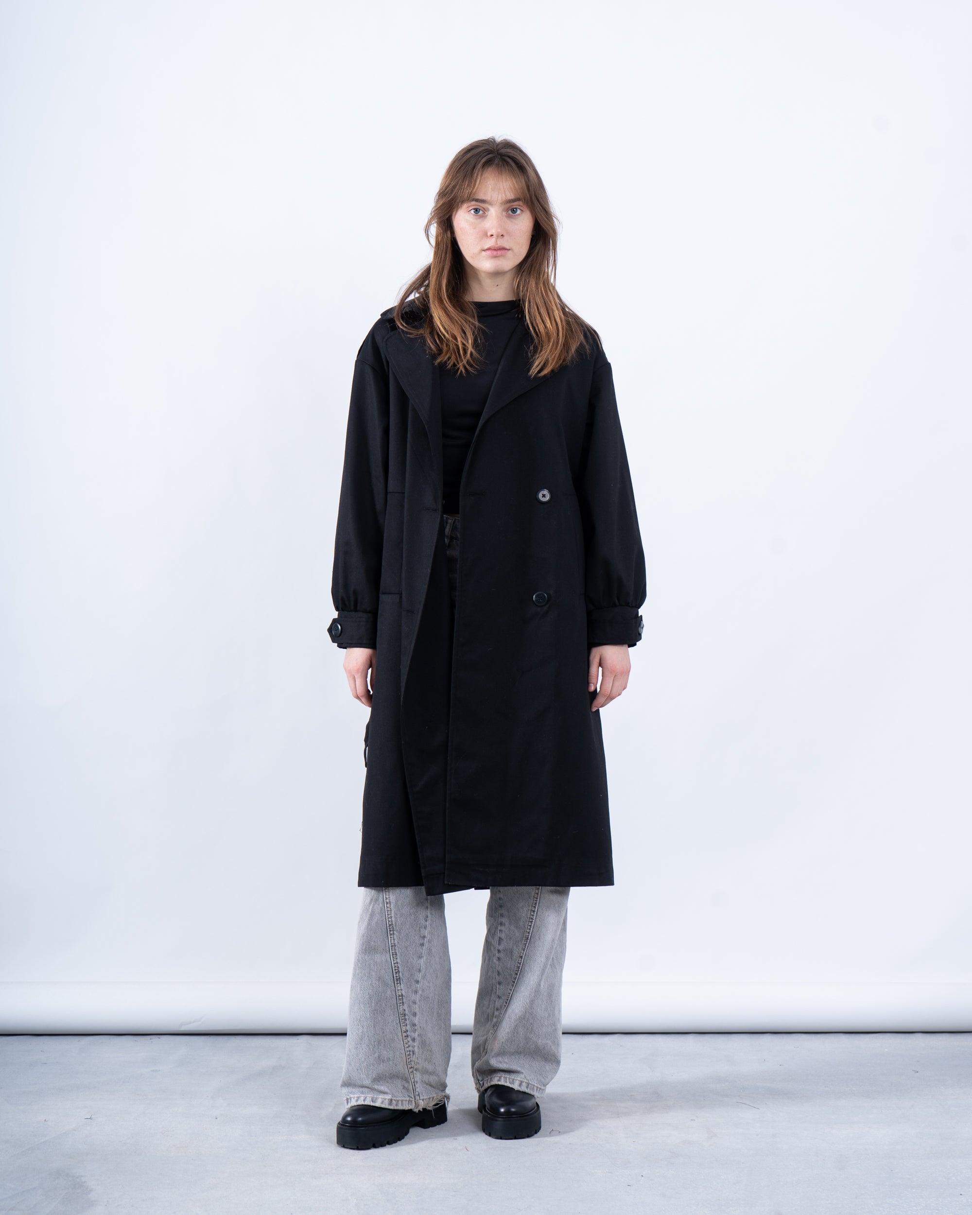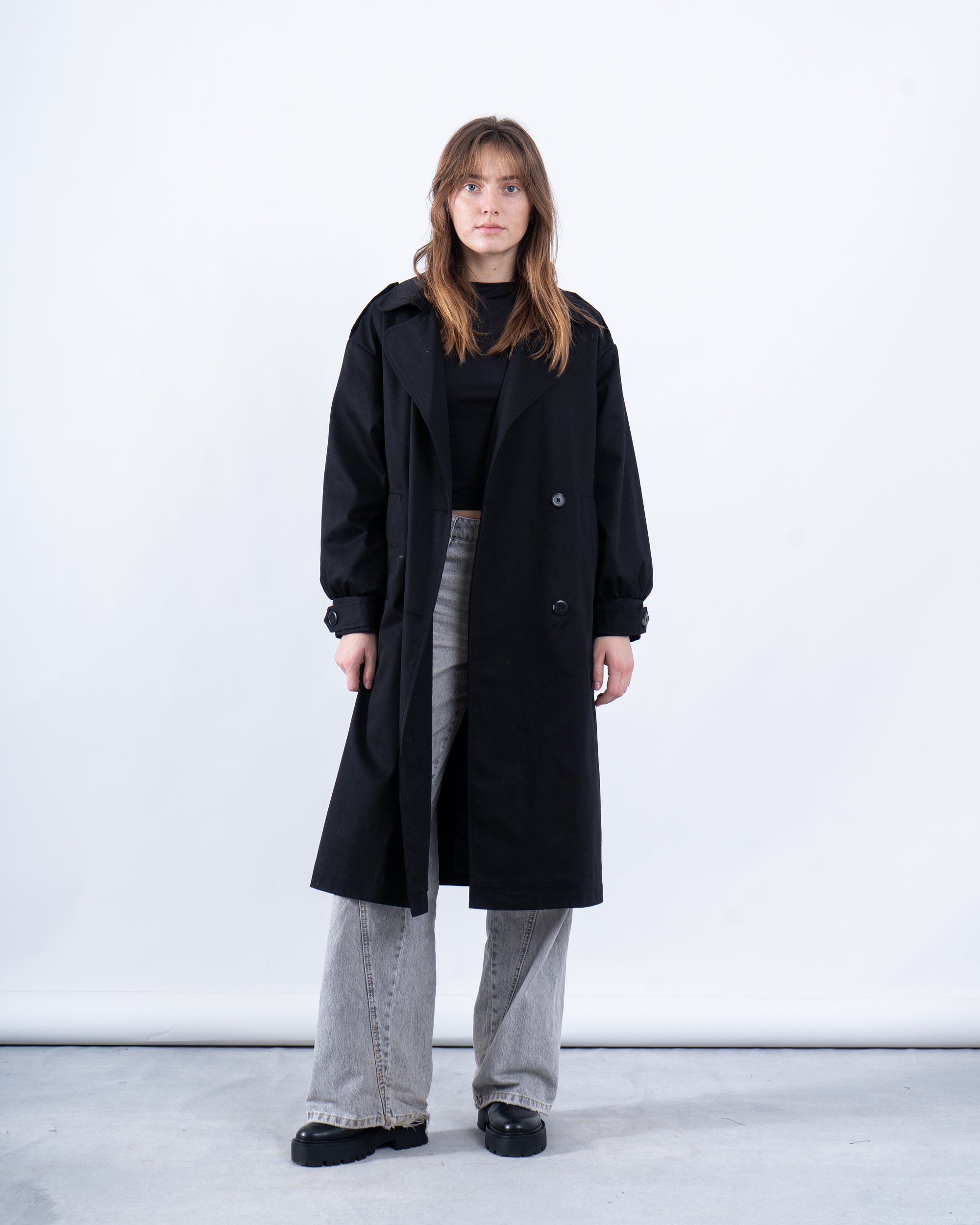 Classic and versatile, this double-breasted trench coat is a wardrobe essential for transitional weather. Whether you’re dressing up or down, it adds a sophisticated touch to any outfit.