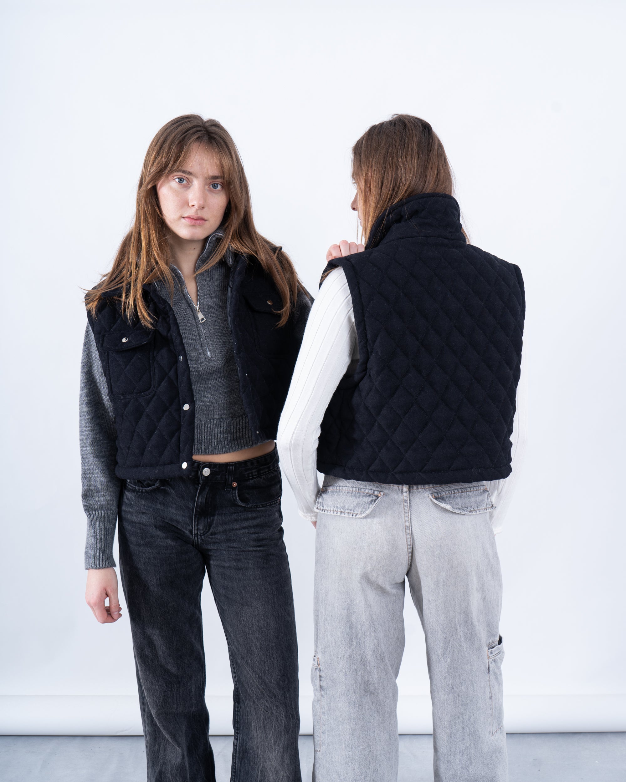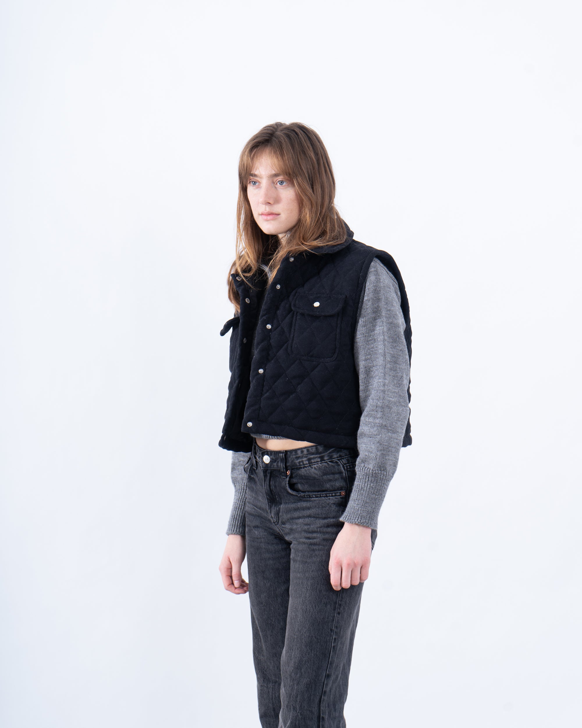 Stay warm and chic with this quilted button-up vest, perfect for layering during cooler seasons. Its lightweight design and versatile look make it a must-have for your wardrobe.