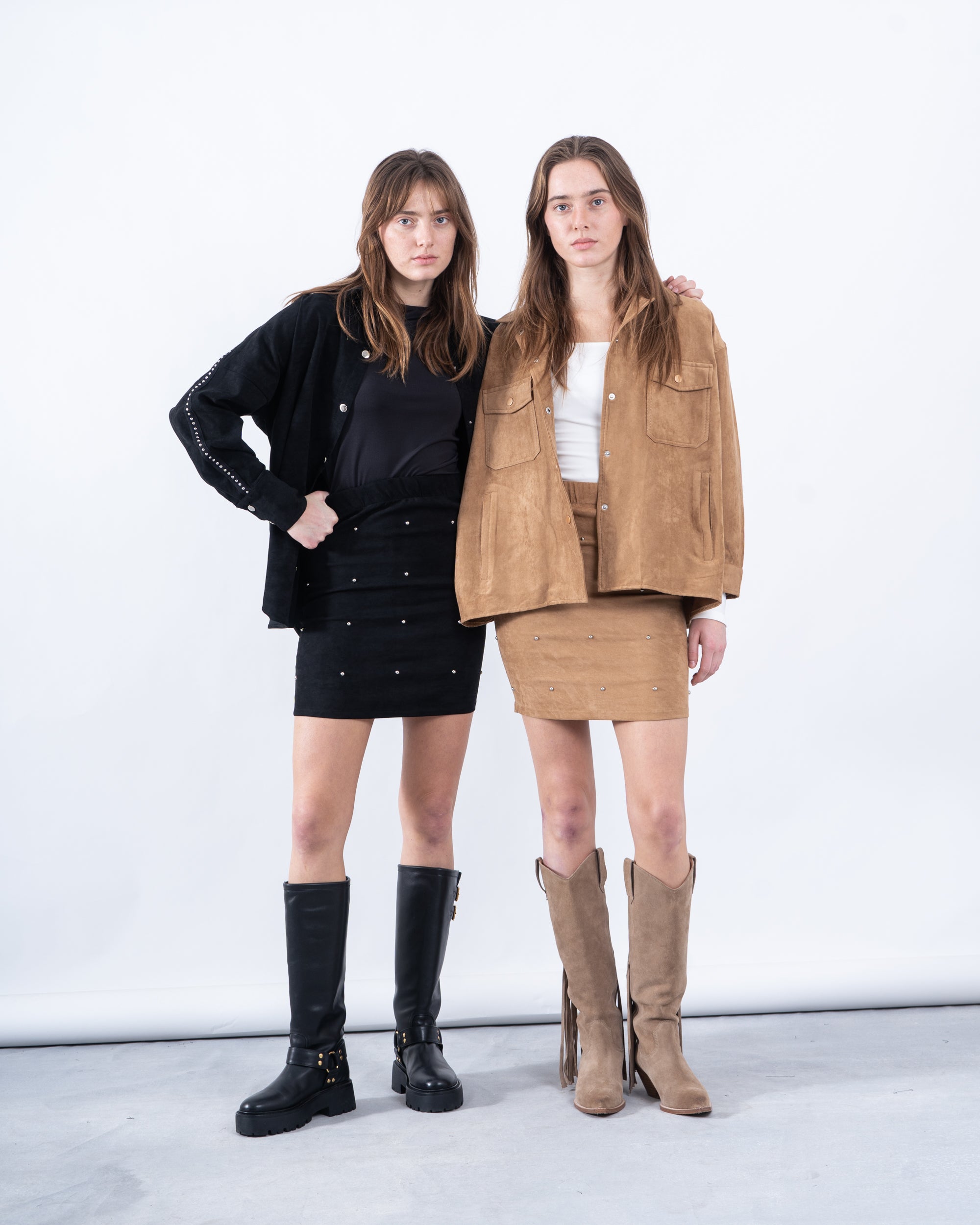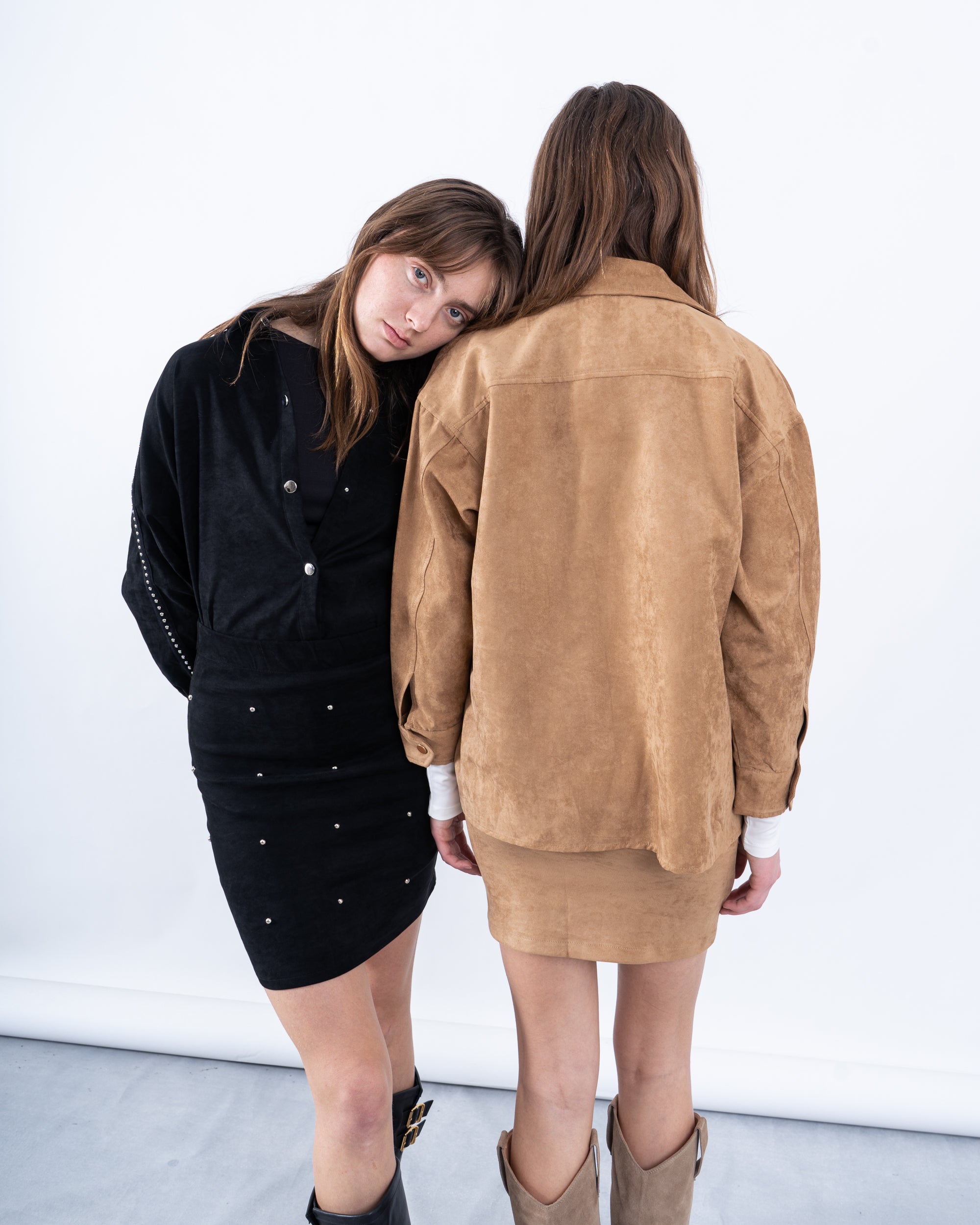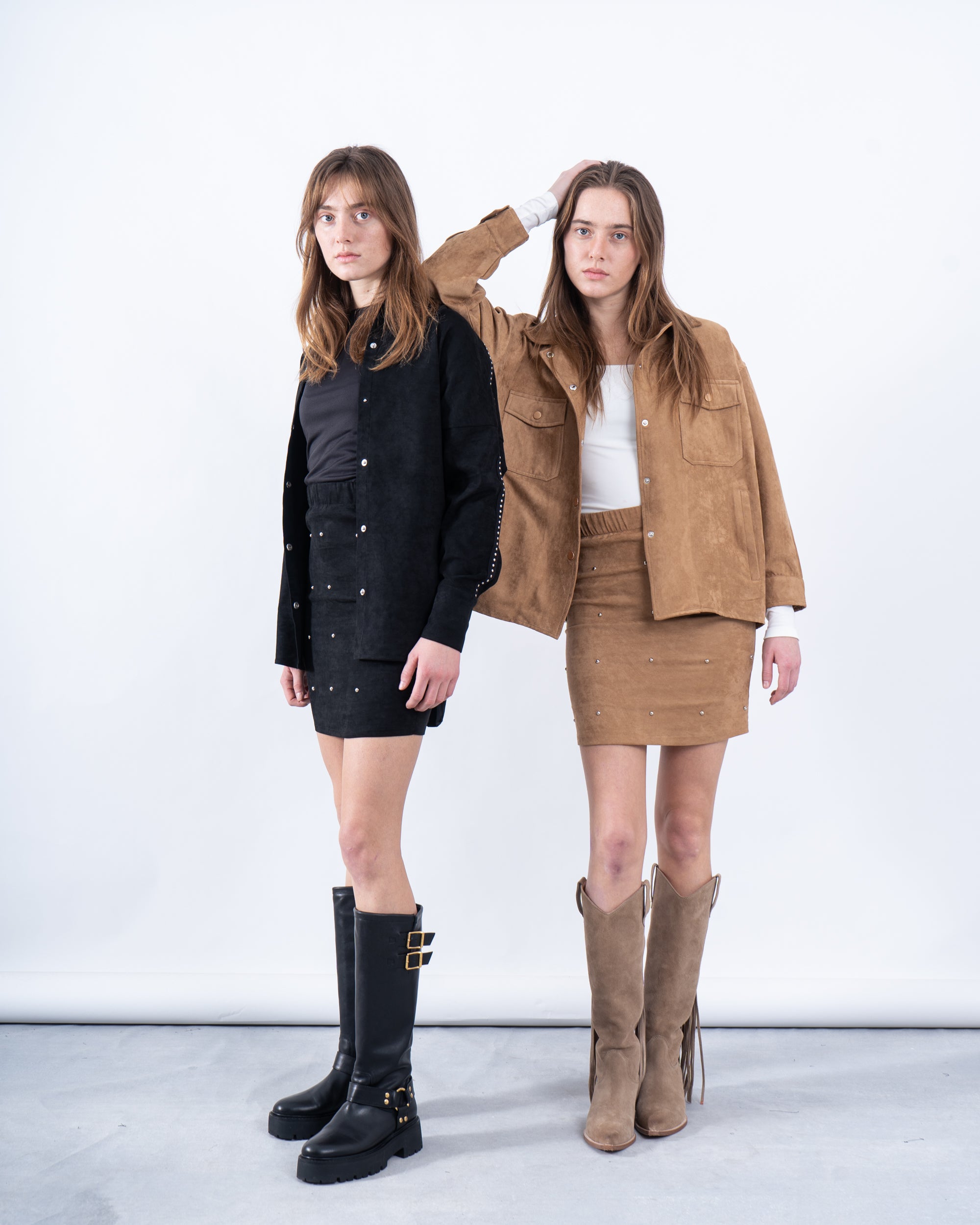 Elevate your layering game with this chic suede button-up shirt, perfect for transitional seasons. Its lightweight construction and stylish striped detailing make it a versatile wardrobe staple.