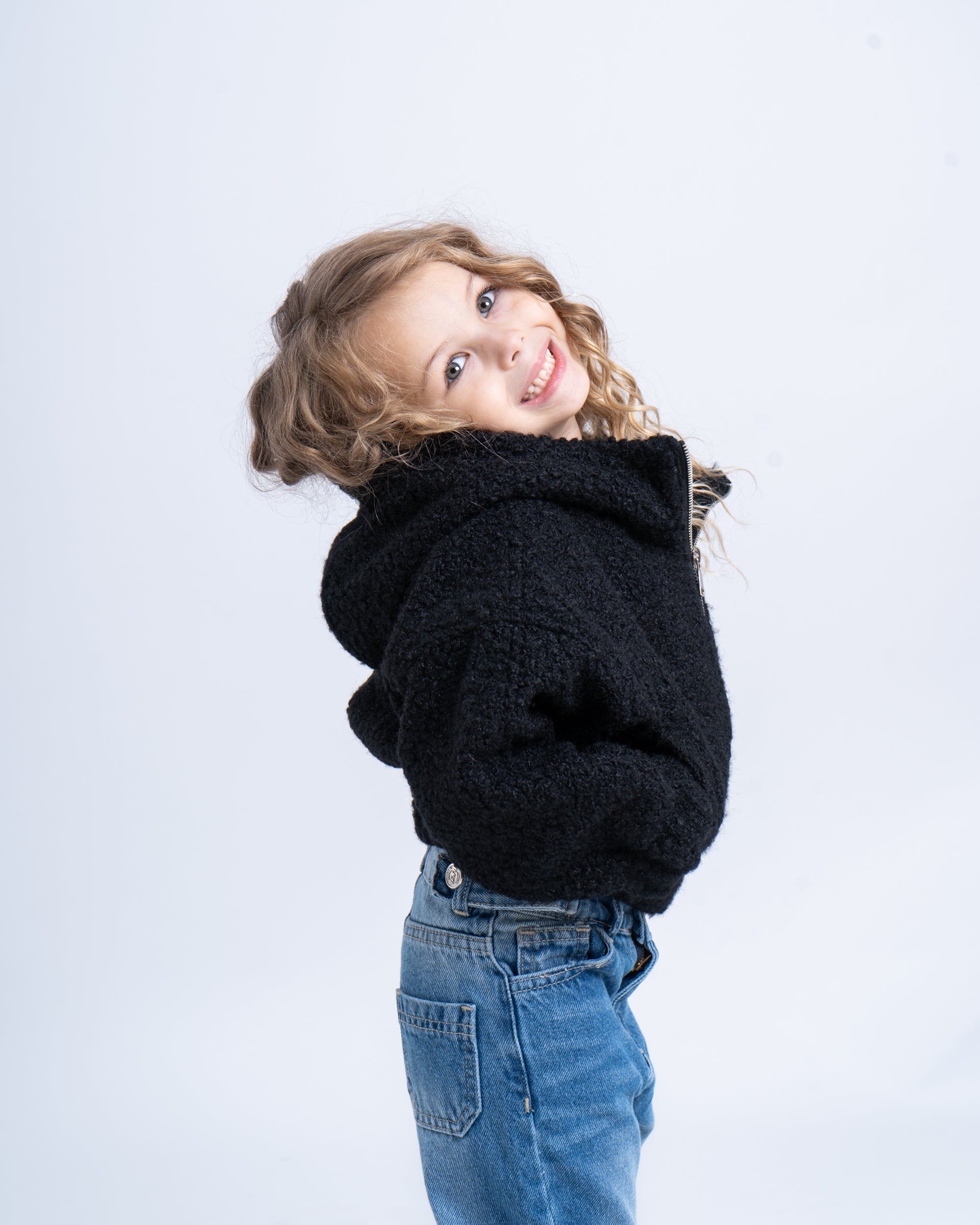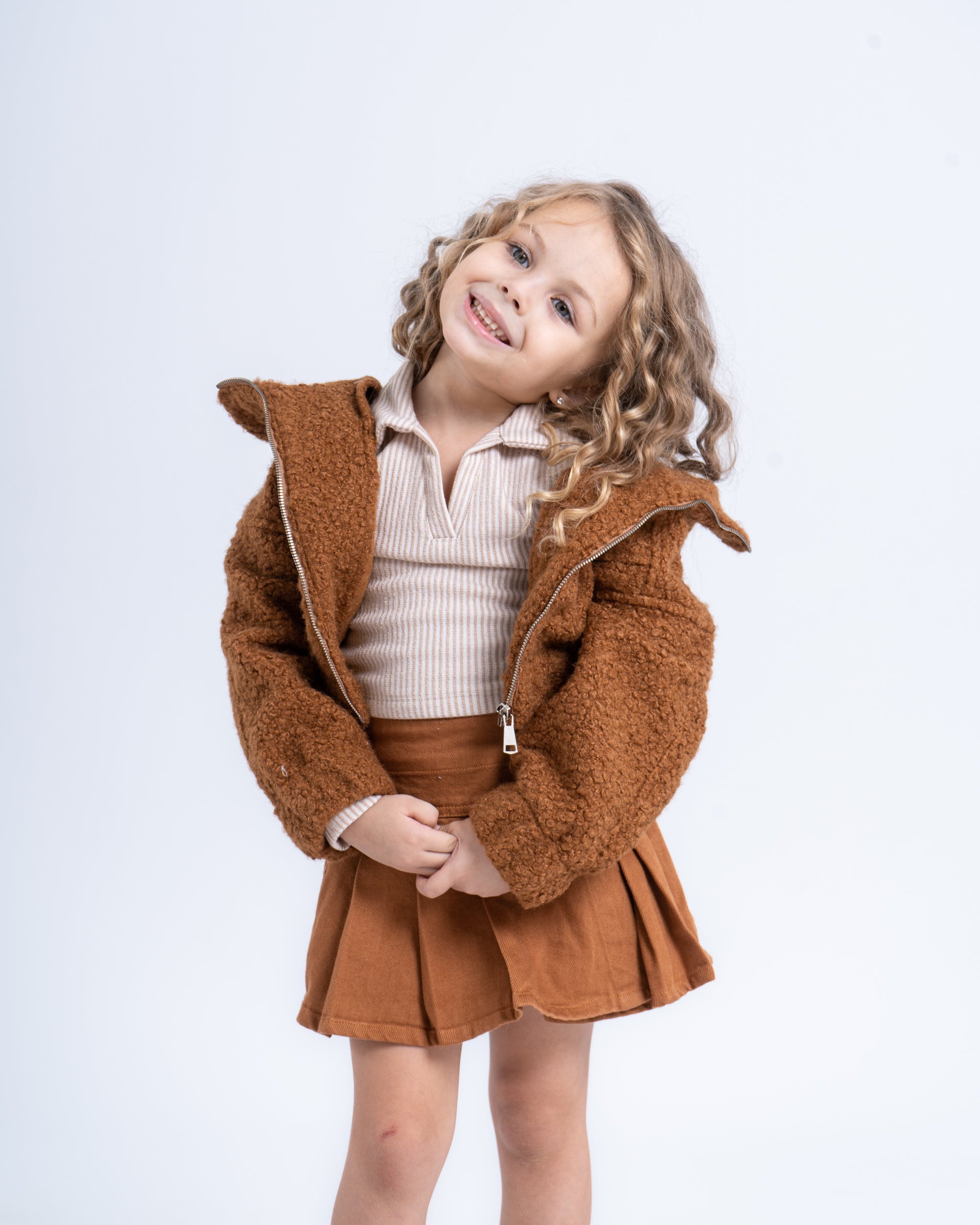 Keep your little one cozy and stylish with this teddy oversized zip-up jacket. Crafted from a soft and fluffy fabric, this jacket is perfect for adding warmth without compromising on style. The relaxed fit makes it ideal for layering over different outfits, while the warm  color adds a trendy and versatile touch.