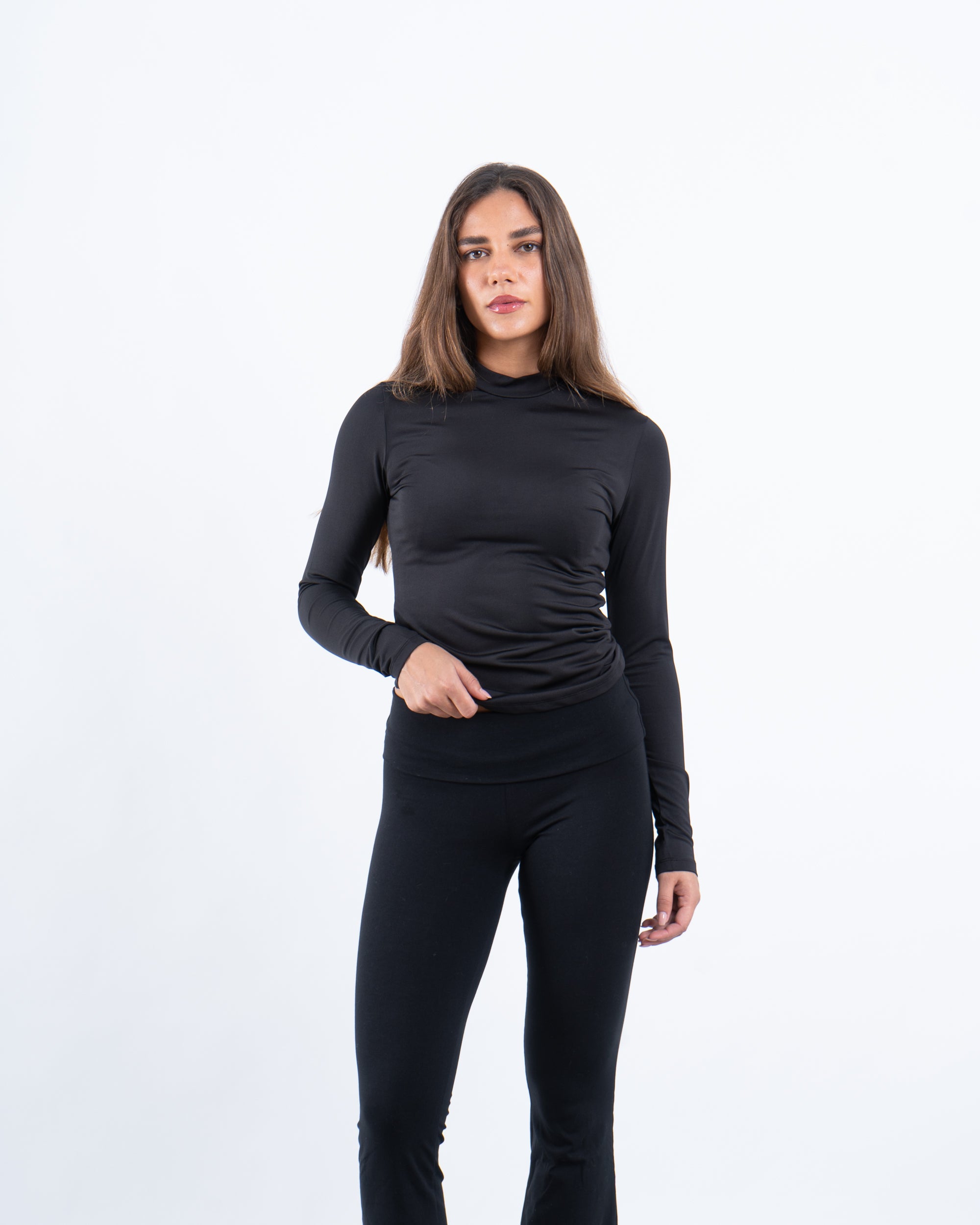 This high neck top combines sleek style with a comfortable fit, perfect for any occasion.