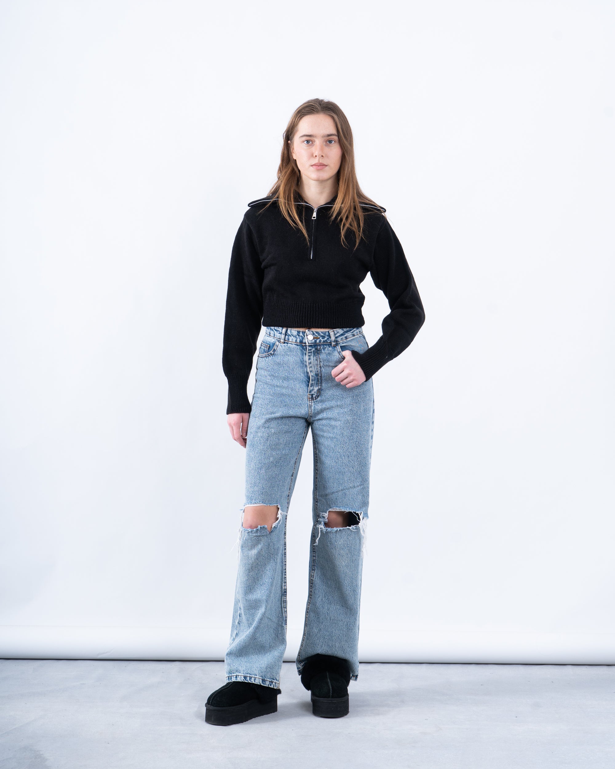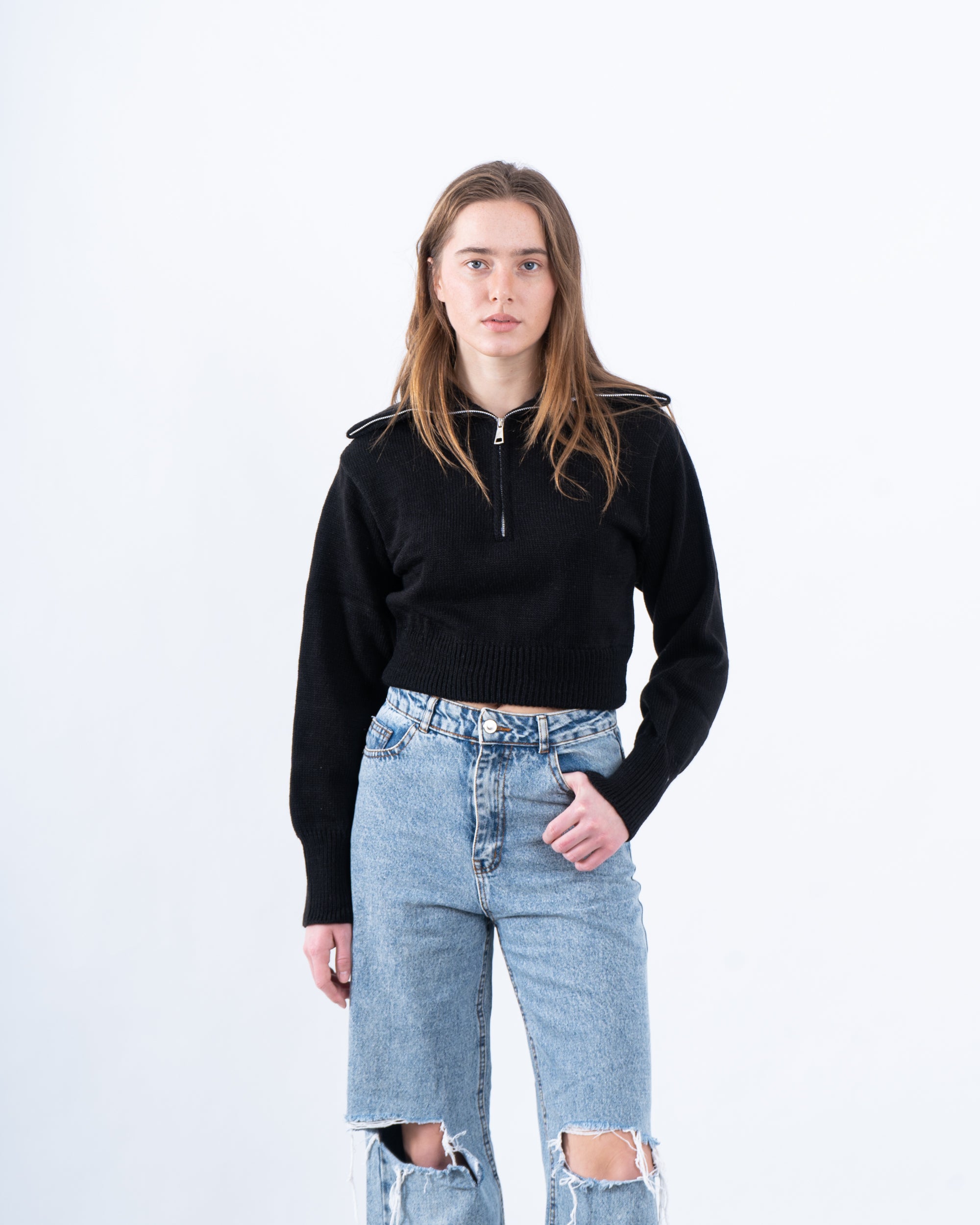 A versatile and stylish half-zip ribbed pullover that strikes the perfect balance between comfort and edge. Ideal for casual layering or making a statement on its own, this piece will be a staple in your everyday wardrobe.