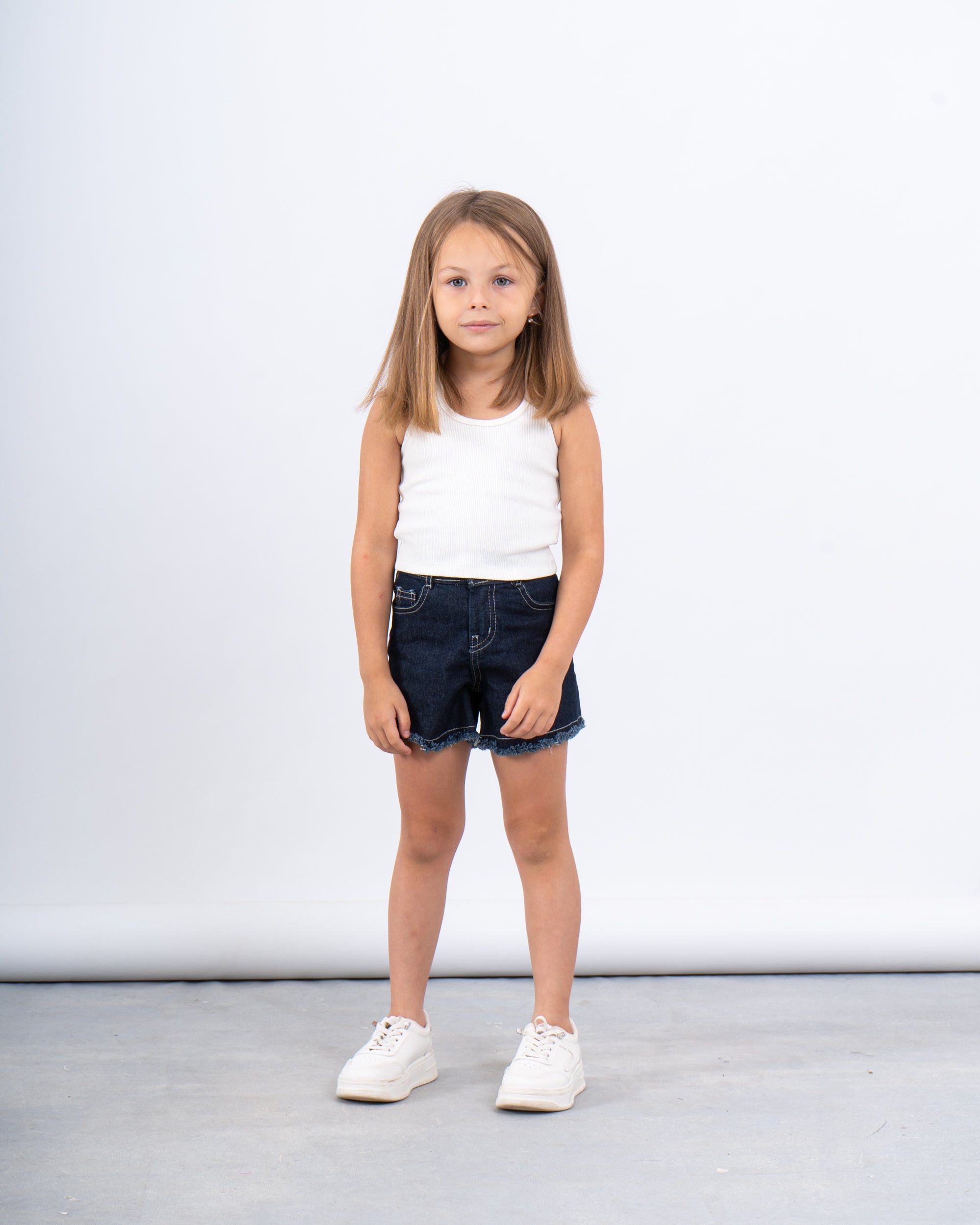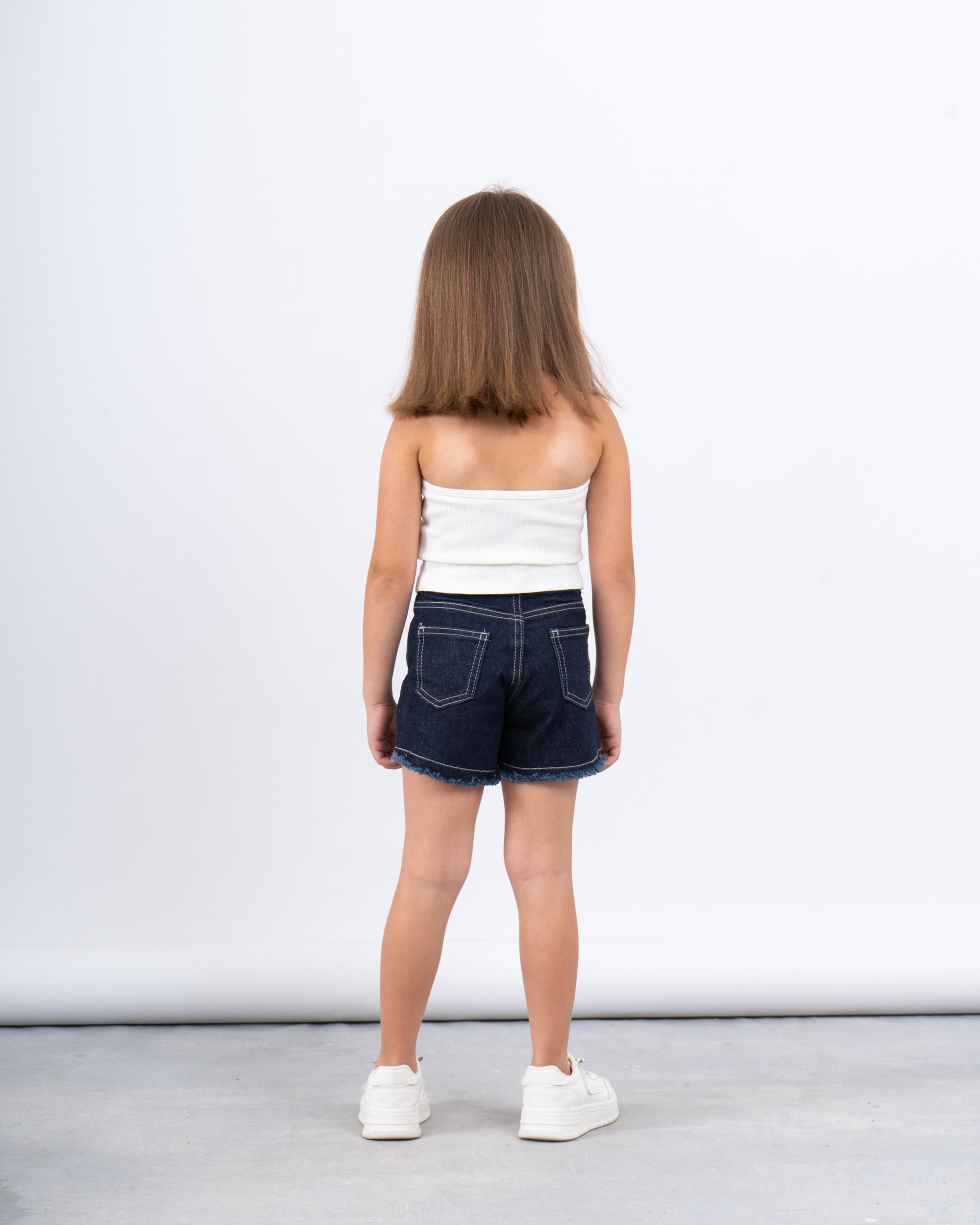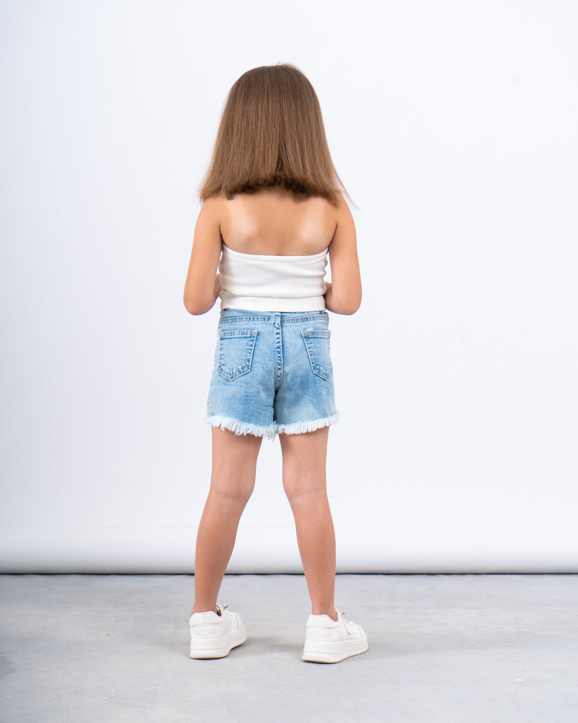 Cool and versatile, these denim shorts are designed for all their summer adventures. Featuring a comfortable high-rise fit and playful frayed hems, they pair effortlessly with any top for an easy, laid-back look.