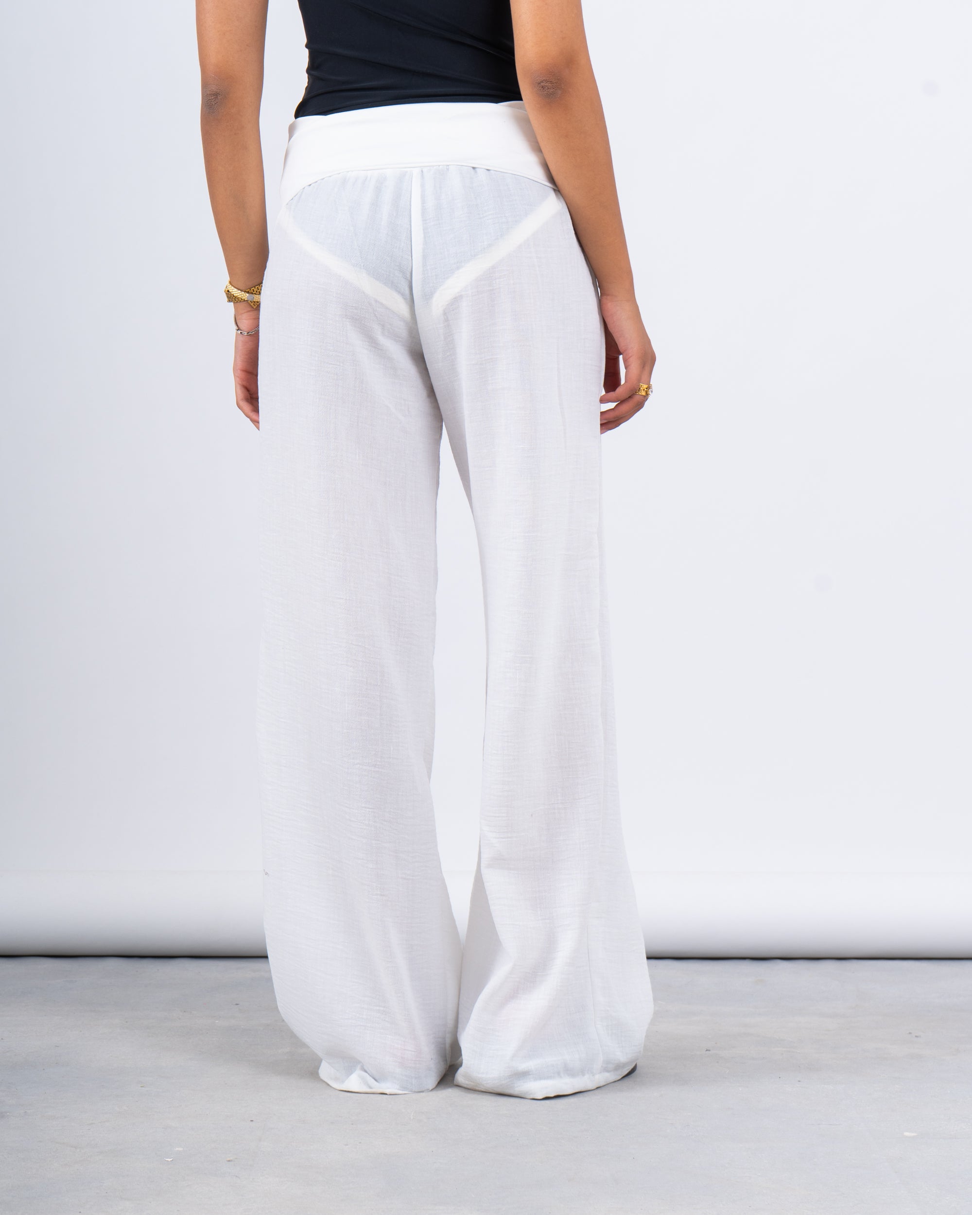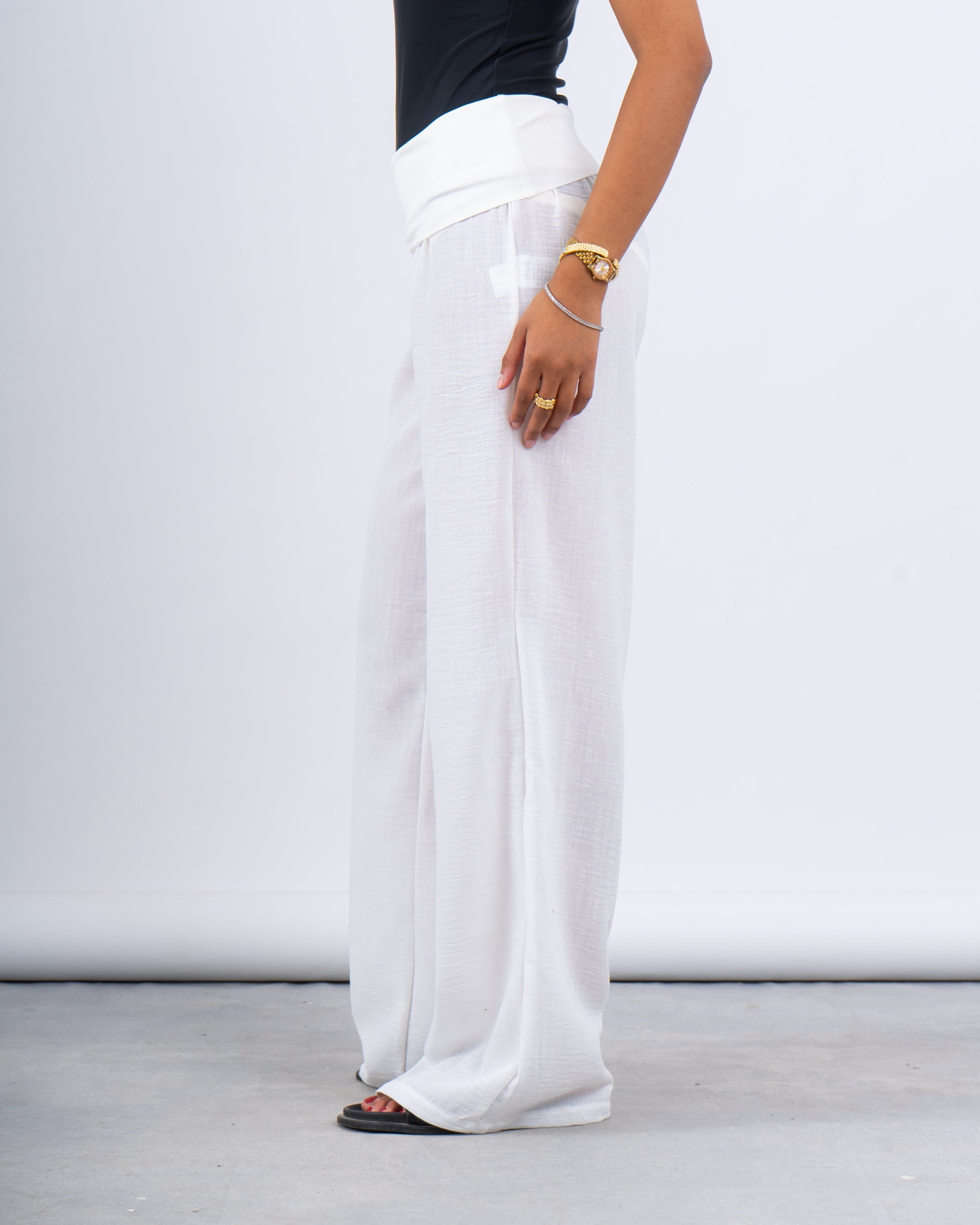 Light, breezy, and effortlessly chic — these linen wide-leg pants are your go-to summer essential. Designed with a flattering high waist and relaxed folded detail, they pair perfectly over swimsuits or with linen shirts for an easy vacation look.
