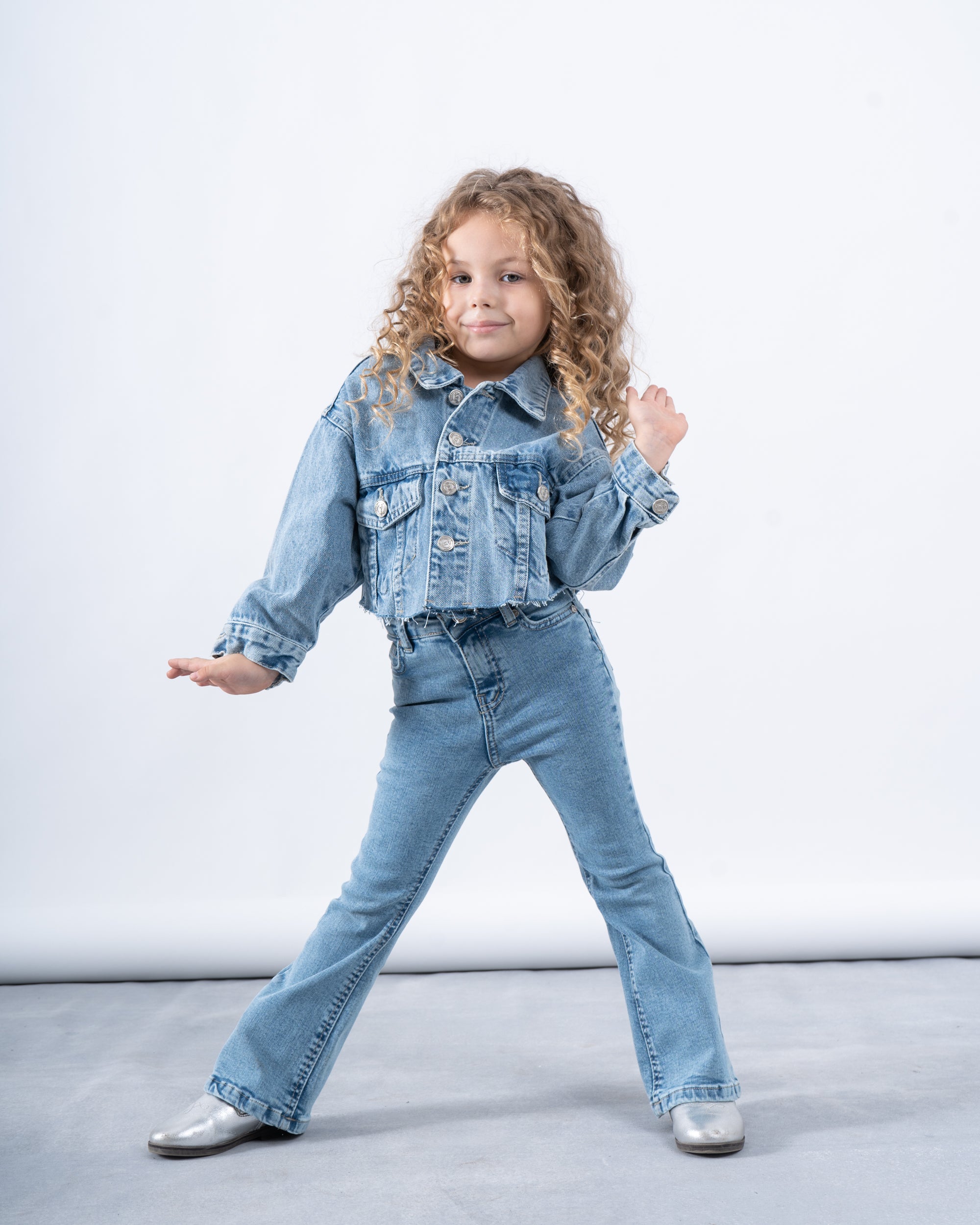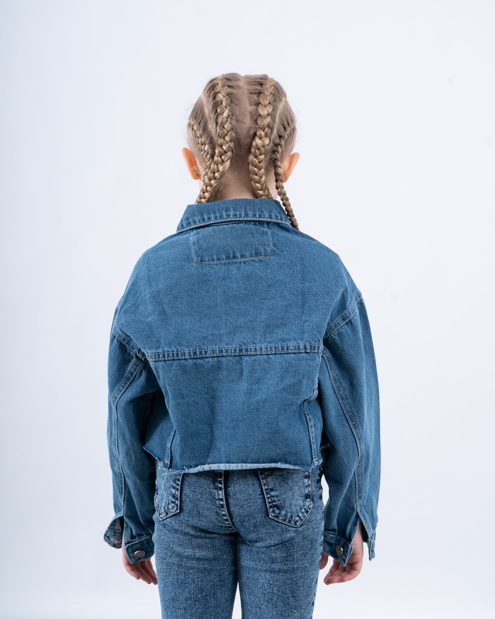 Bring some cool, classic style to your little one’s wardrobe with this cropped denim jacket. Featuring a vintage-inspired wash and distressed hem, it adds a playful twist to a timeless piece. With button-flap chest pockets and a relaxed fit, this jacket is perfect for layering over tees and sweaters, giving a chic edge to any outfit.