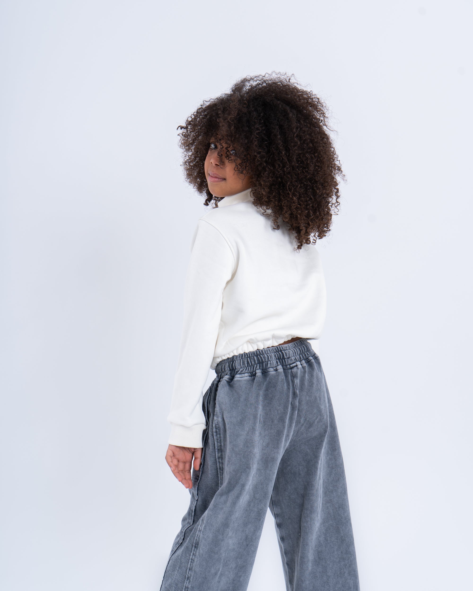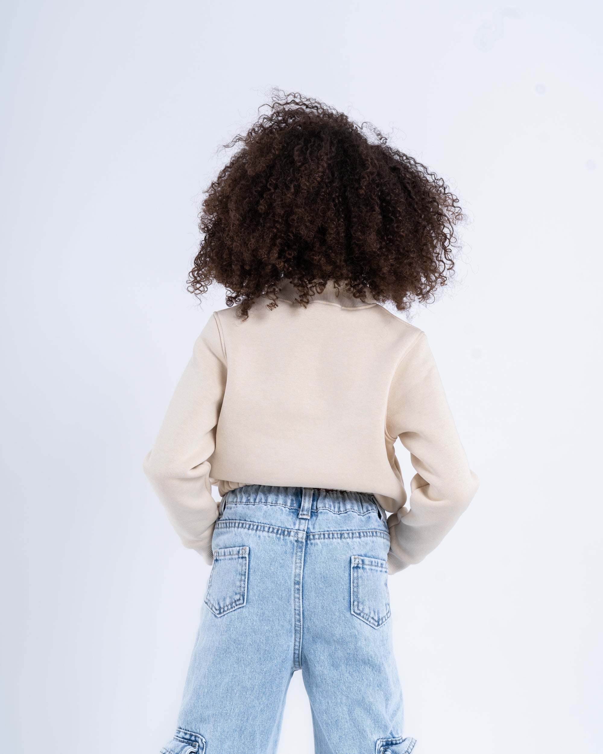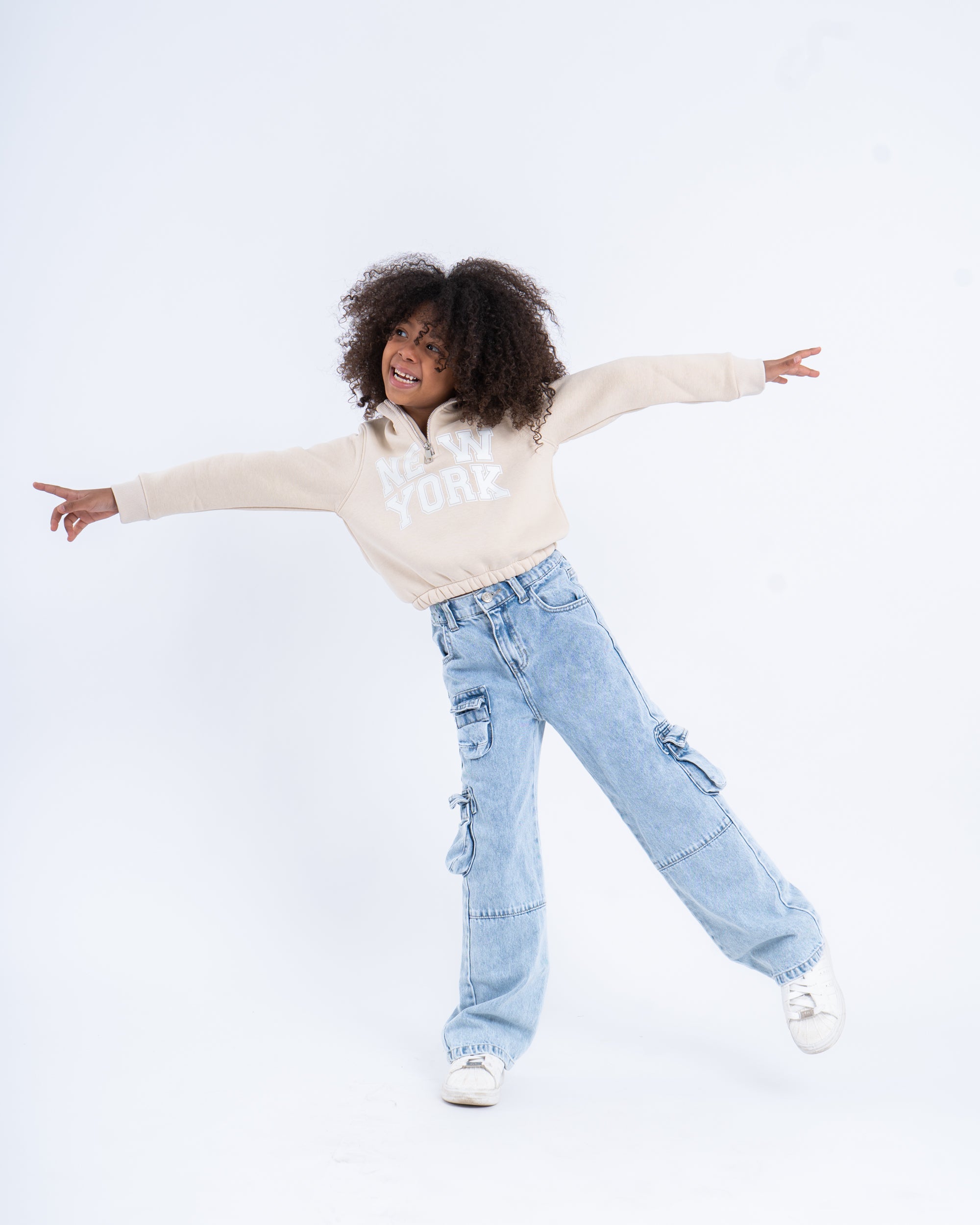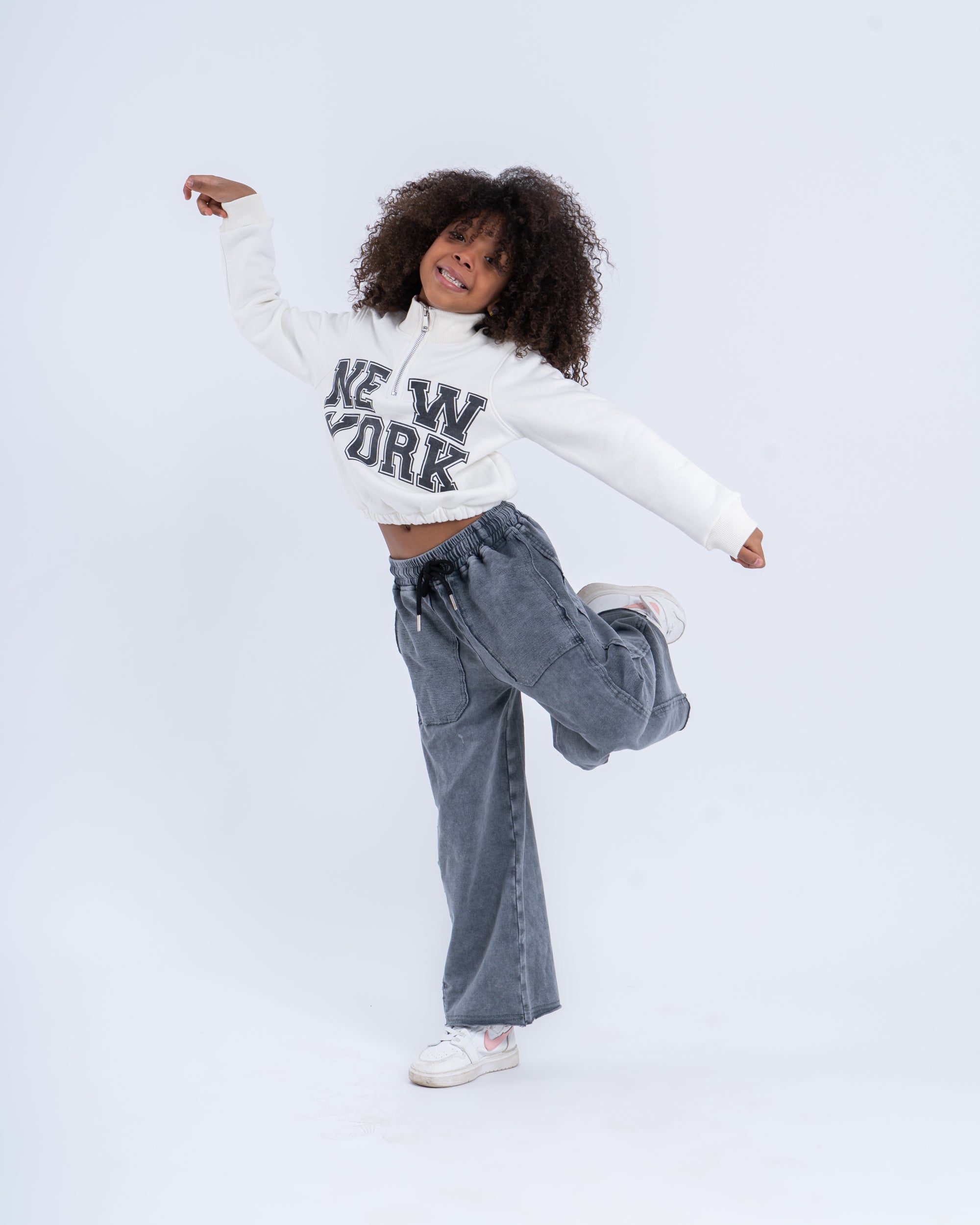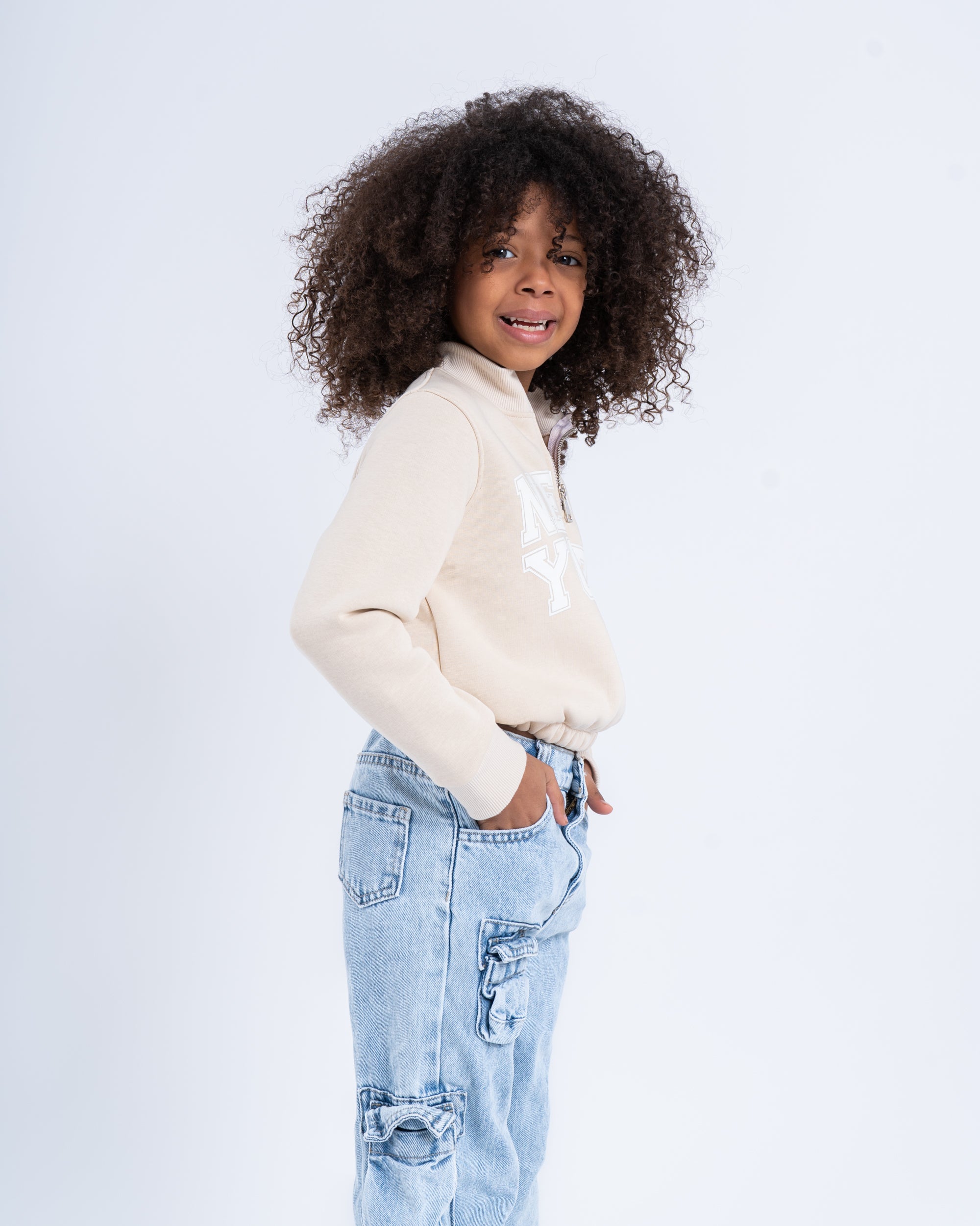 This cozy, high-neck zip-up sweatshirt combines sporty style with comfort. Featuring a bold “New York” graphic across the chest, it’s made from a soft and warm fabric blend in classic white with beige accents. The half-zip design adds a casual, effortless look, perfect for layering or wearing on its own. With its relaxed fit, this sweatshirt is ideal for both lounging and street-style outfits.