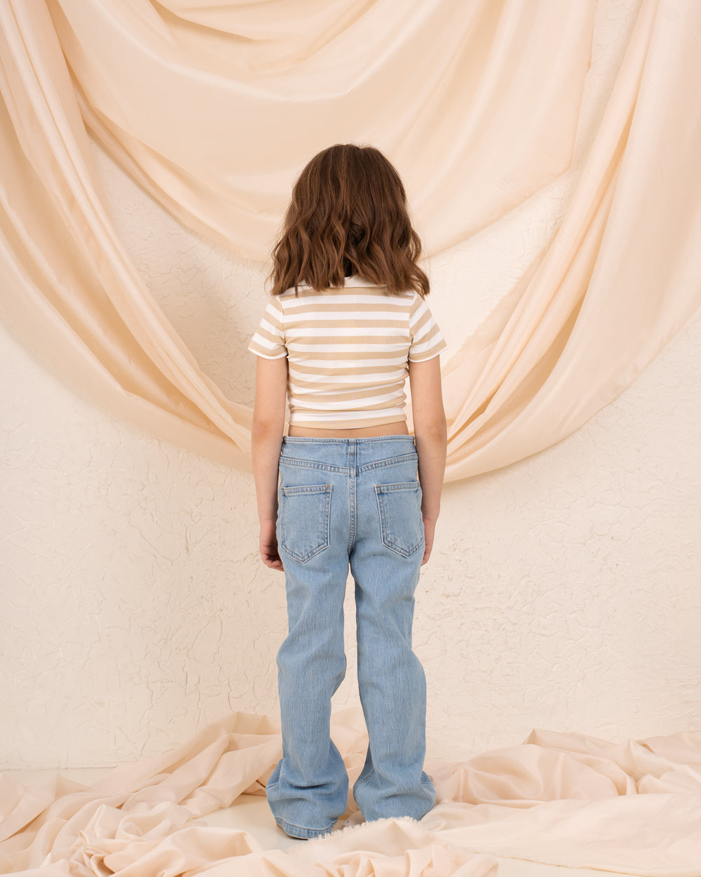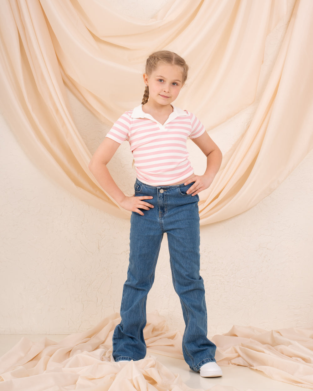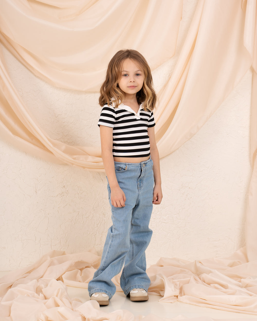 A charming ribbed polo shirt with a soft striped texture, designed for all-day comfort and play.