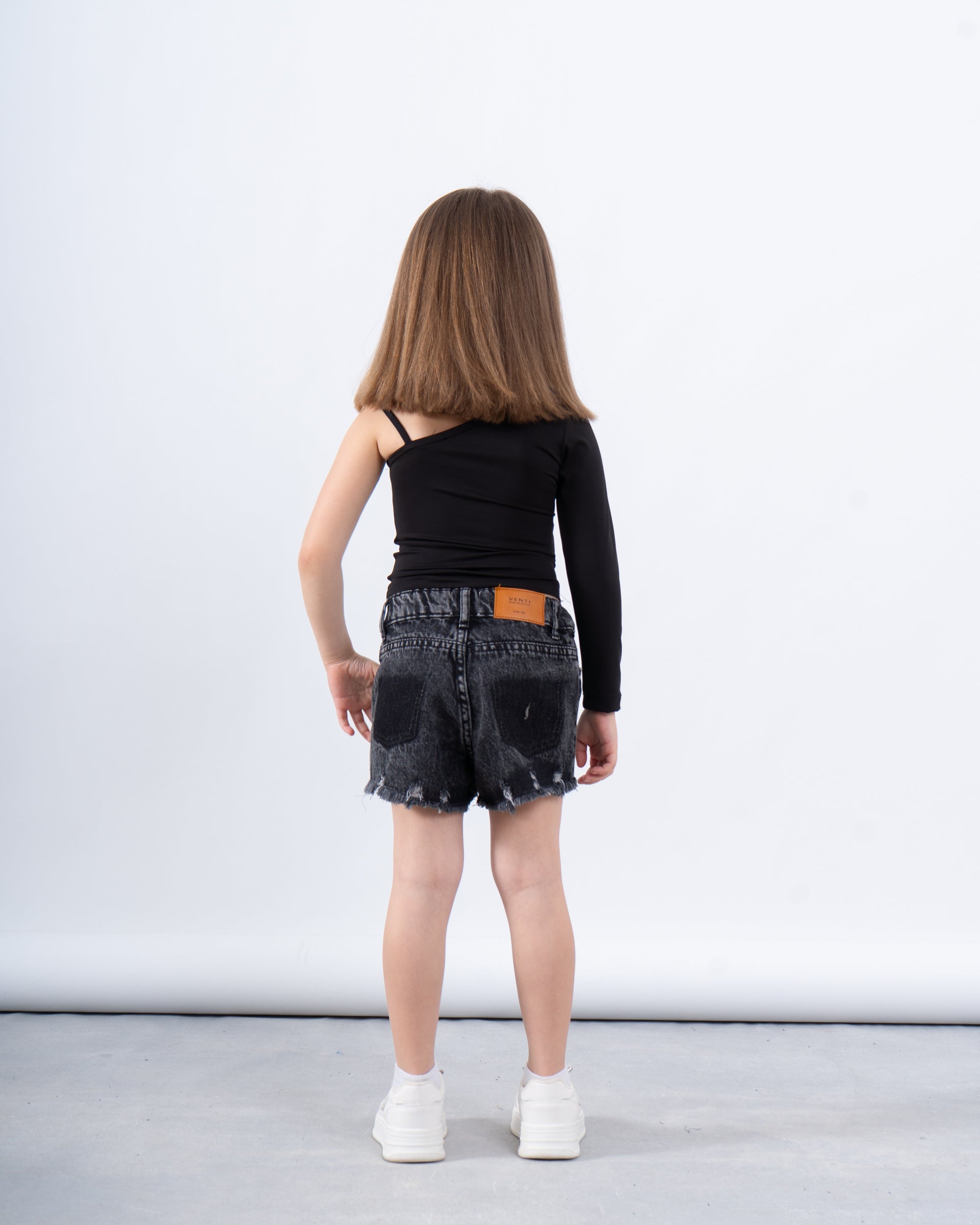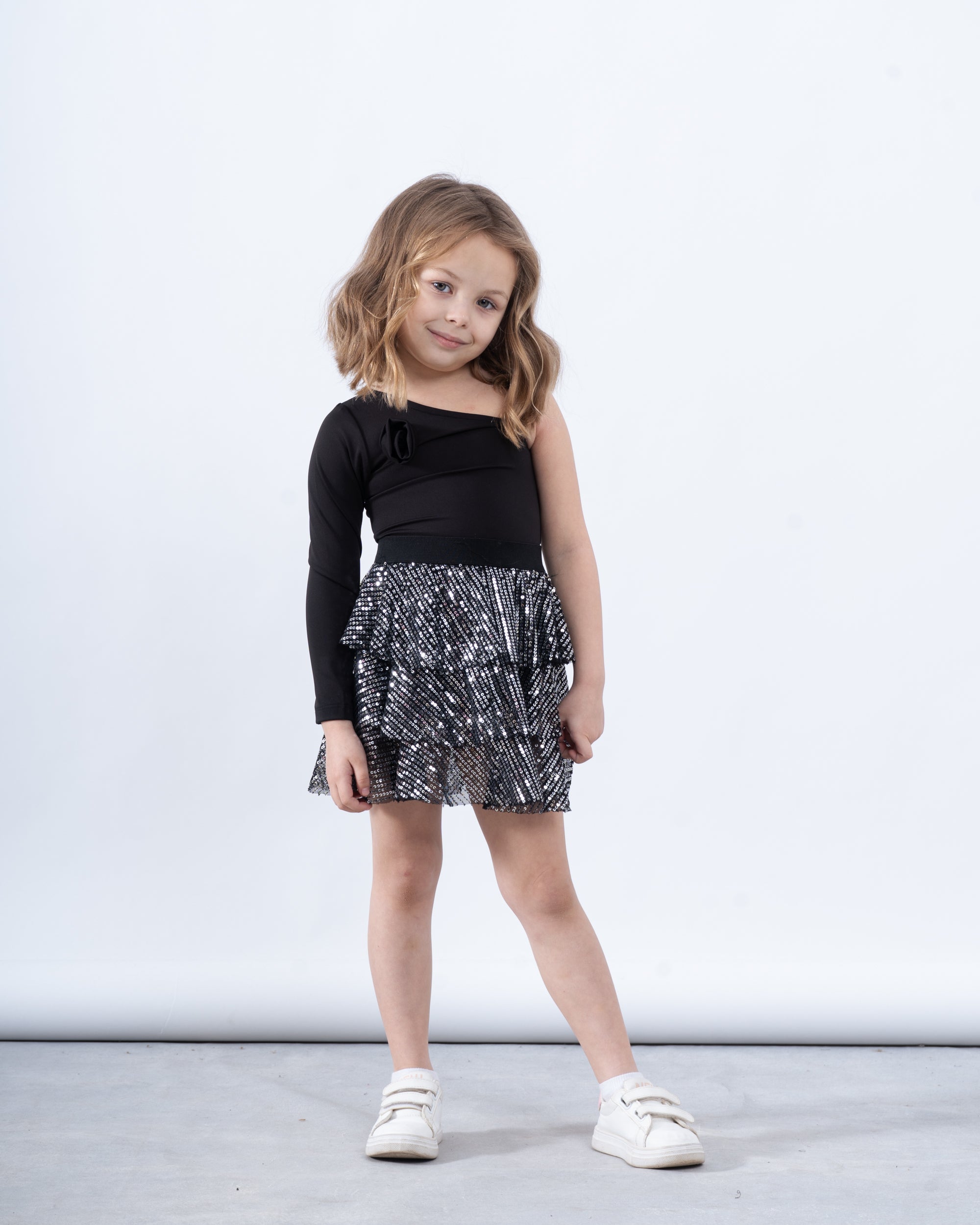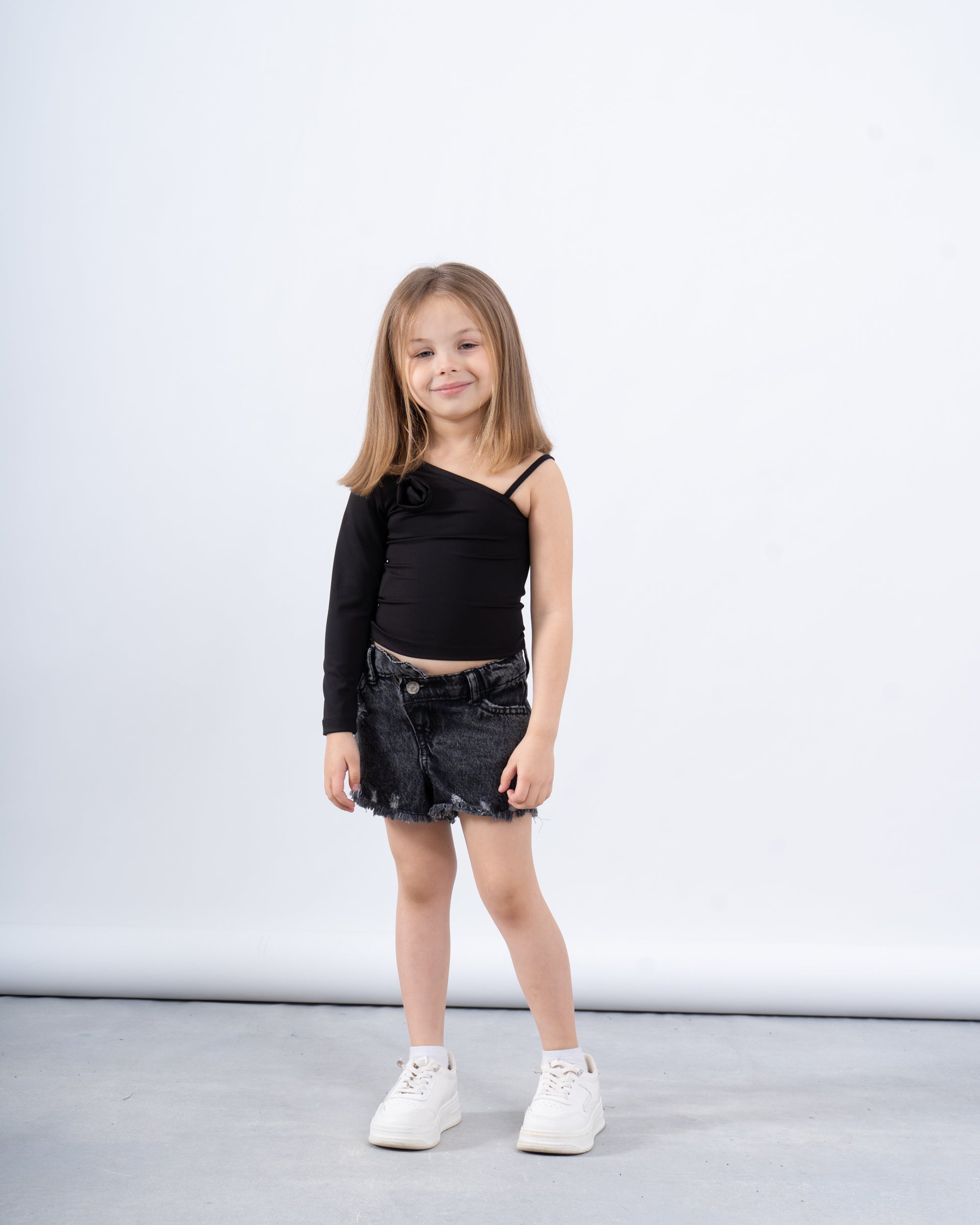 A playful and chic one-shoulder top featuring a delicate flower detail. With its fitted bodice and stylish design, this top is perfect for adding a touch of fun to any outfit, from casual days to more dressed-up moments.