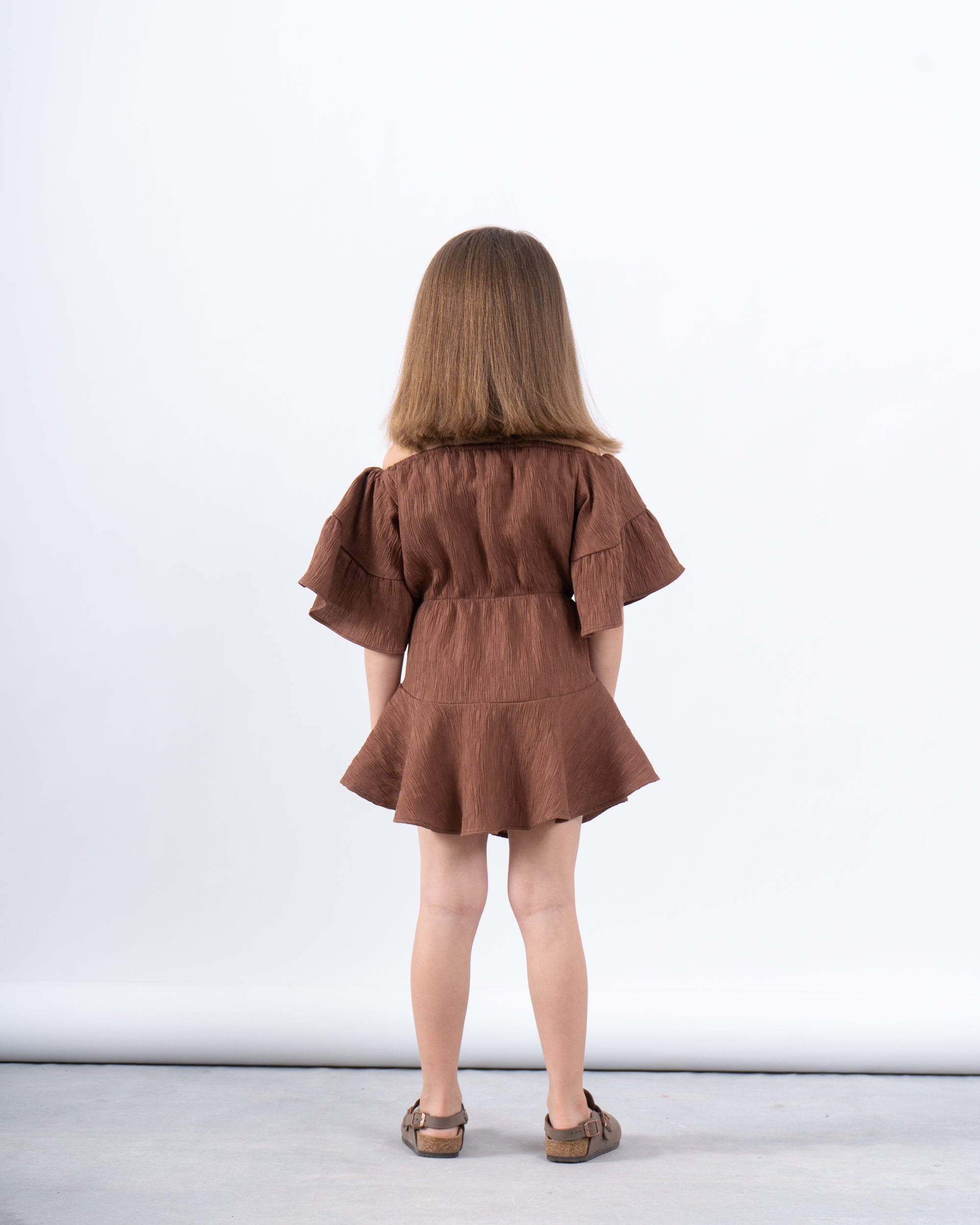 A charming off-shoulder dress that combines playful elegance with effortless style.