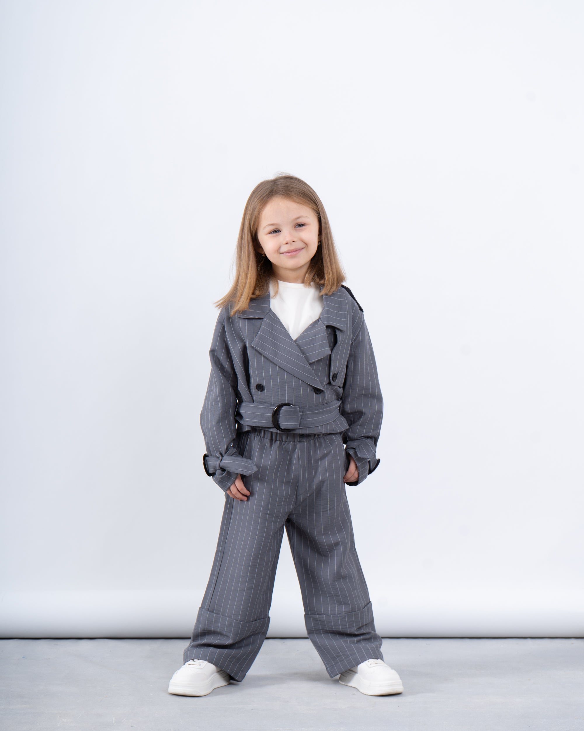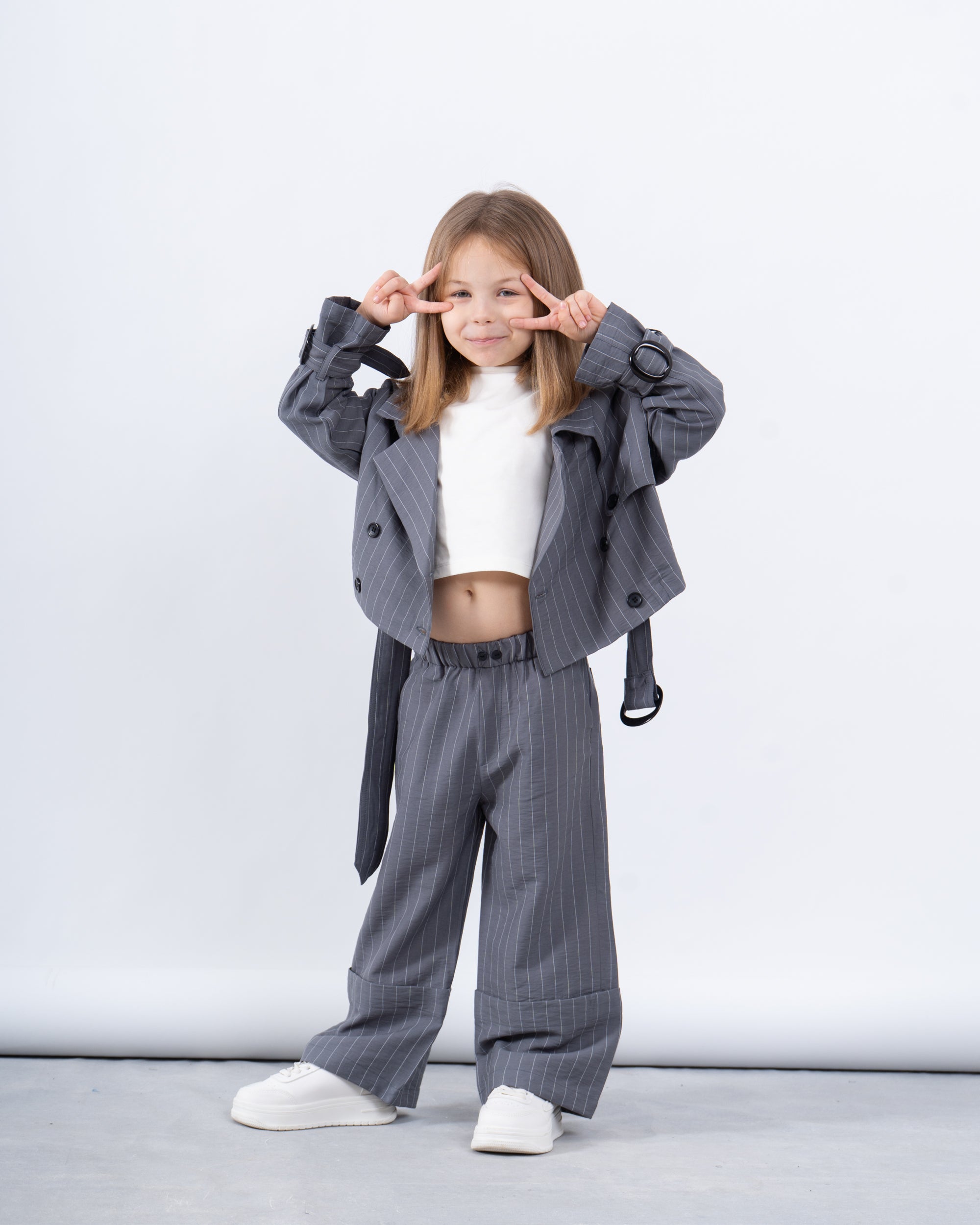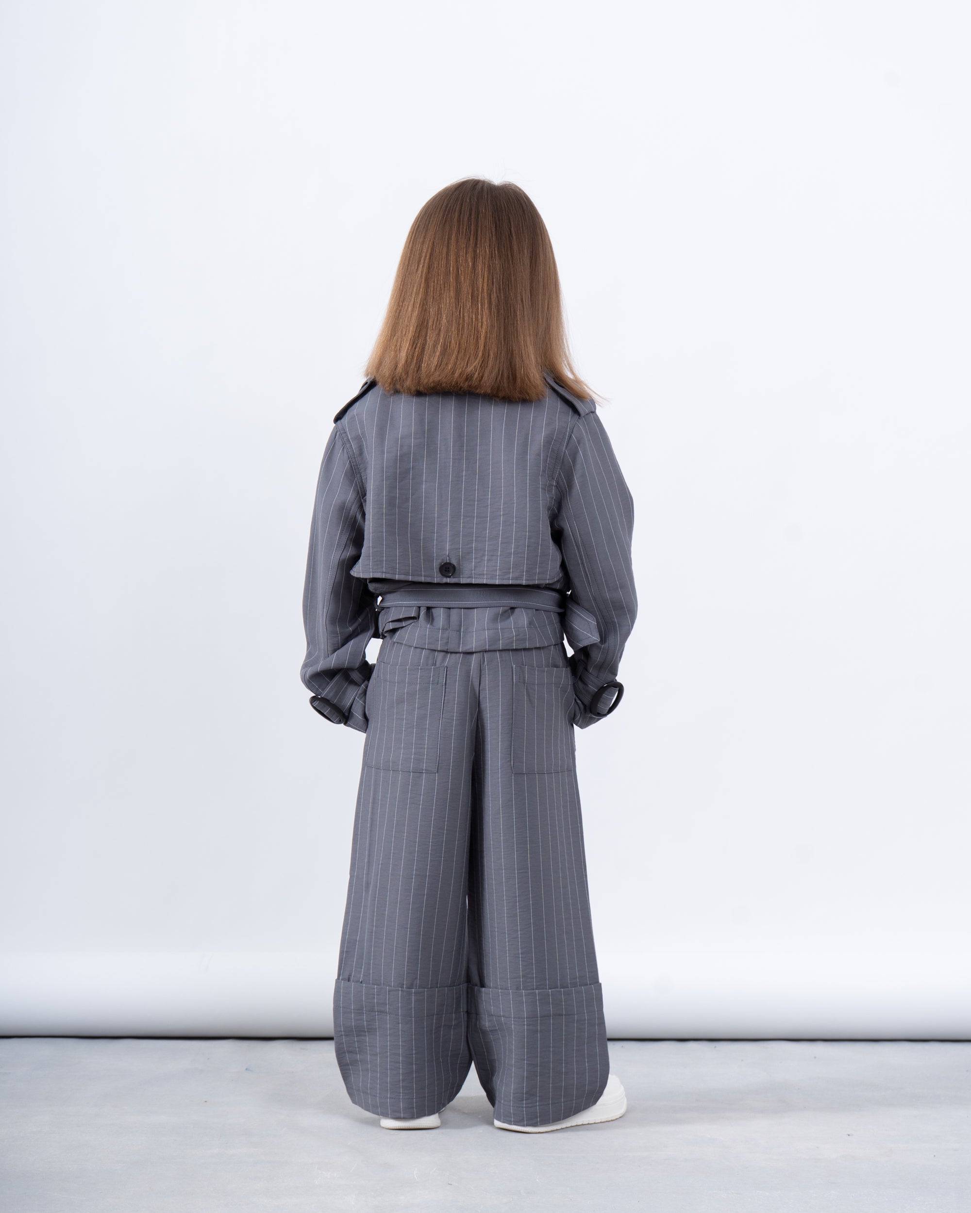 Cropped length with a boxy, relaxed silhouette. Structured shoulder pads for a defined look.