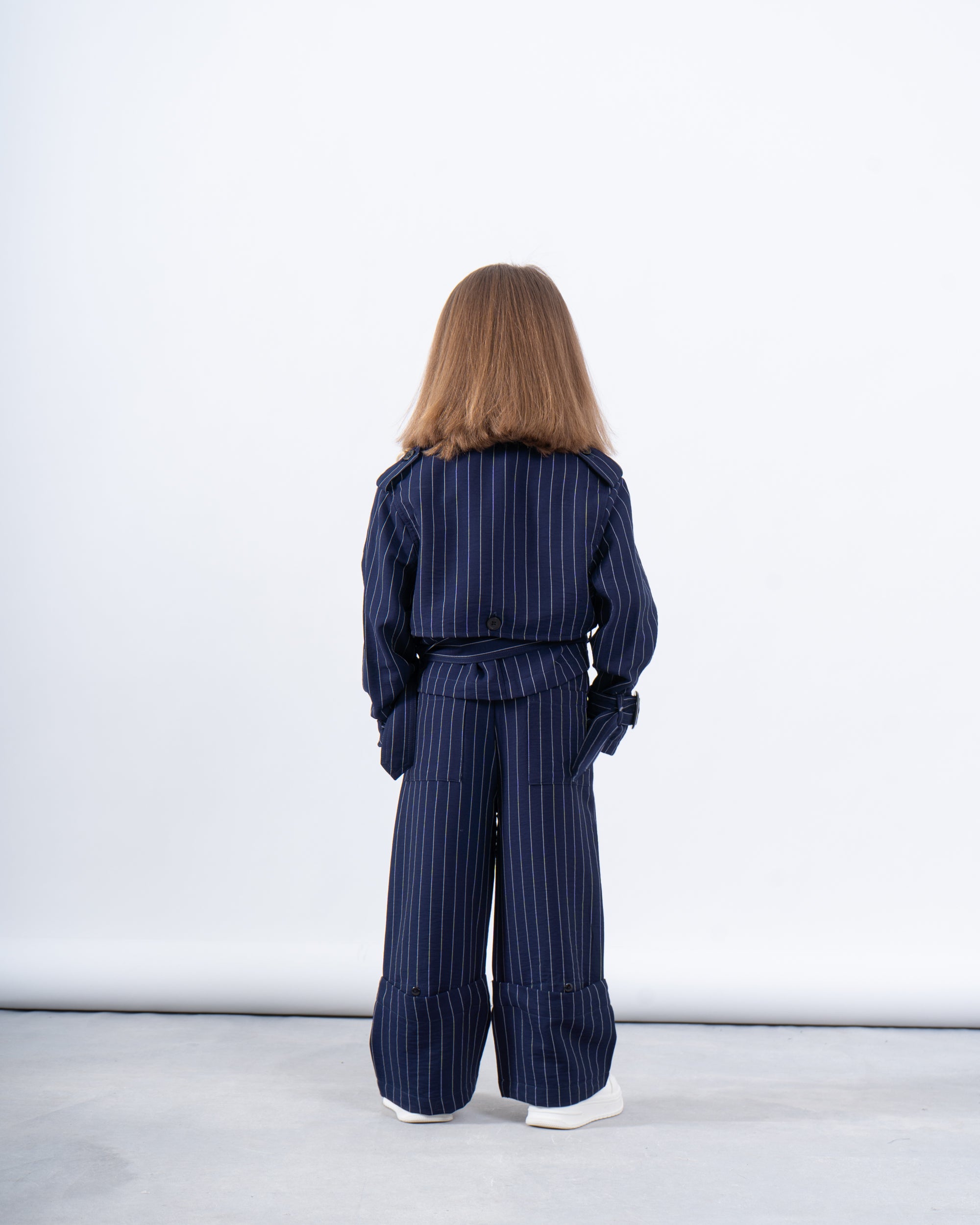 Soft stretch cotton jersey with a smooth finish. Available in pinstripe navy blue and grey.