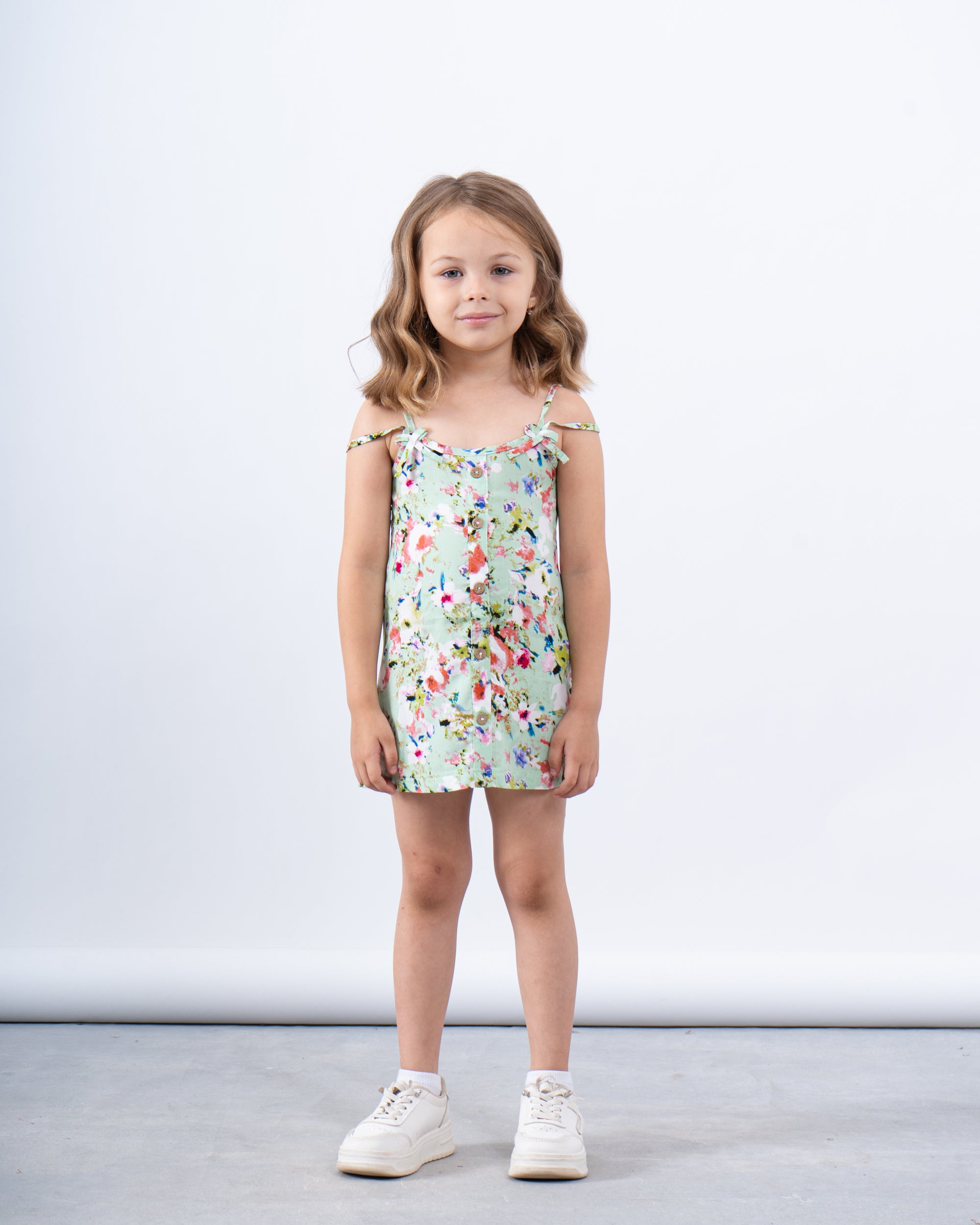 A lightweight floral slip dress designed for sunny days and playful moods. Features tie straps and a comfortable silhouette, perfect for everyday wear or special outings.