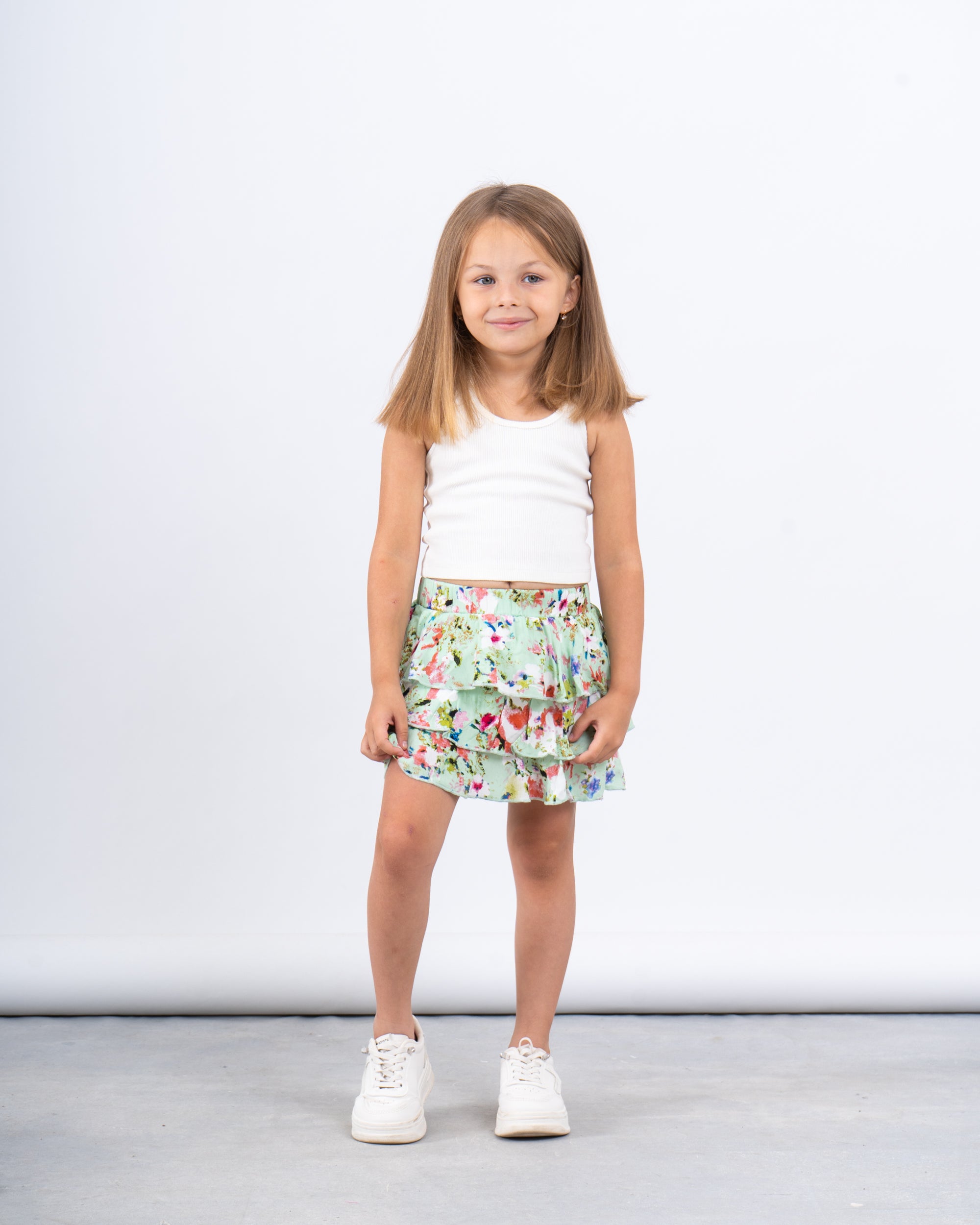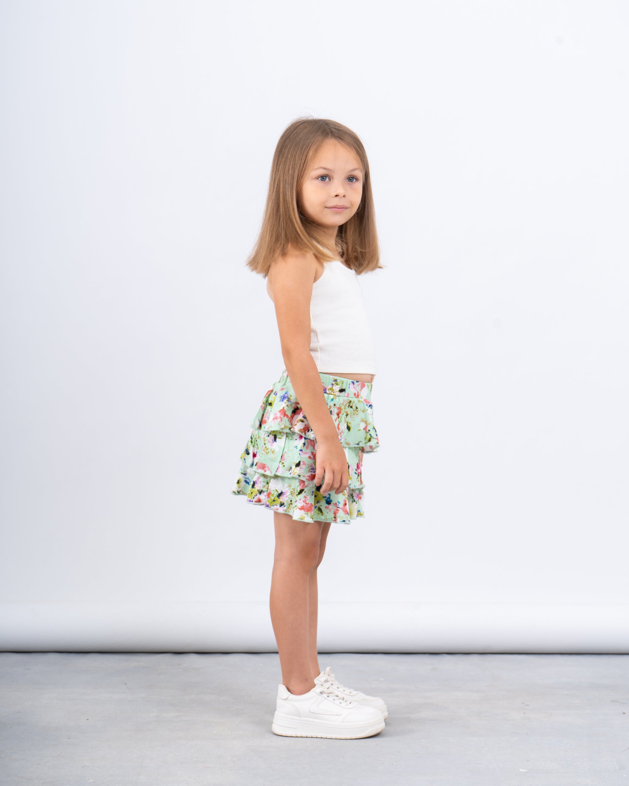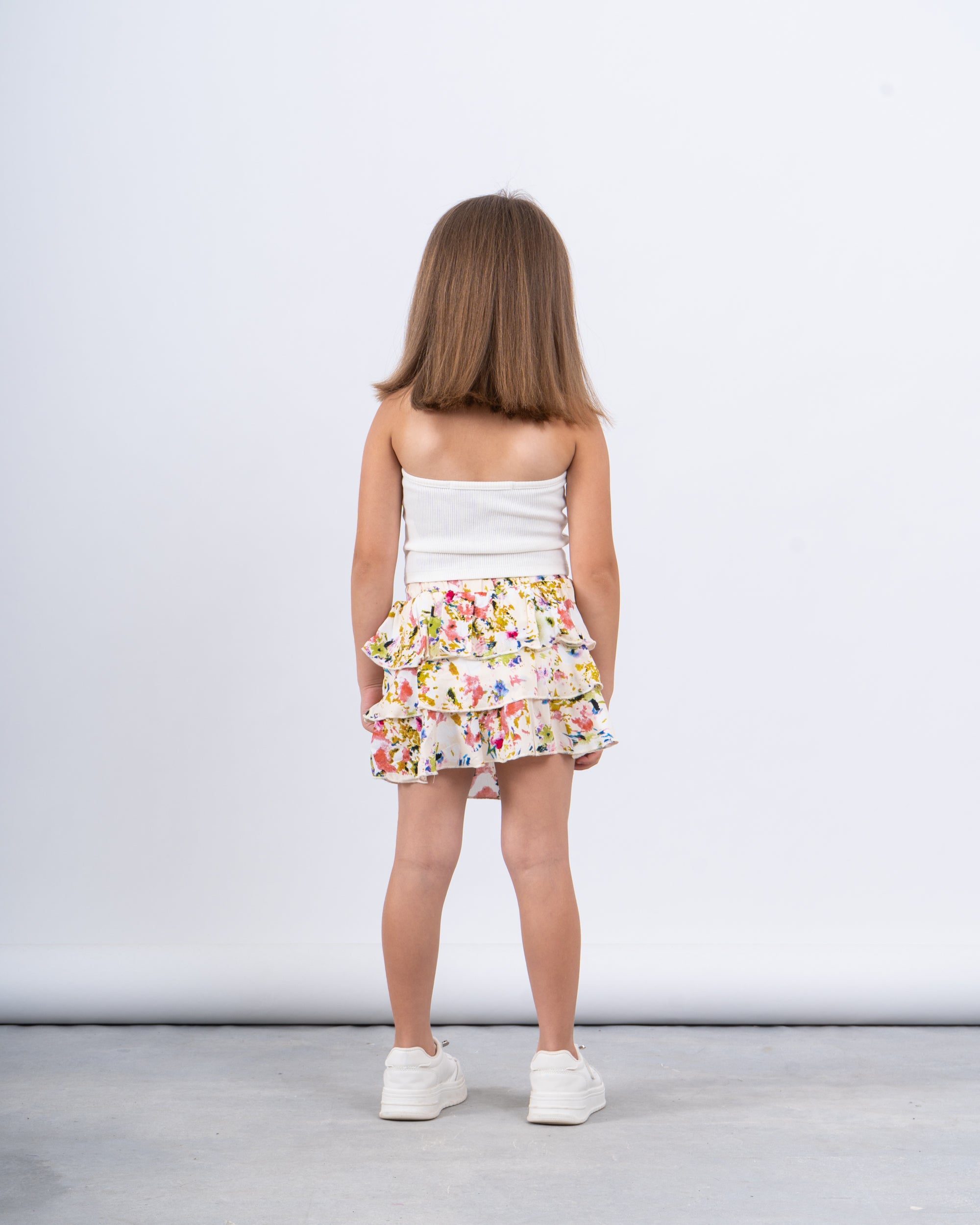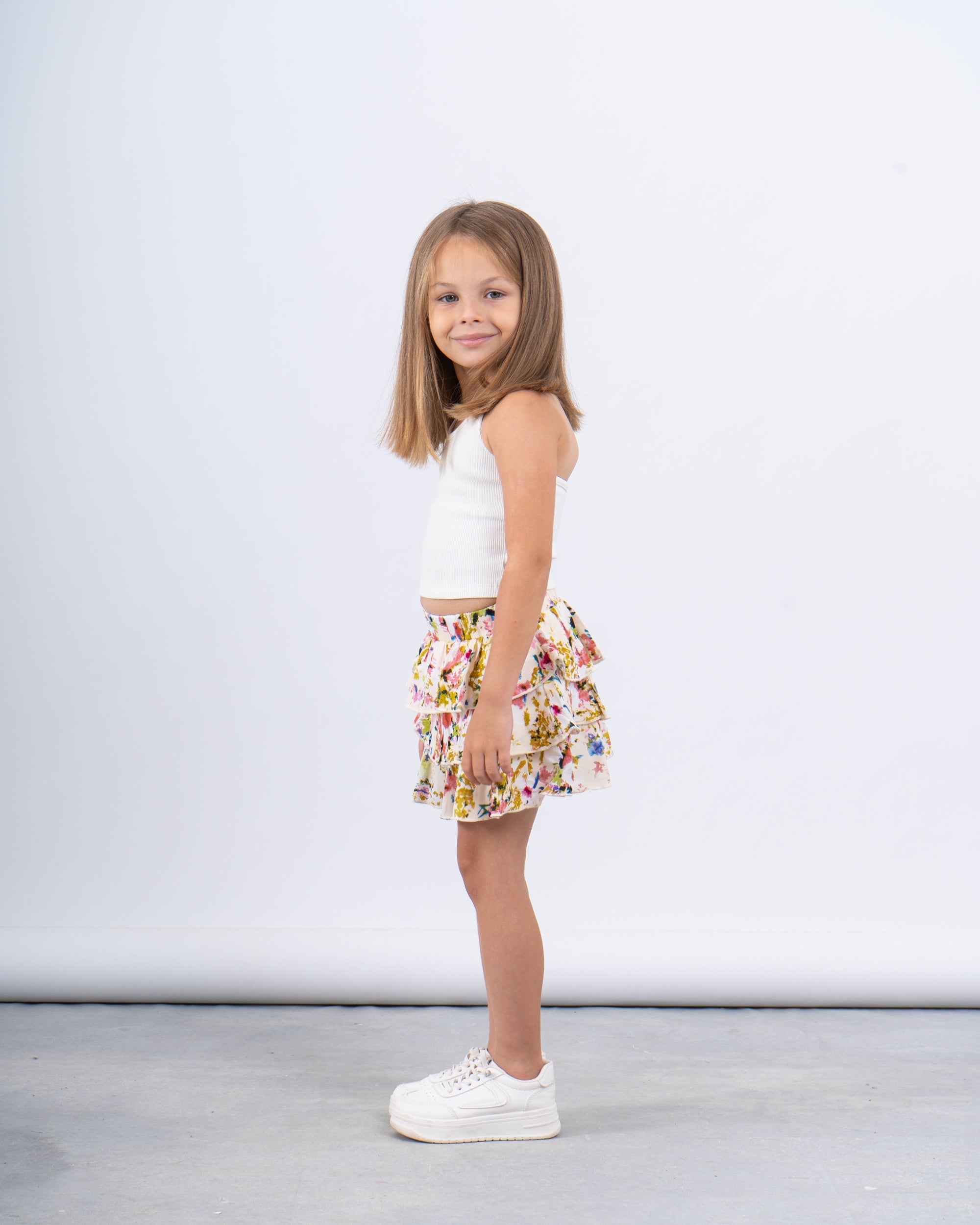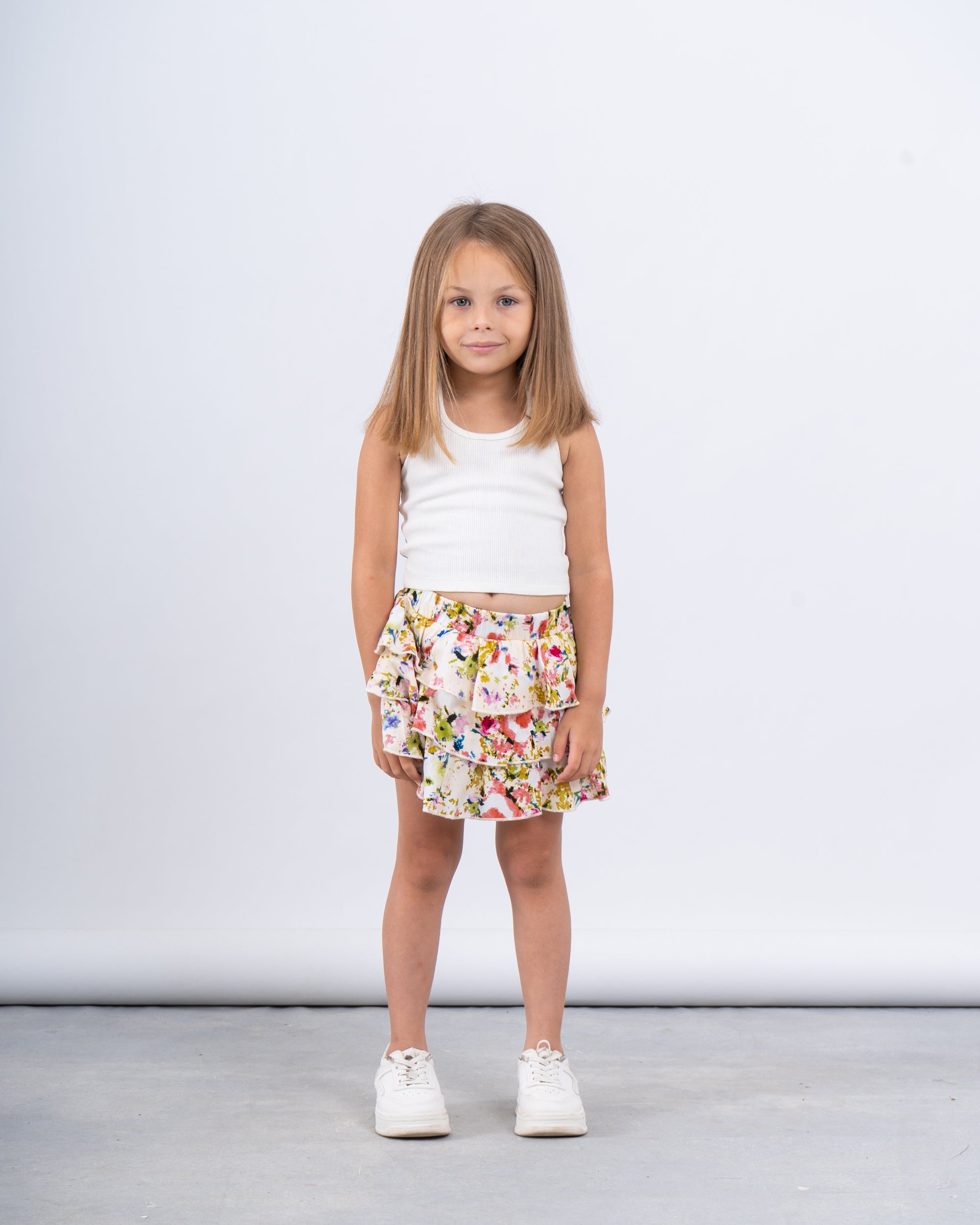 A playful and breezy skirt designed to brighten up any outfit. Featuring an all-over floral print and soft layered ruffles, it brings a fun, feminine touch to warm-weather days.