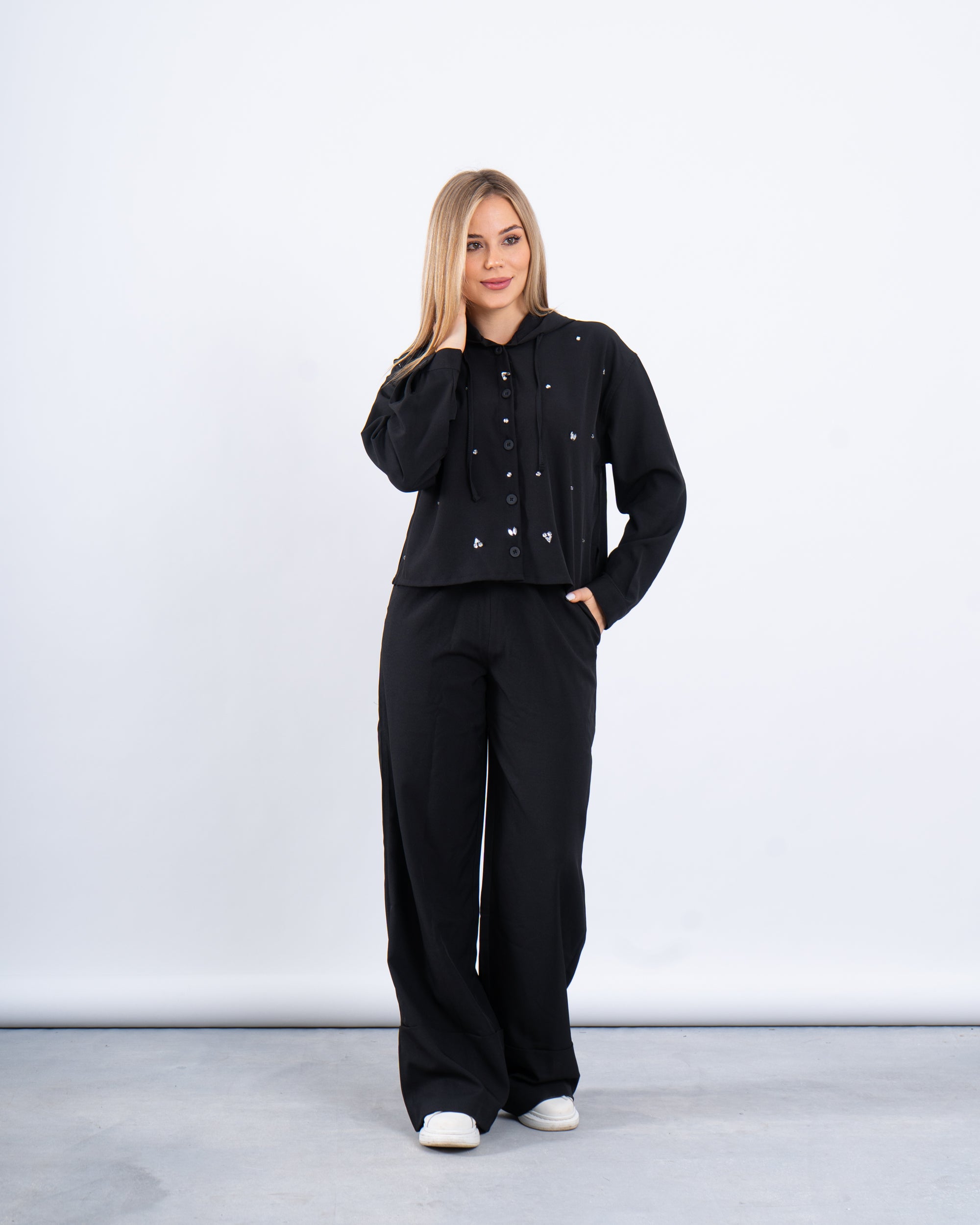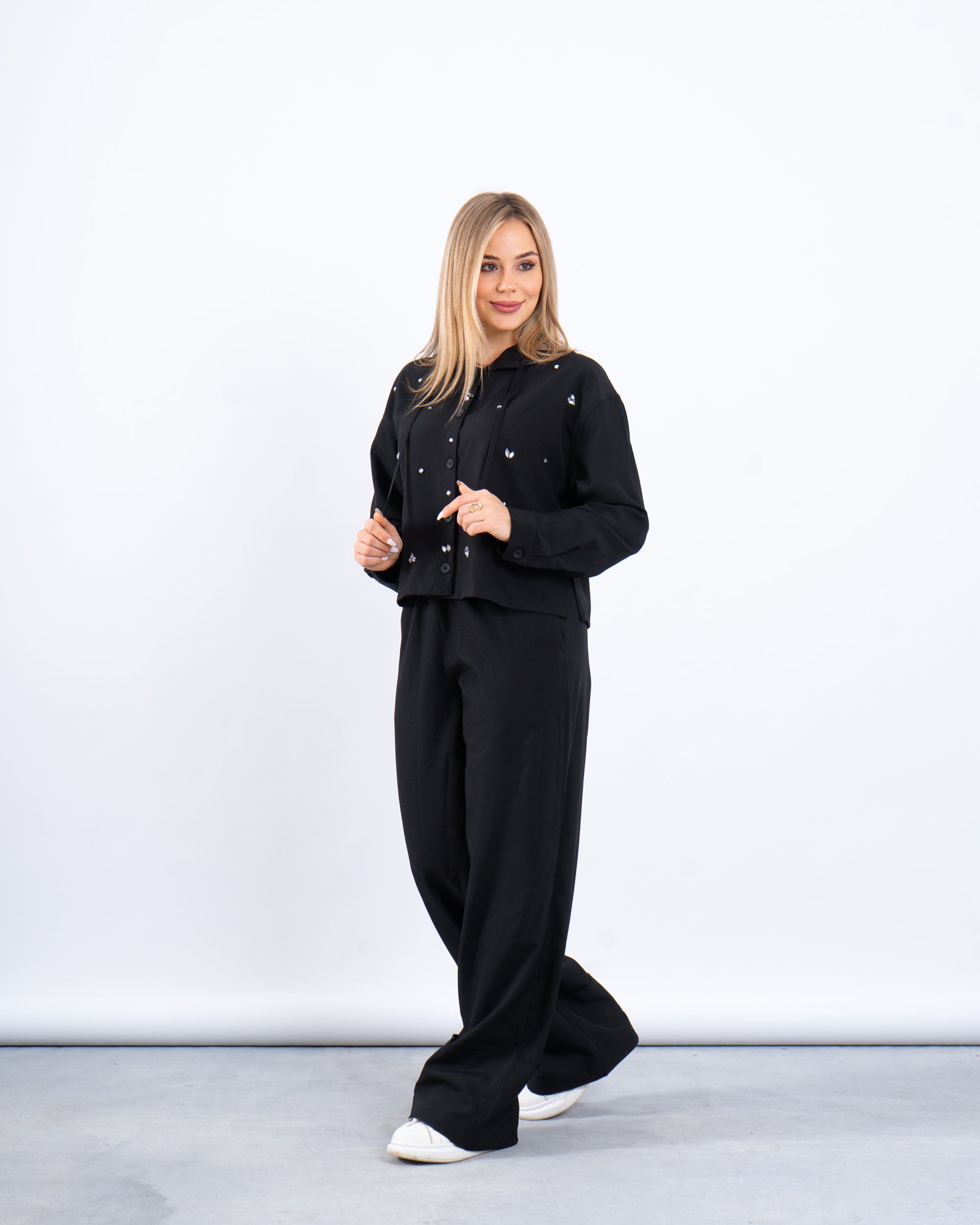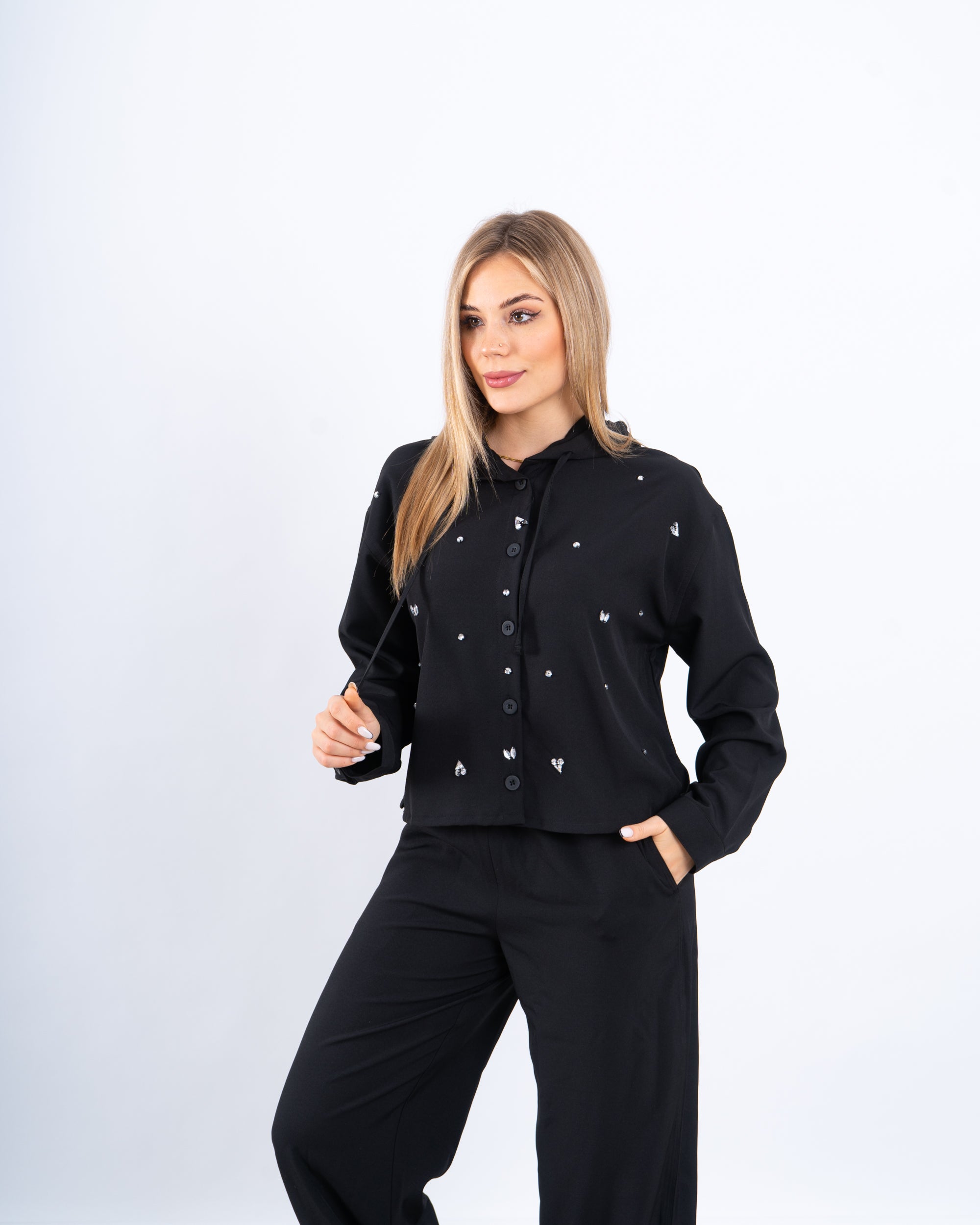 A bold take on effortless style ✨ This hooded shirt features delicate embellishments for a subtle sparkle. Designed with a relaxed fit, the lightweight fabric ensures all-day comfort while the hooded detail adds a modern, laid-back edge. Available in charcoal grey and black, it’s a versatile statement piece that elevates any look.