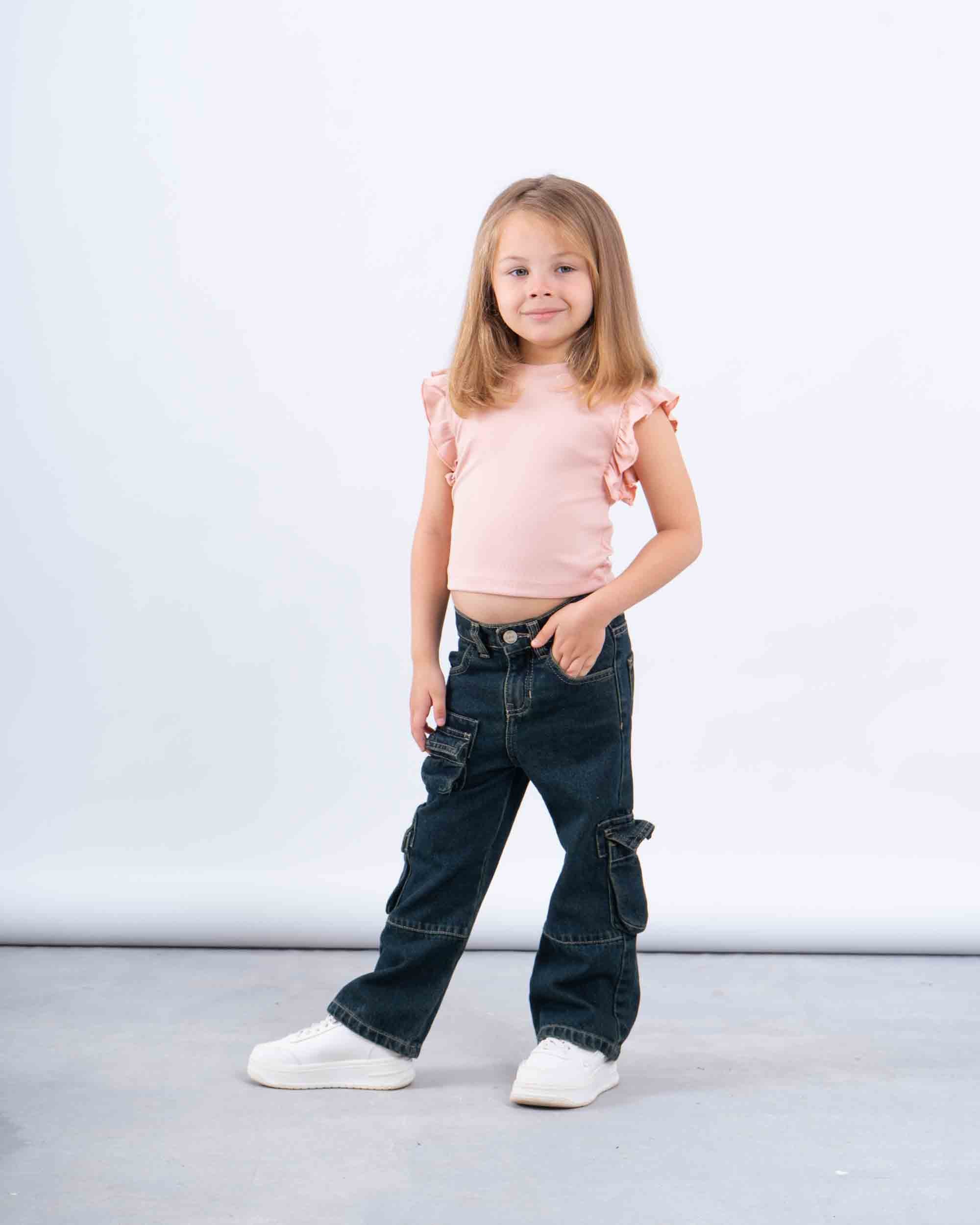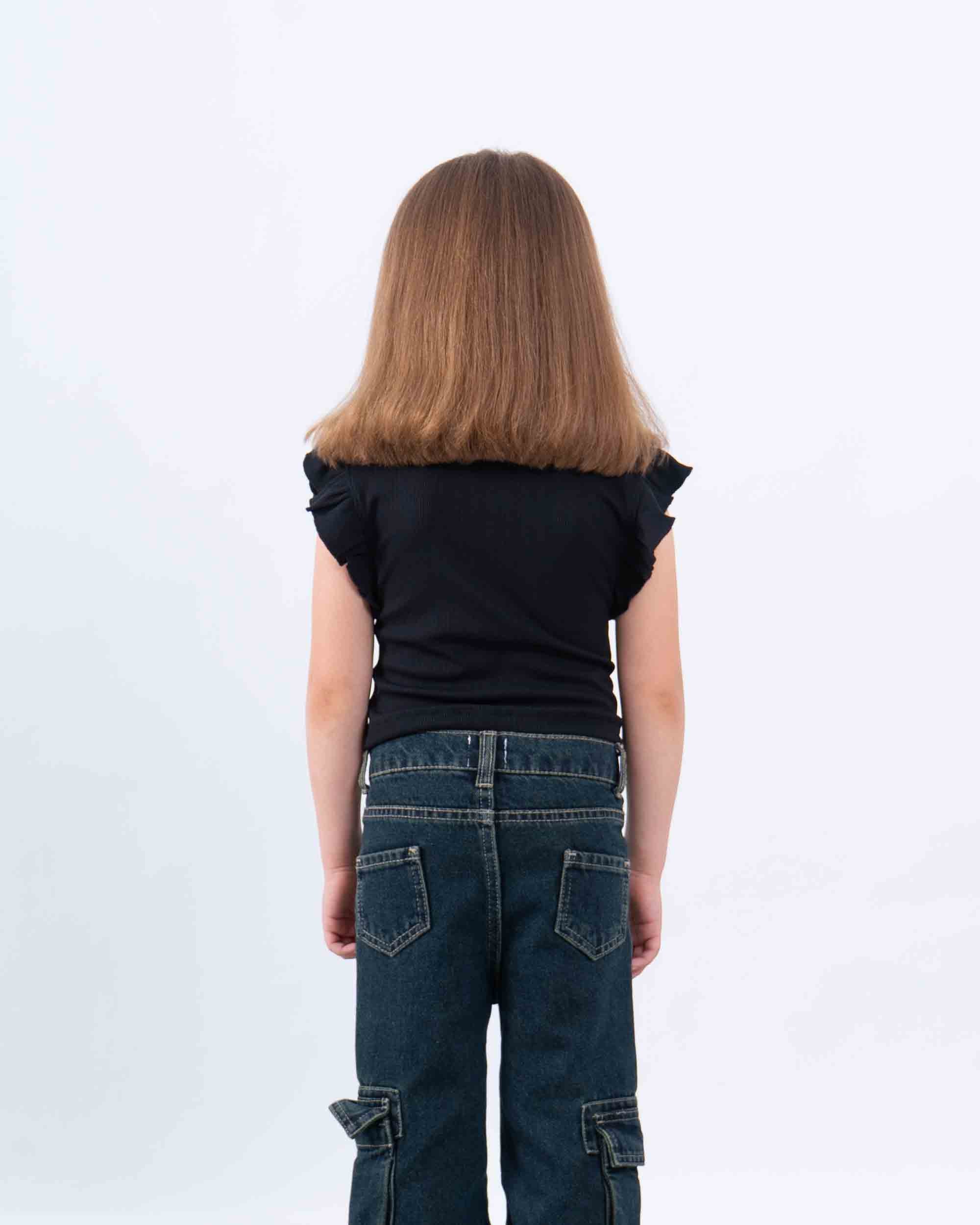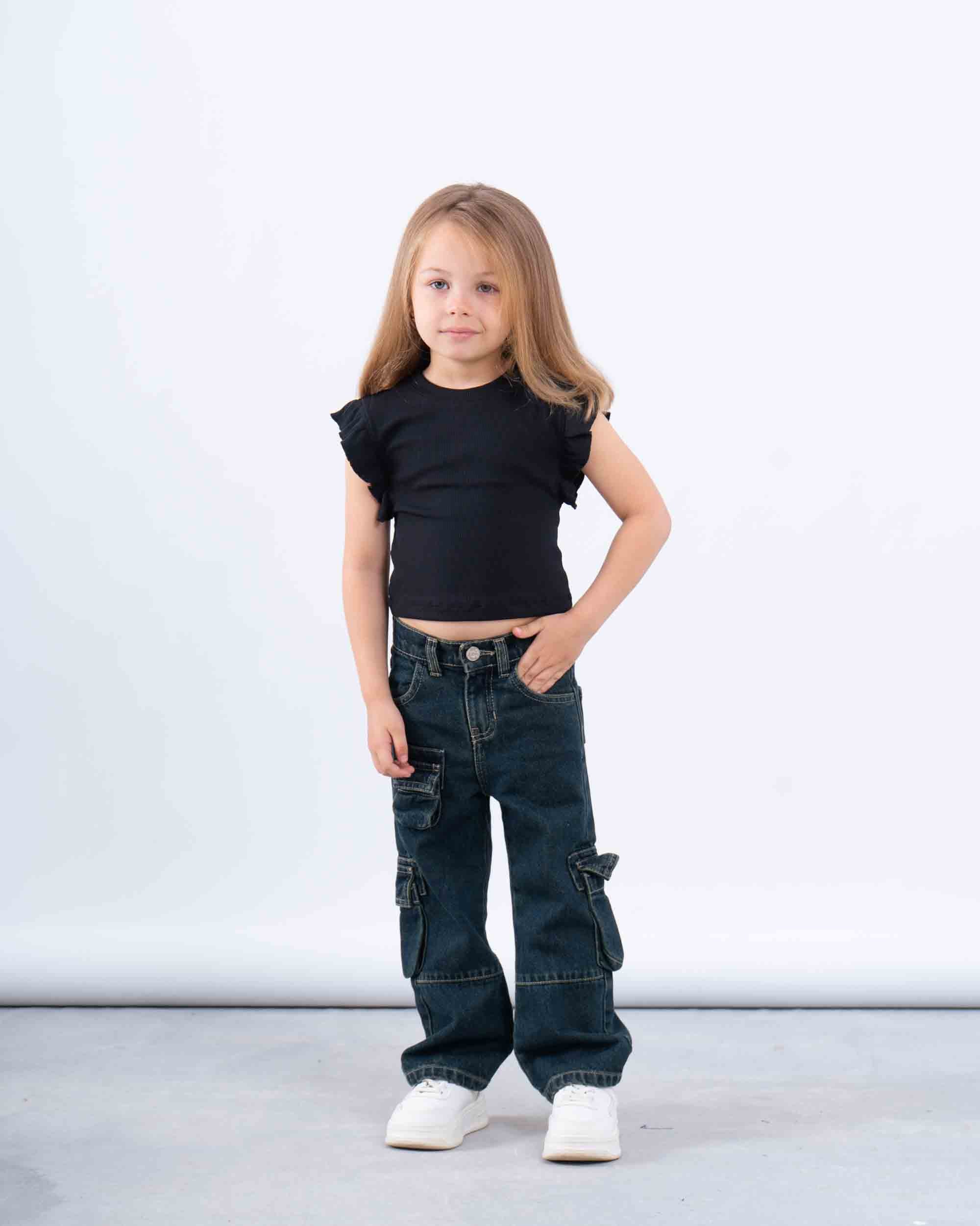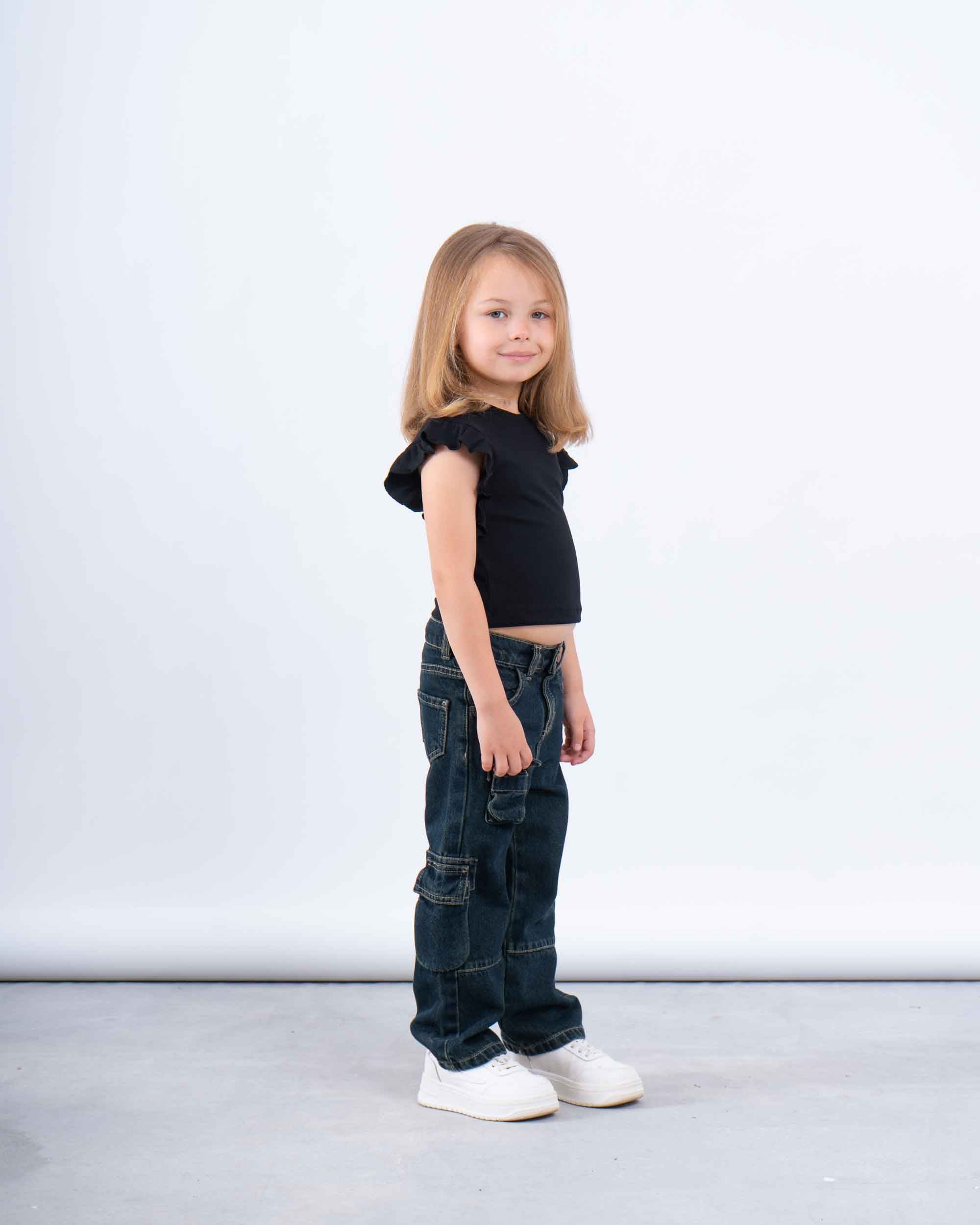 A sweet and stylish crop top with delicate ruffled sleeves for a playful twist. Soft and stretchy for everyday comfort, this piece is perfect for girls who love fashion and fun.