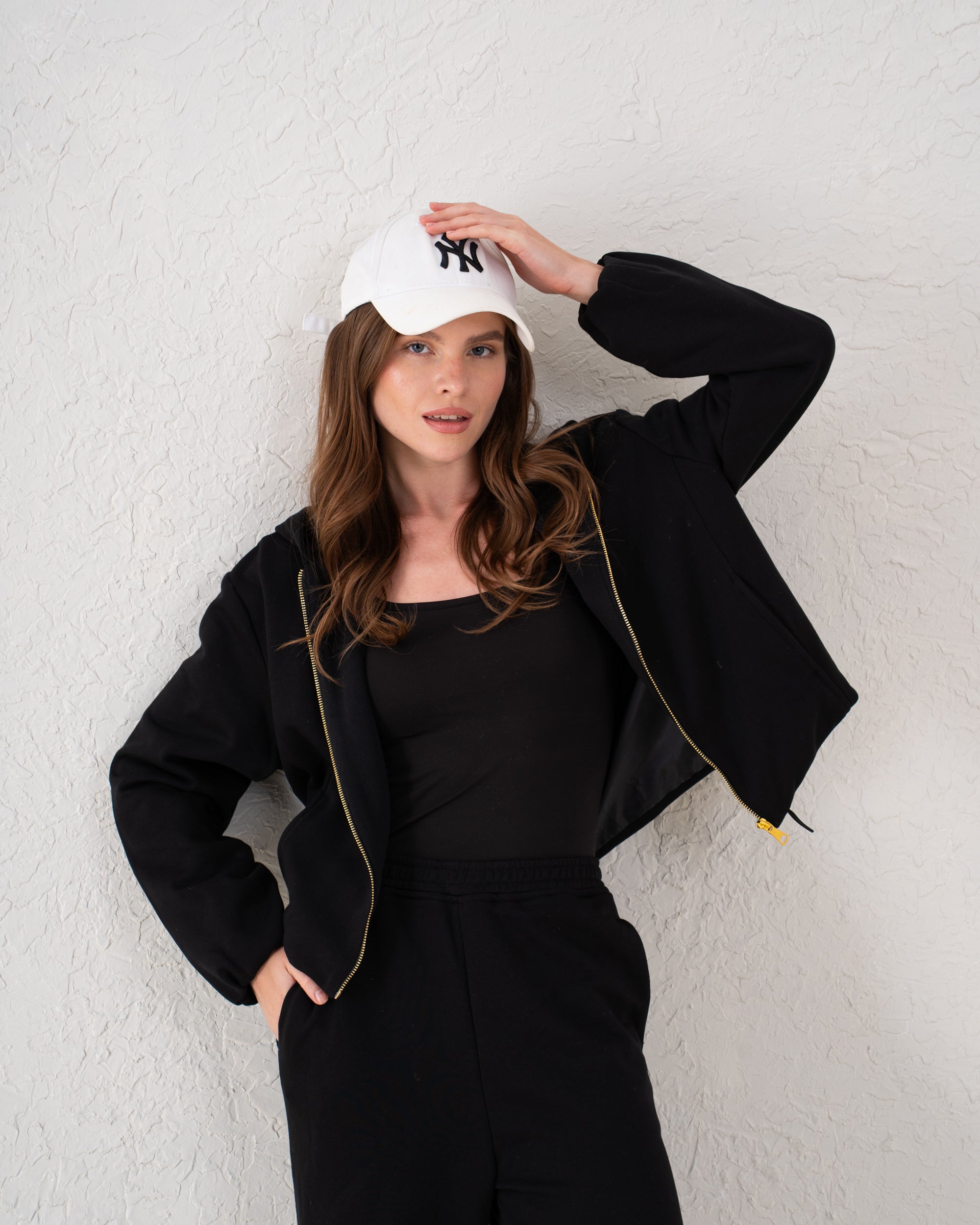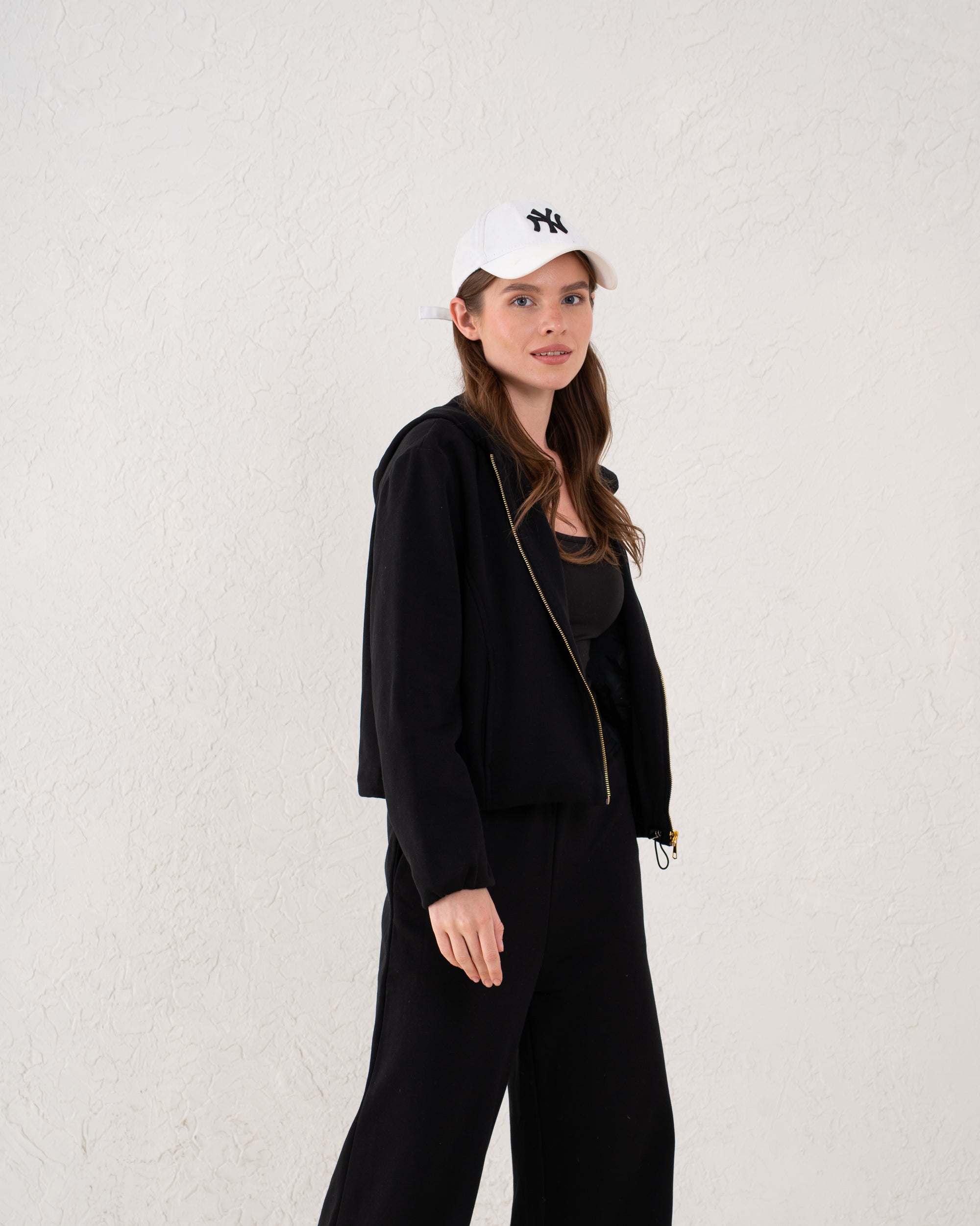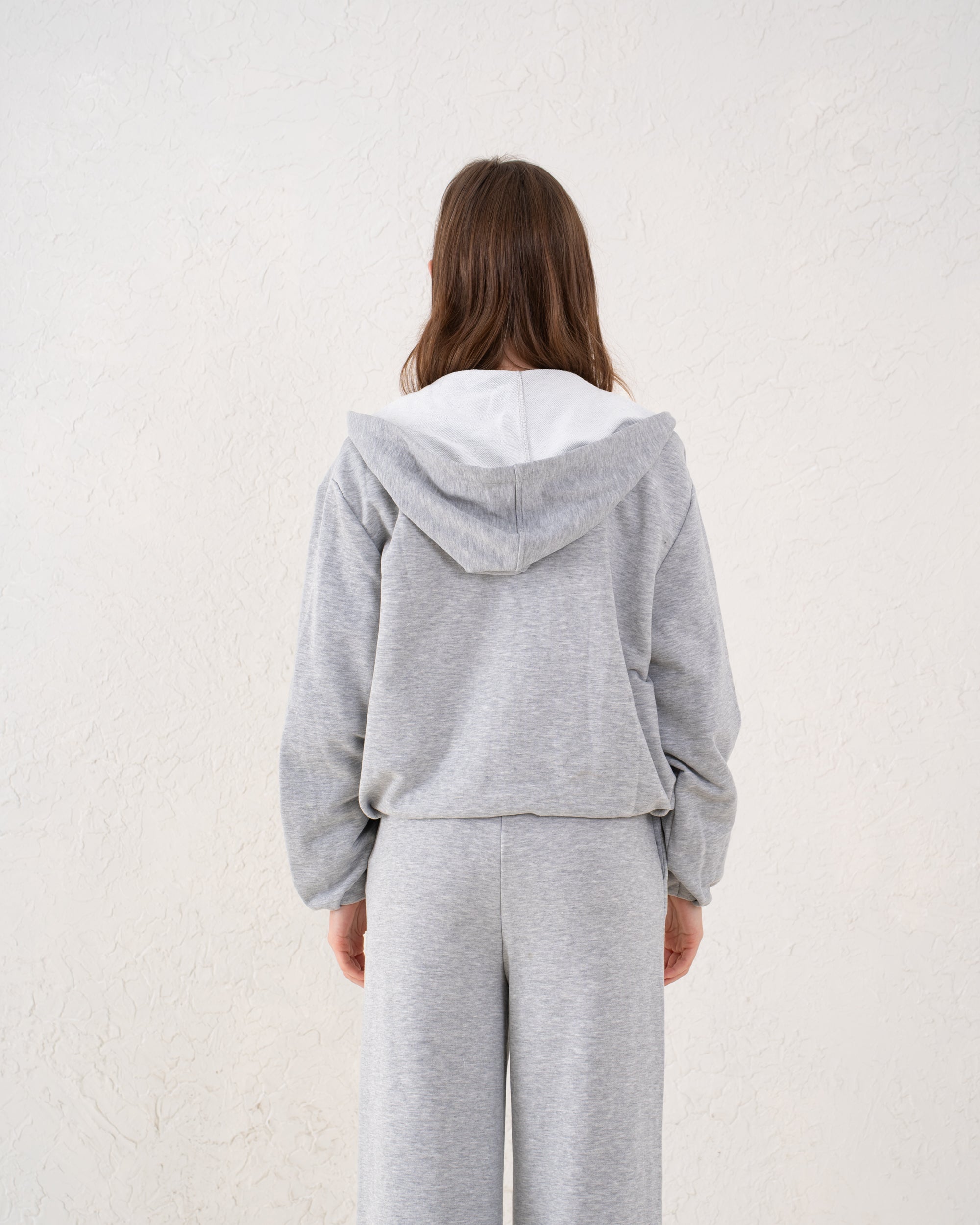 A cozy zip-up hoodie with a slightly puffed silhouette, offering a relaxed and stylish fit. Designed with elastic cuffs and hem that create a subtle balloon effect, giving it that trendy laid-back look perfect for everyday wear.