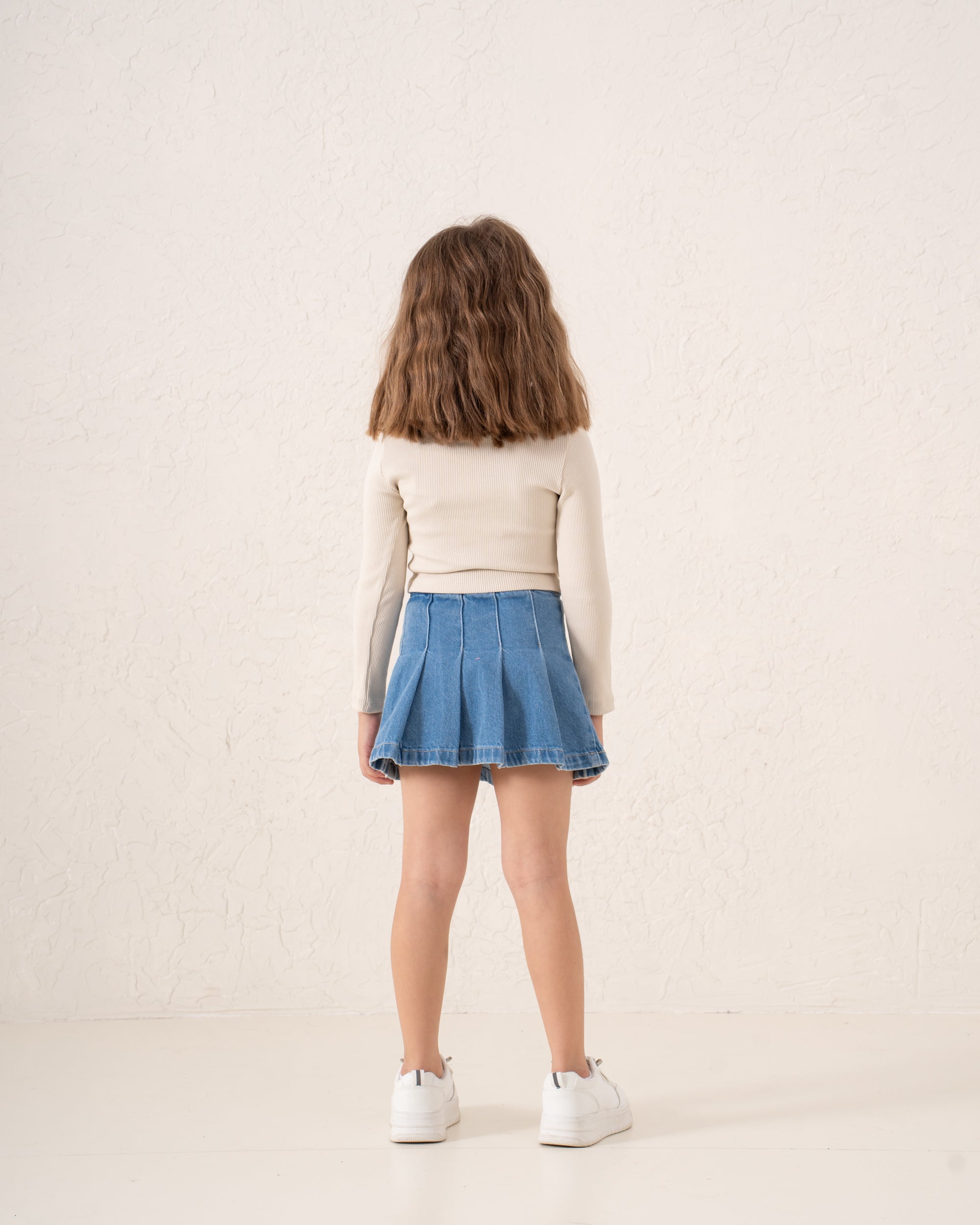A playful essential with a classic twist, this pleated denim mini skirt adds movement and style to any outfit. Designed with a structured fit and soft denim feel, it’s perfect for everyday looks, outings, and layered winter looks.