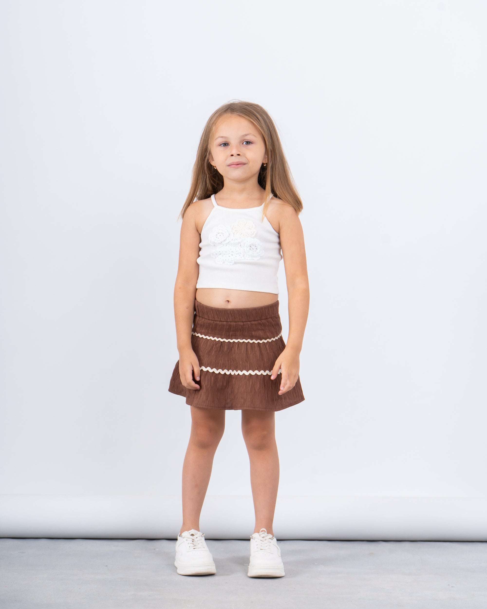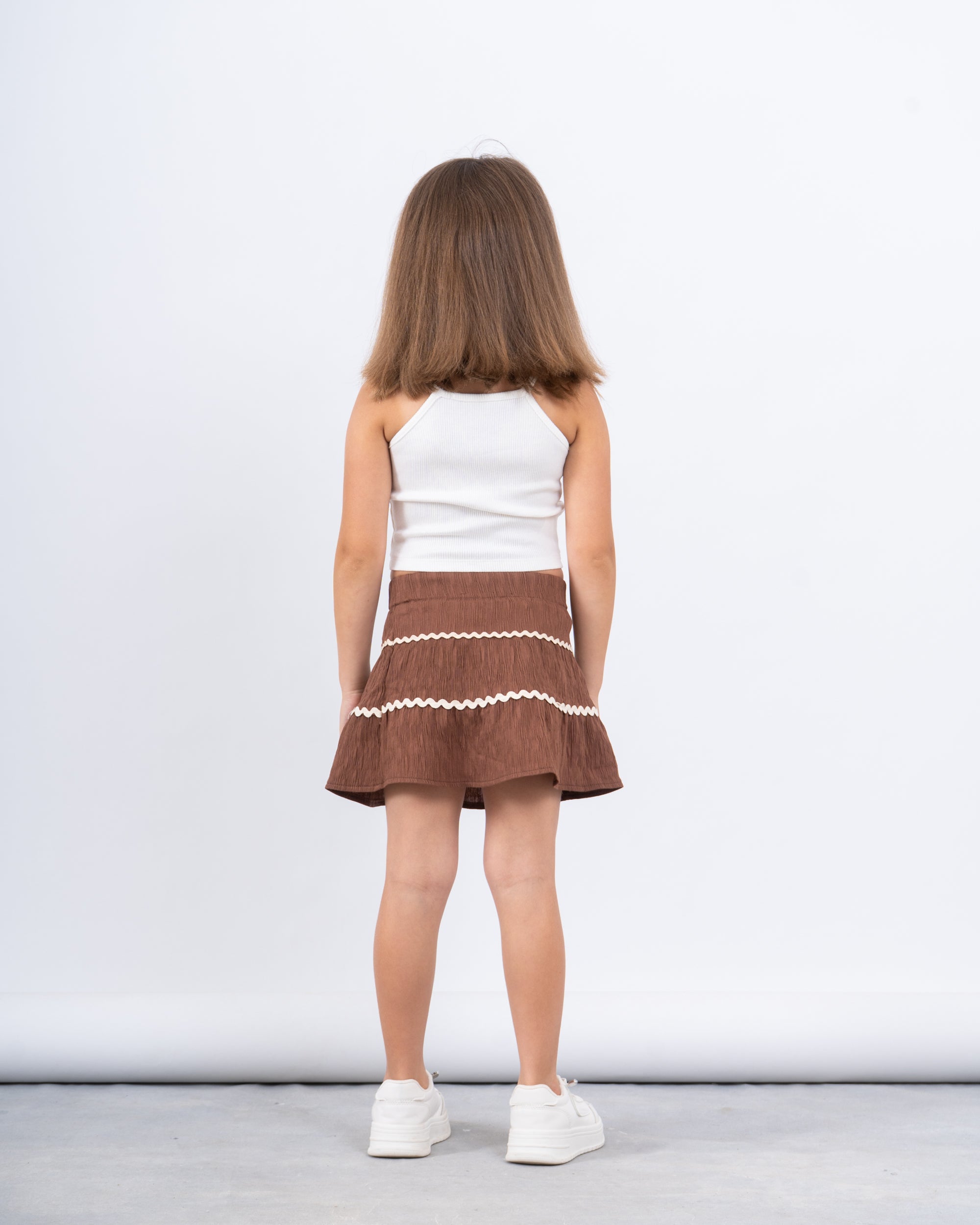 A charming mini skirt featuring a unique wave-like embroidered design and a softly flared silhouette. Effortlessly cute and easy to mix and match for any summer adventure.