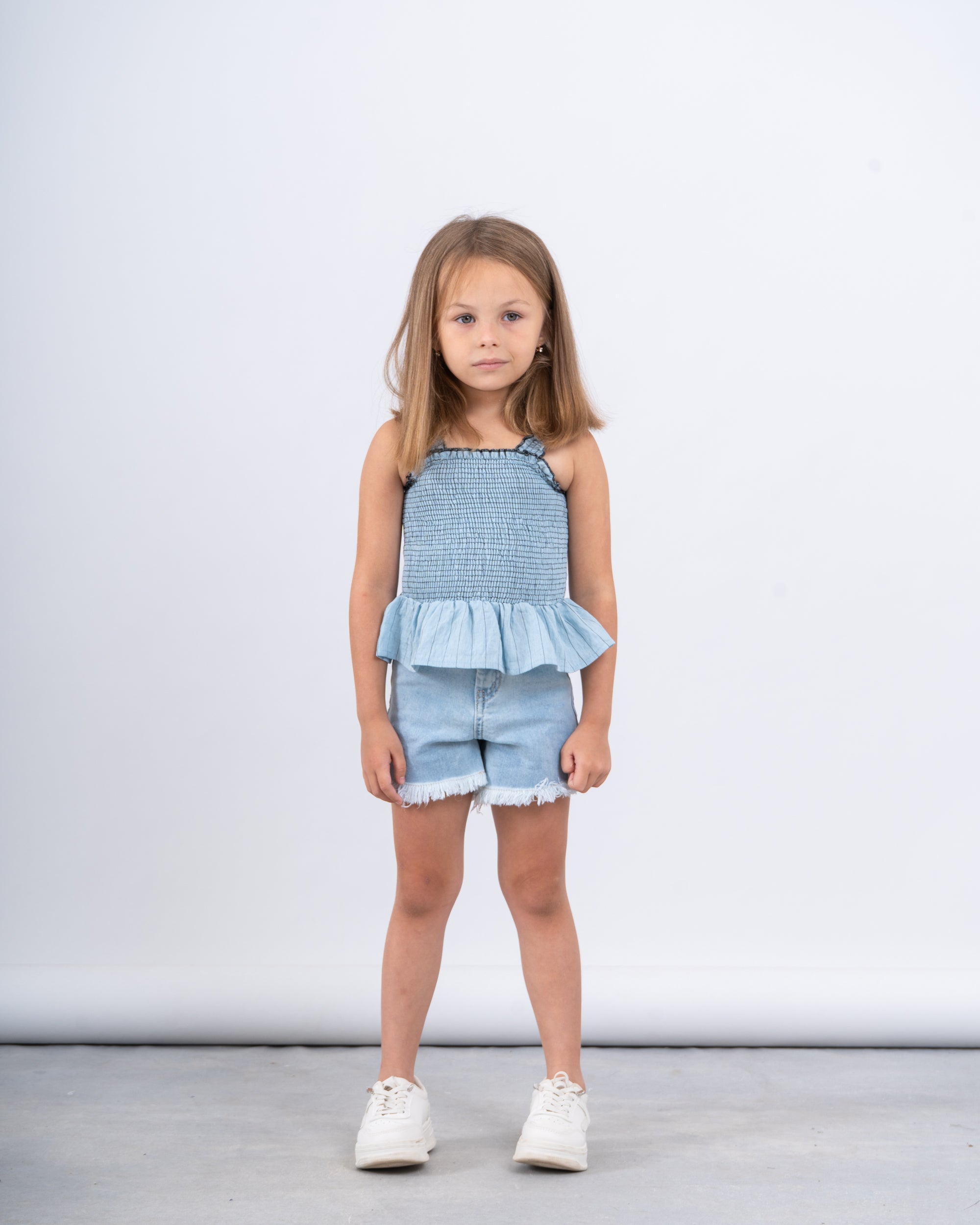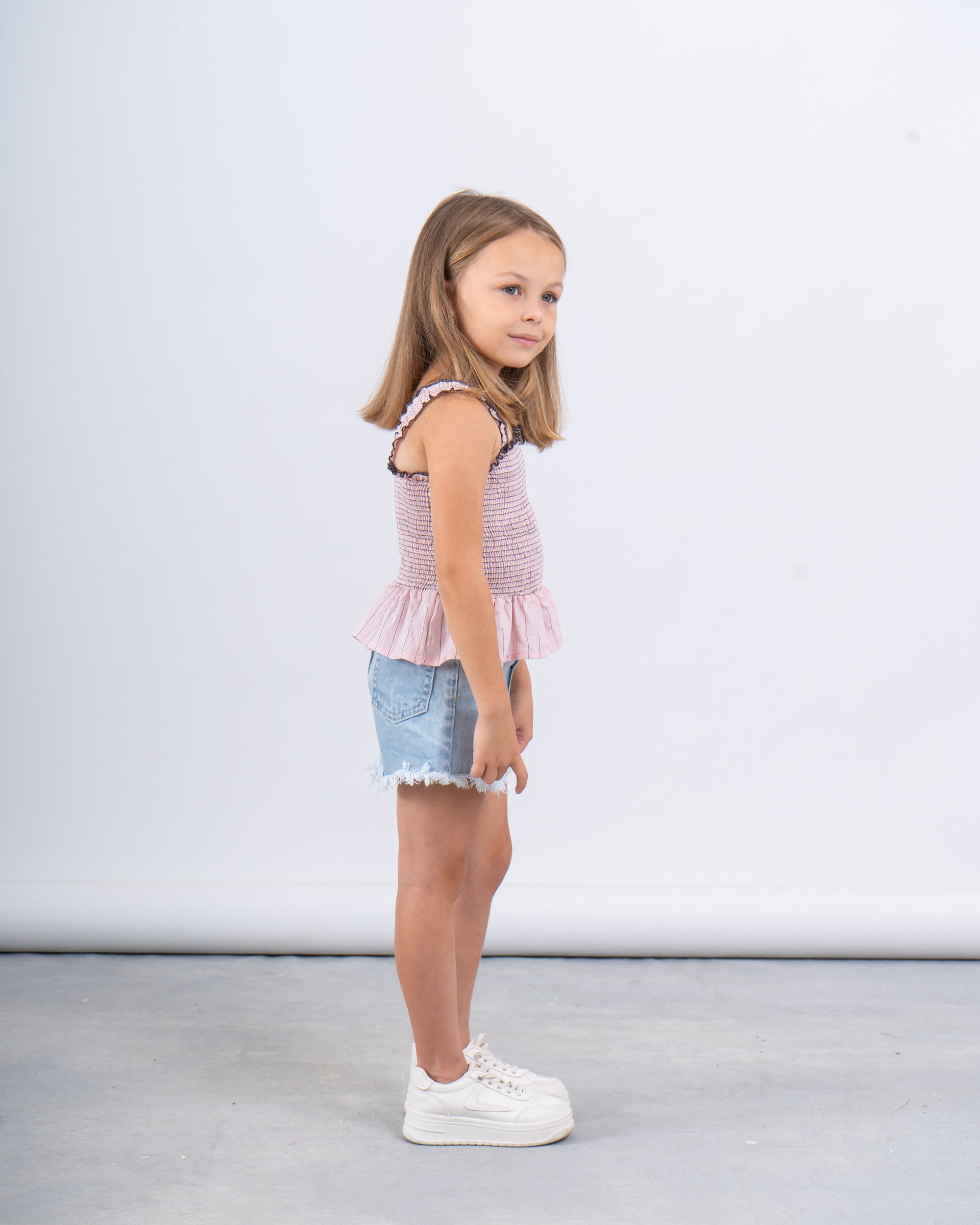 A cute and breezy top perfect for sunny days. Designed with a smocked bodice for a snug, comfortable fit and finished with a playful peplum hem for extra movement and charm.
