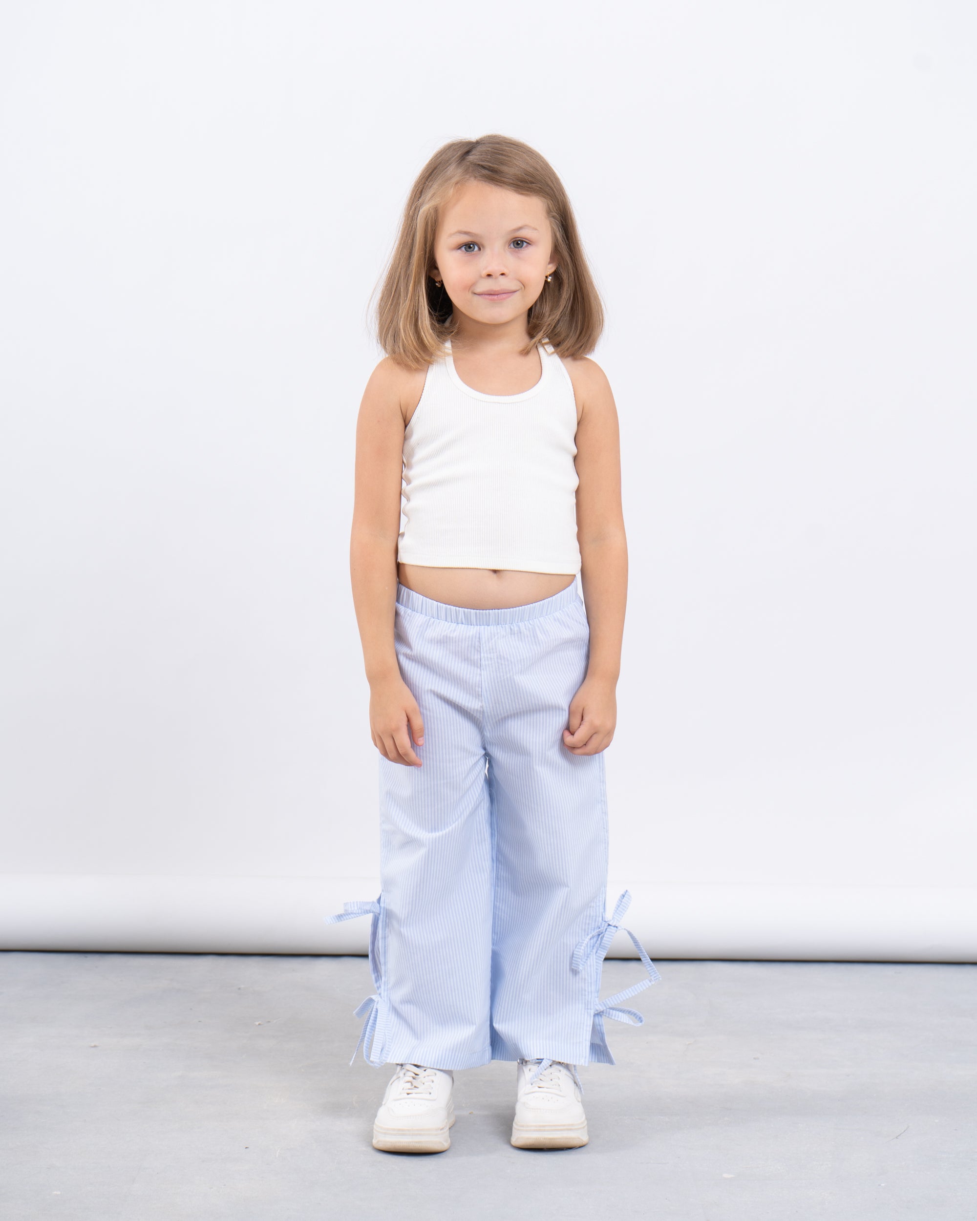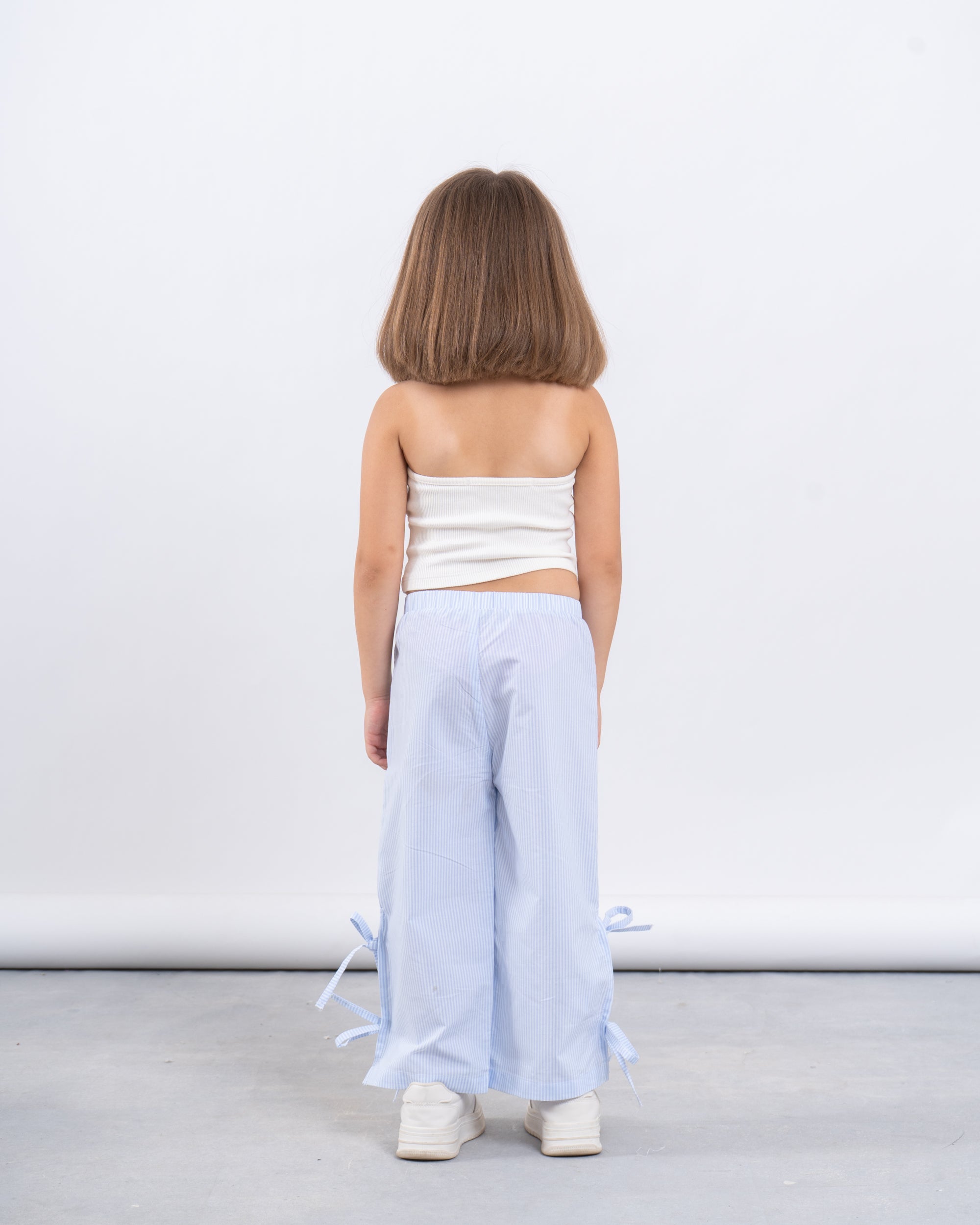 Laid-back and effortlessly cool. These wide-leg pants come in a soft striped fabric and feature playful side slits with bow tie details. A comfy, standout piece to style with tanks, tees, or crop tops all season long.