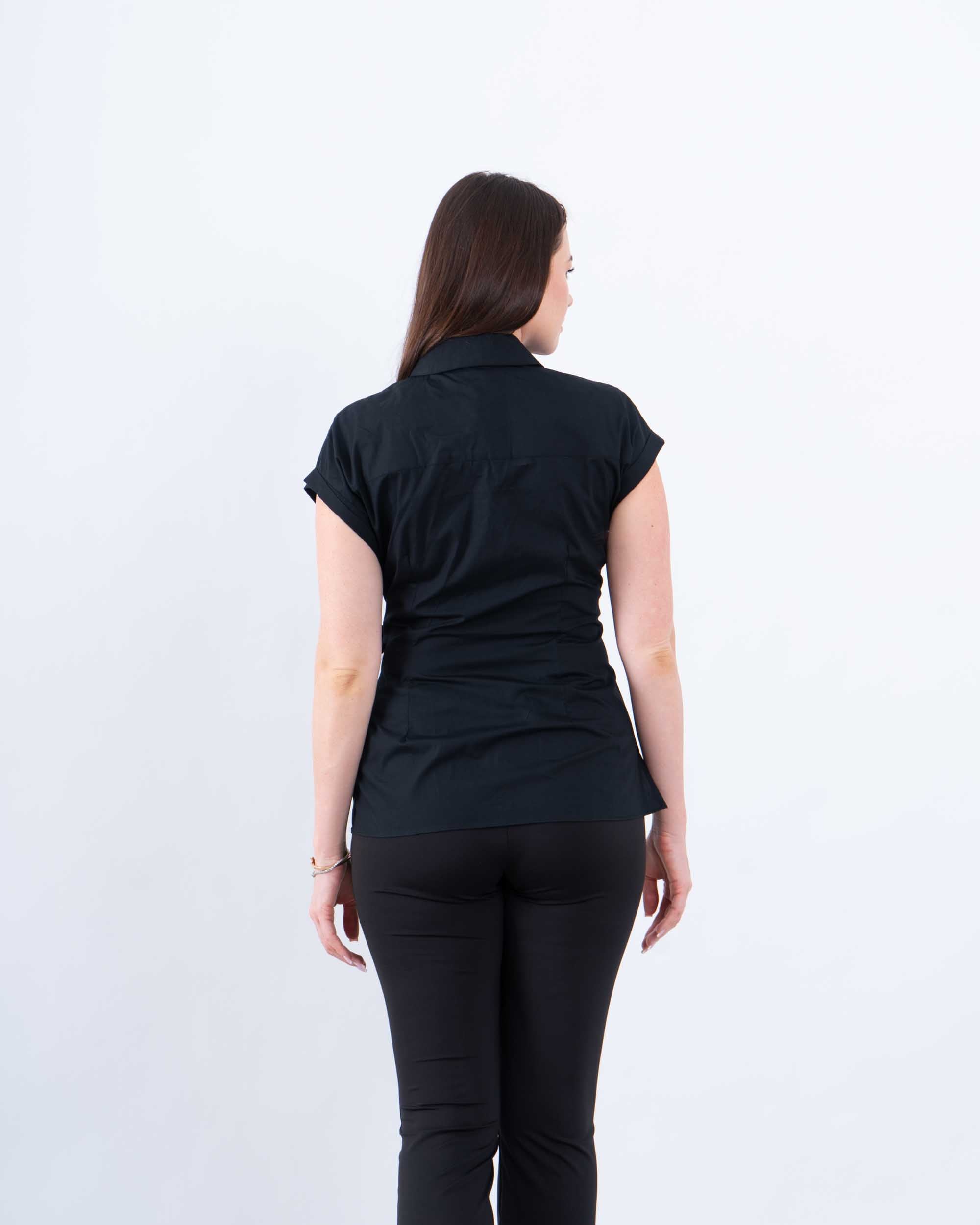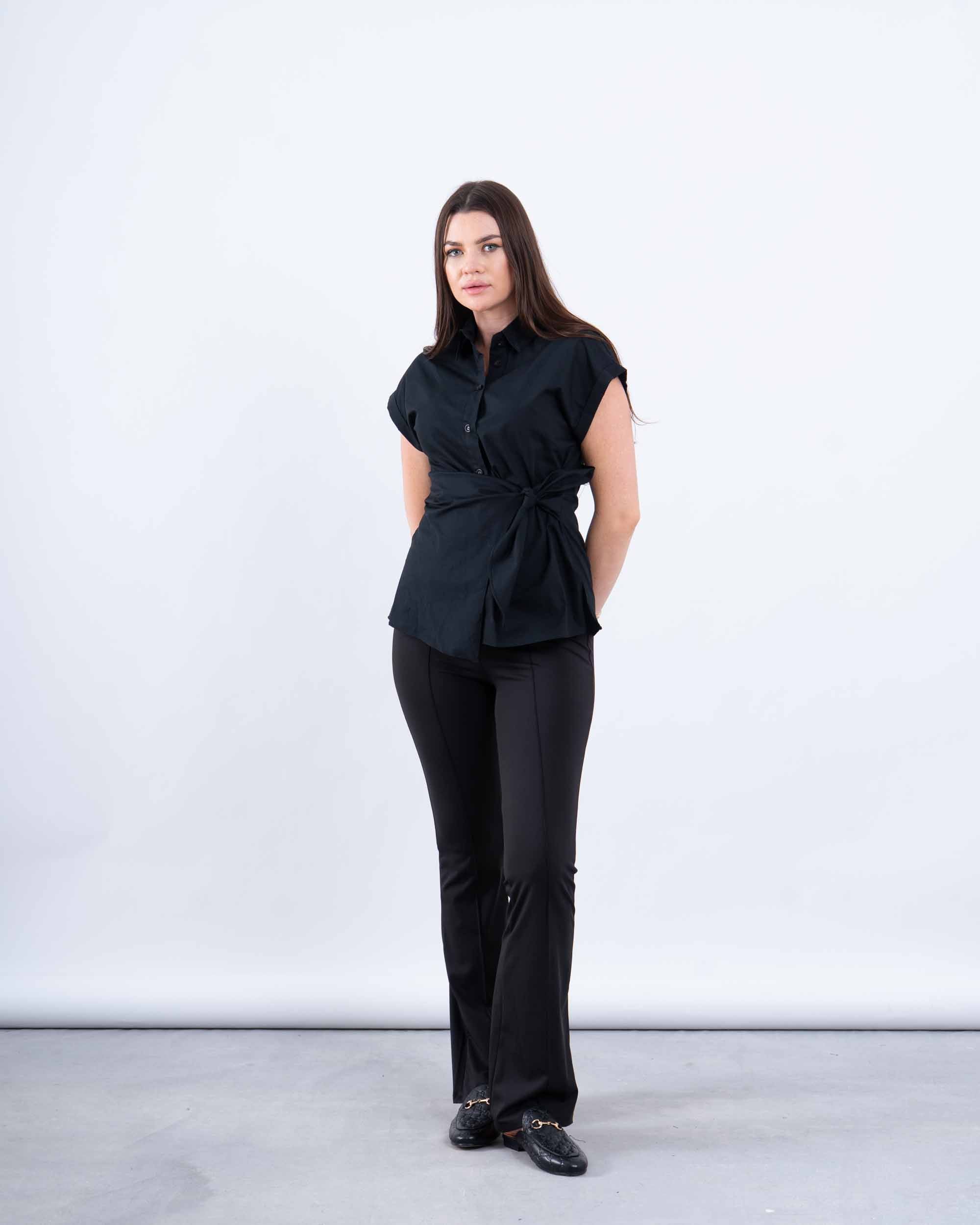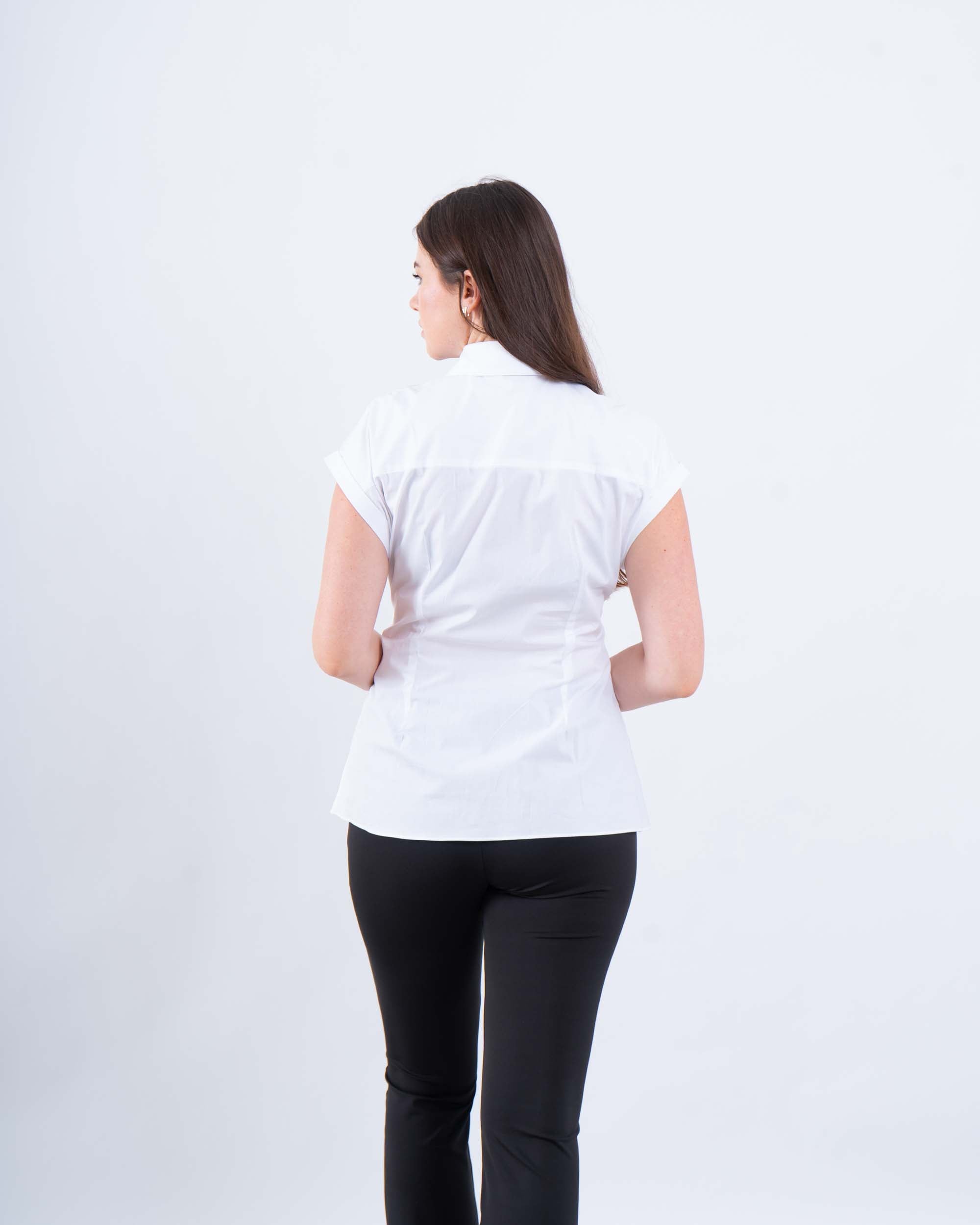 A modern twist on the classic shirt. This crisp poplin top features cap sleeves, a structured button-down front, and an adjustable waist tie for a flattering silhouette. An effortlessly chic essential for workdays or evenings out.