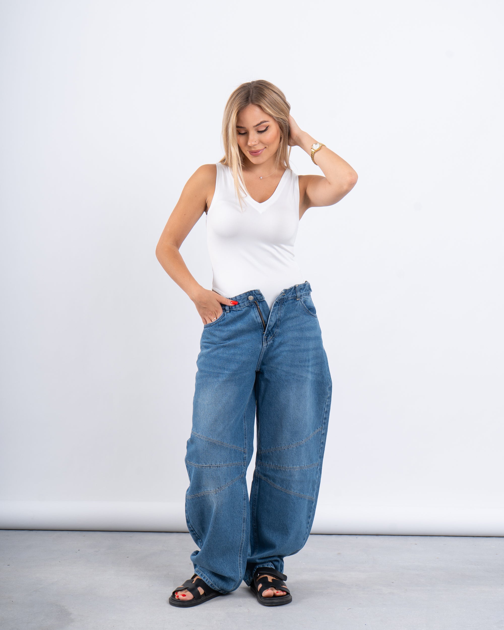An essential piece for every wardrobe, this V-neck fitted bodysuit is designed to hug your curves for a sleek and flattering look. Perfect for layering or styling on its own, it’s the ultimate everyday basic.