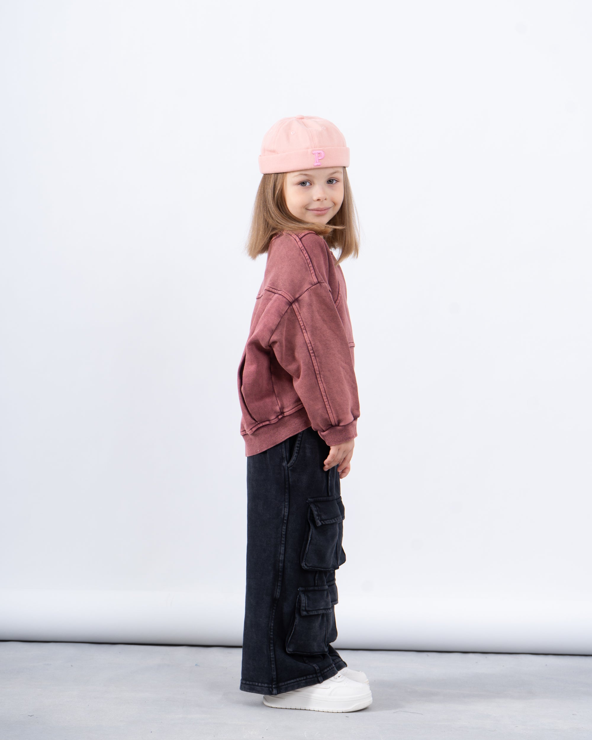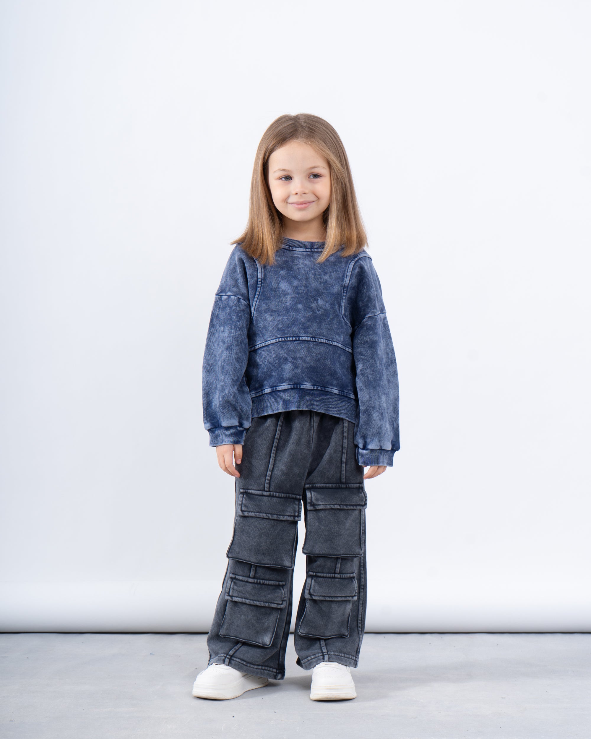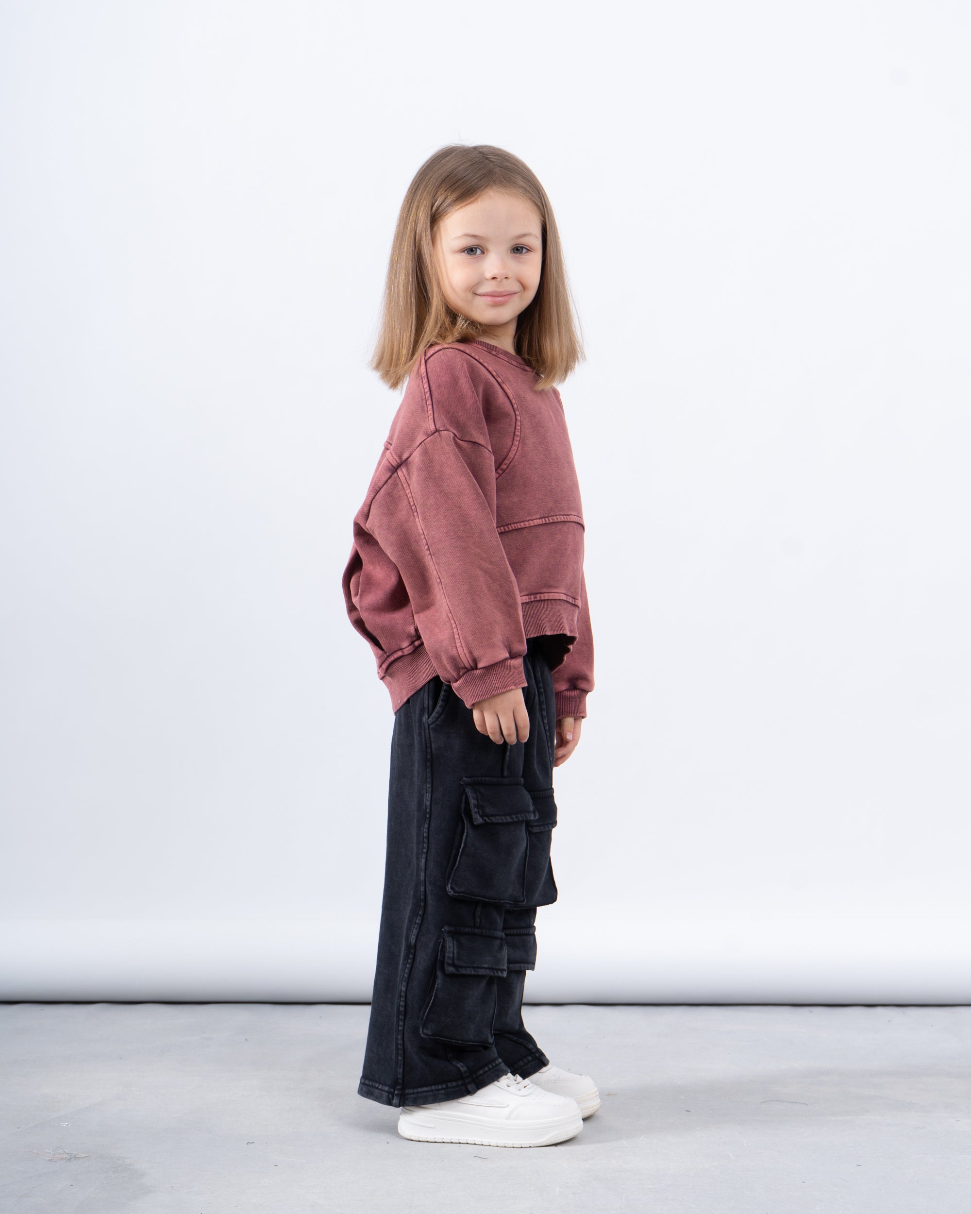 A comfy everyday sweatshirt with a twist. Designed with exposed seam detailing and a washed finish, this piece brings a casual, lived-in feel to your kid’s wardrobe.