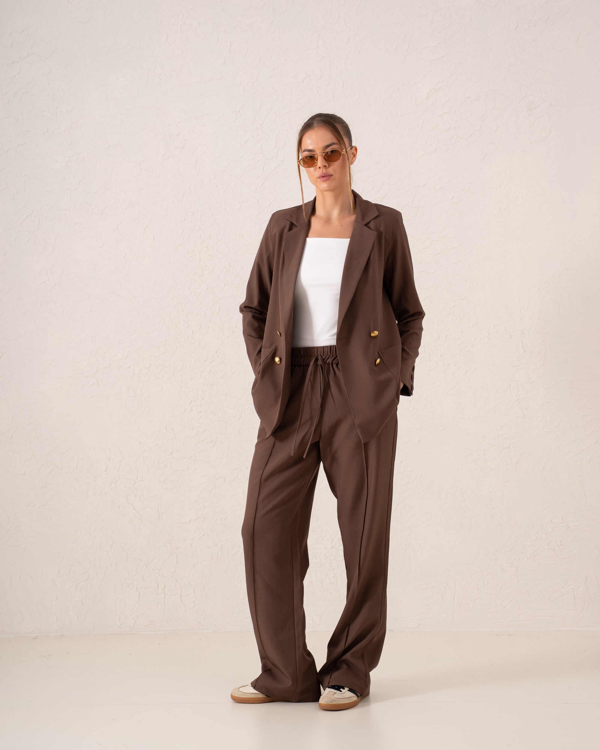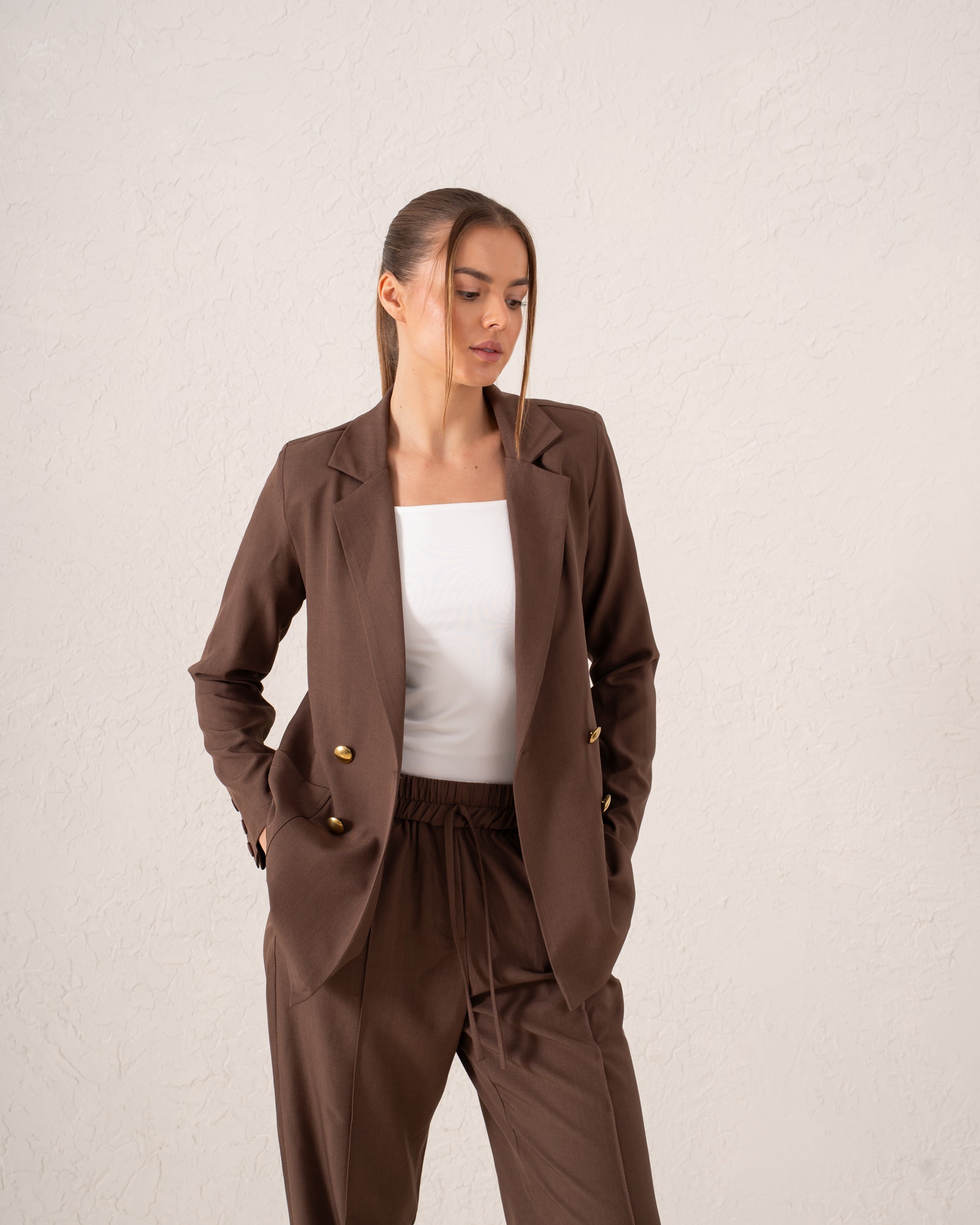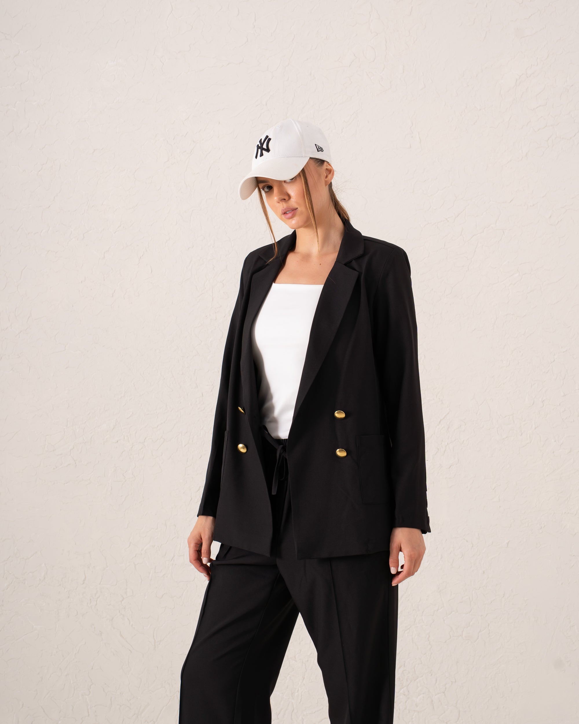 A polished yet easygoing blazer with a relaxed silhouette and elevated gold button details. Perfect for everyday power dressing or casual chic styling.