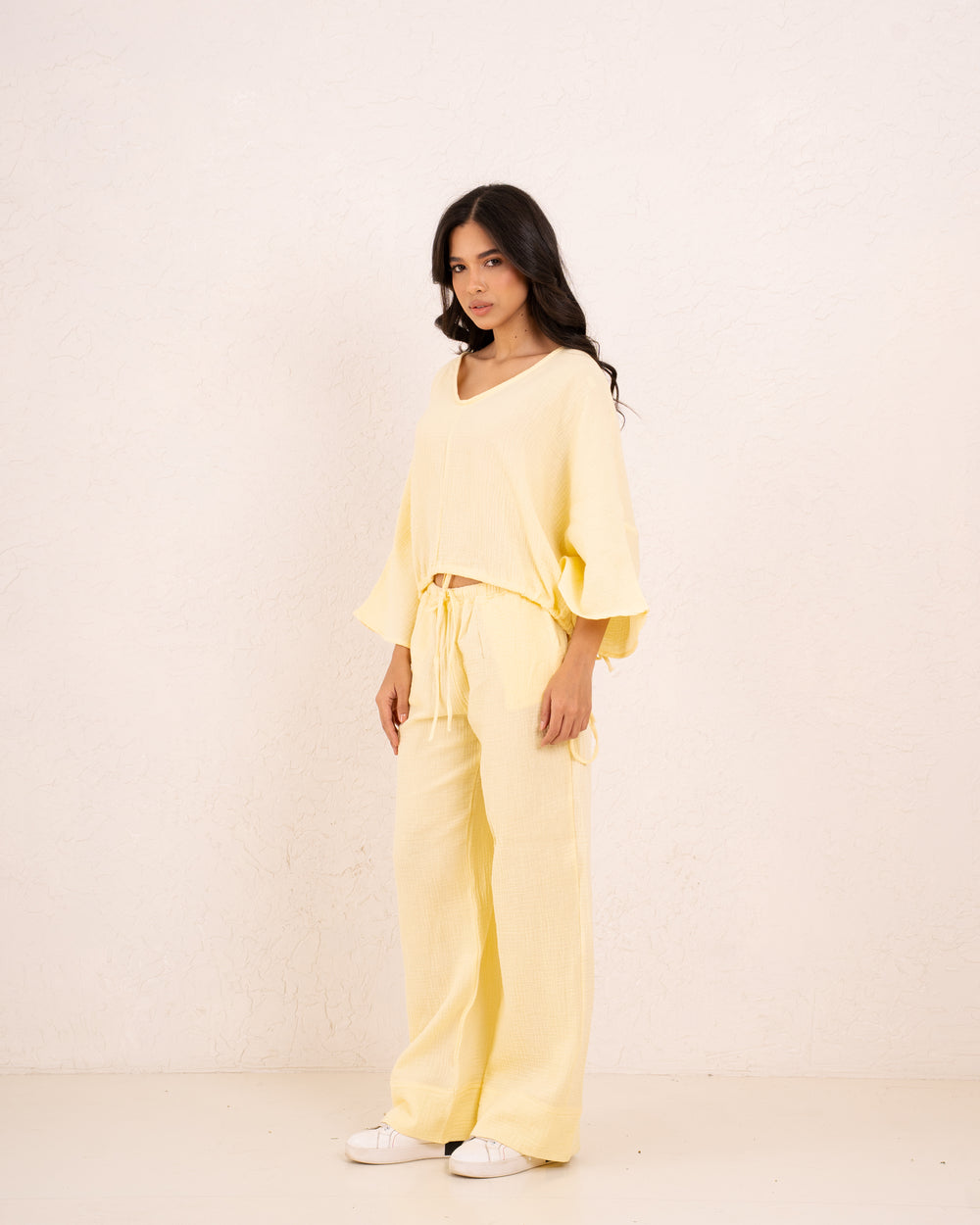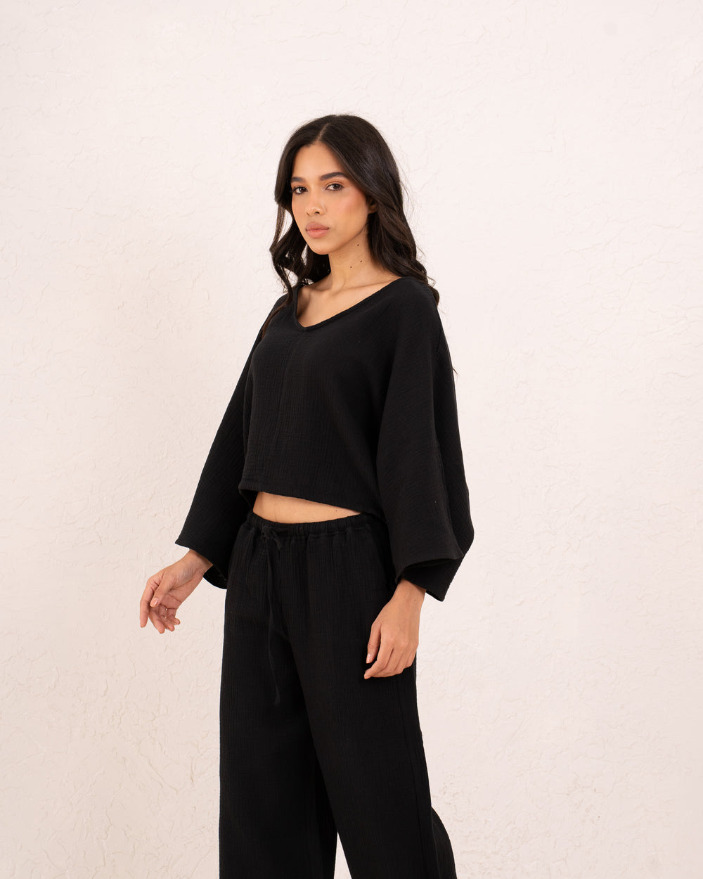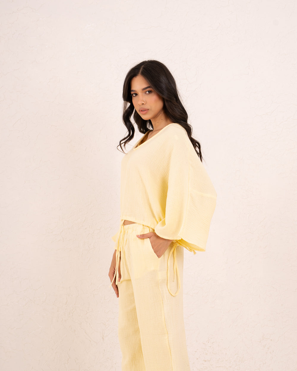 — Styling: Style it as a complete set with our matching textured low-waist pants for a chic, coordinated look Pair with minimal leather slides or sneakers for an effortless day look