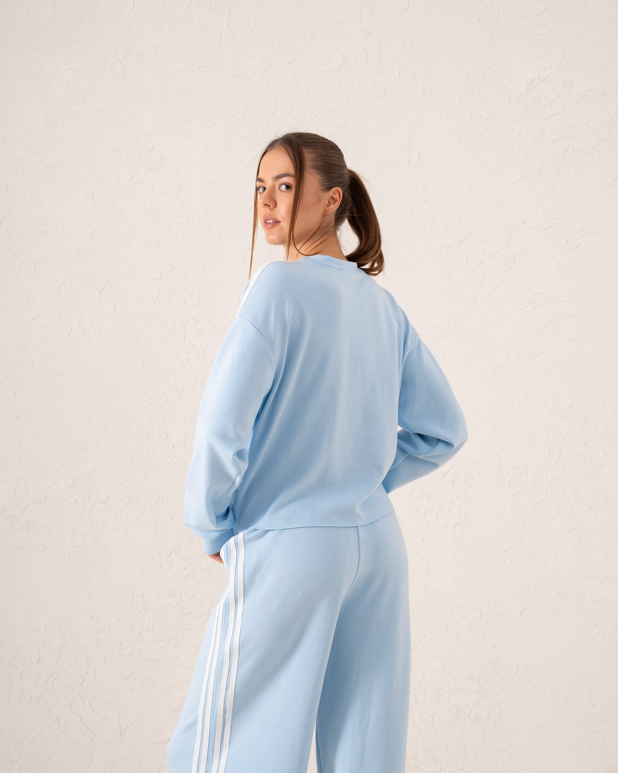 Effortless and cool, this oversized sweatshirt features a trendy front knot detail and sporty contrast side stripes — the ultimate off-duty essential.