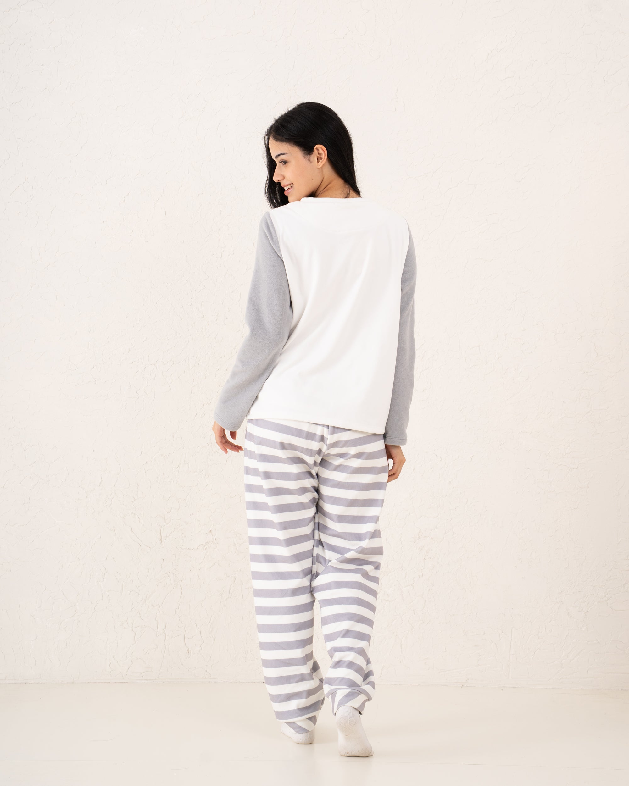 A warm and comfortable fleece pajama set designed for cozy nights and relaxed mornings. Crafted from soft fleece, this set keeps you comfortably warm without bulk, making it ideal for sleeping, lounging, and matching effortlessly with your little one.