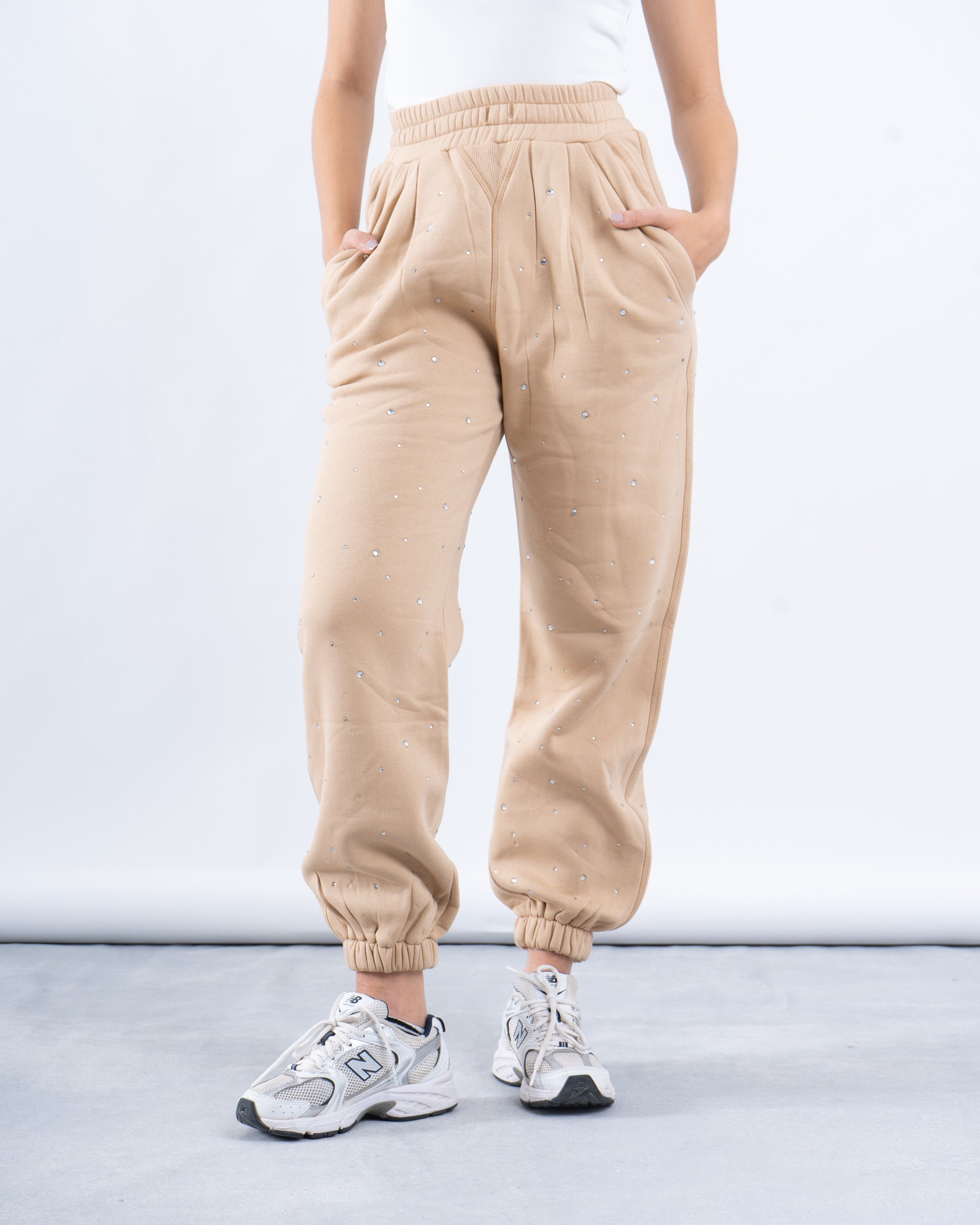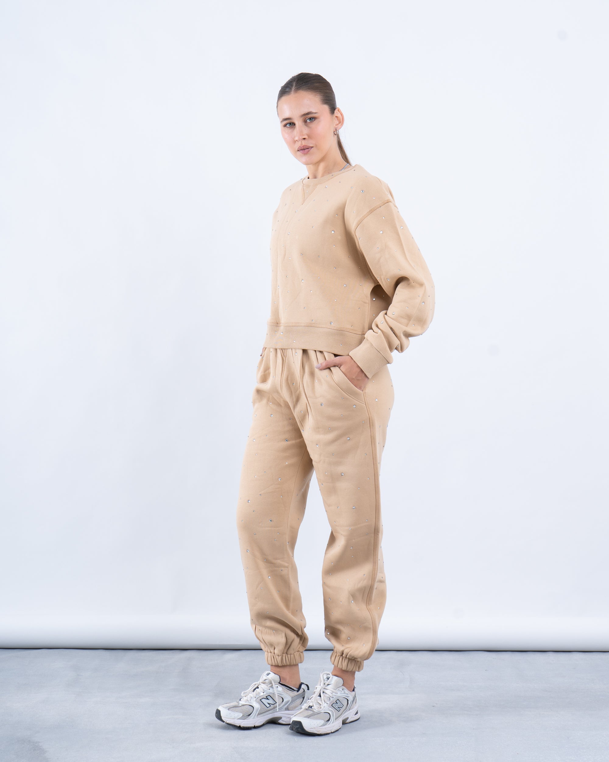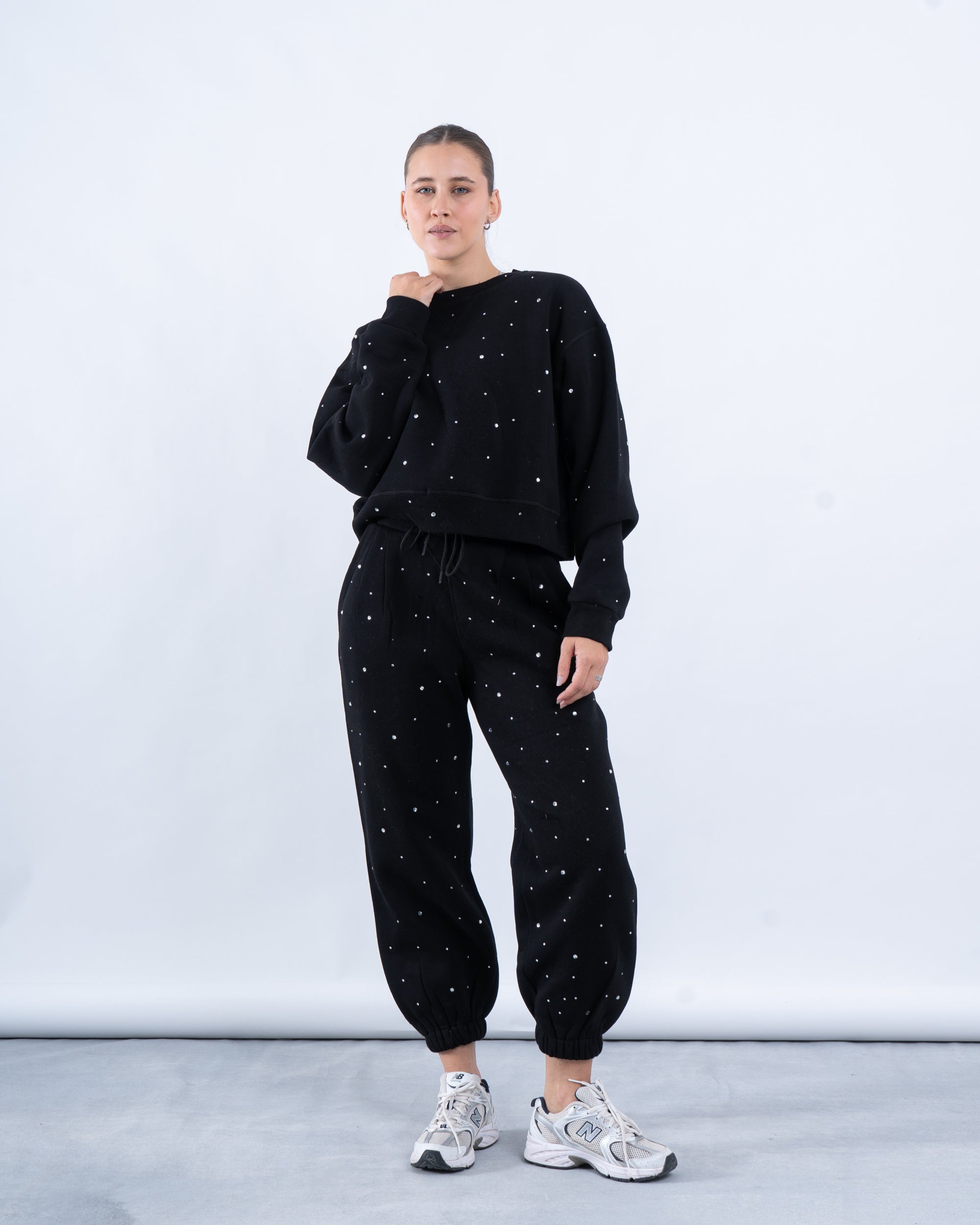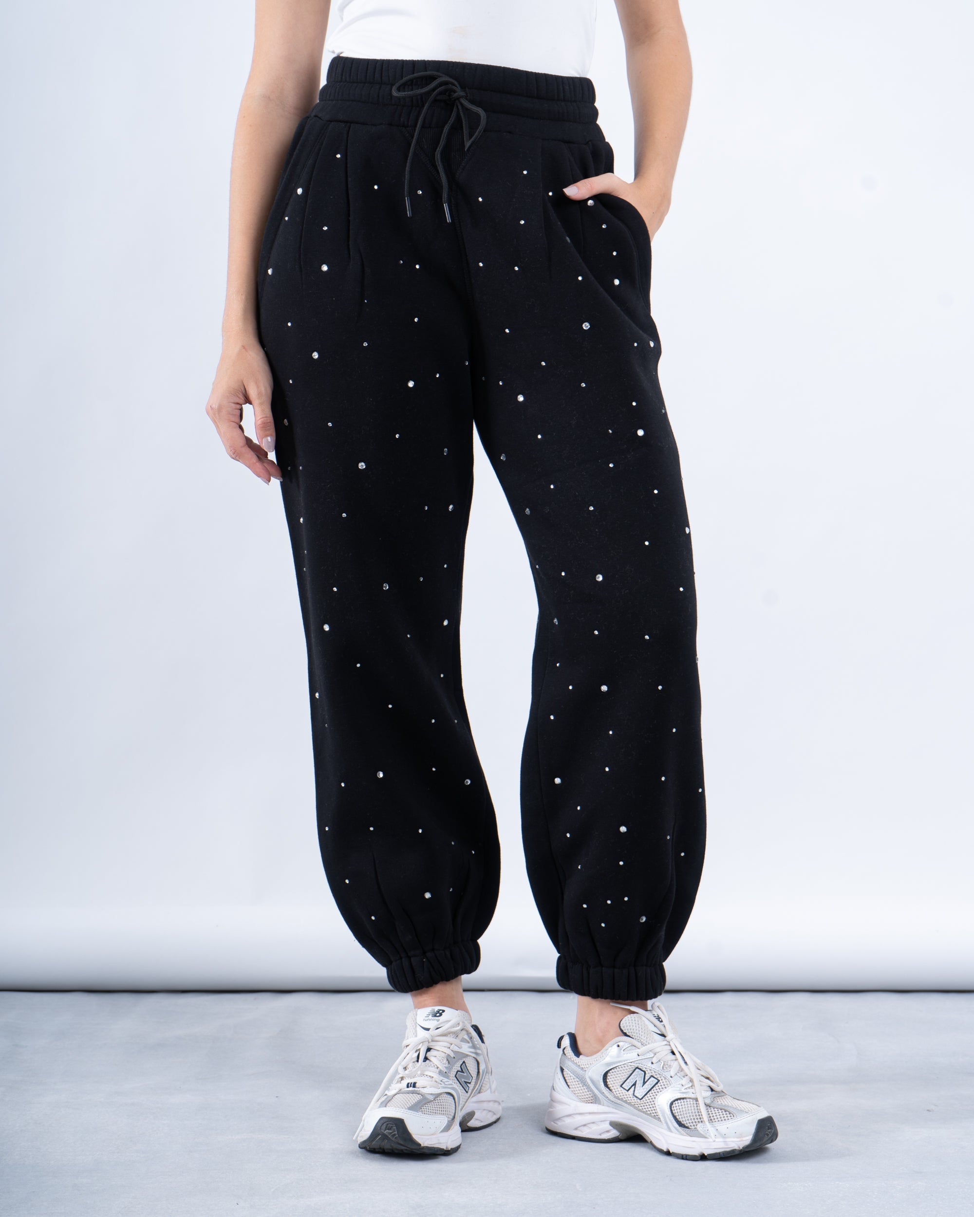 Add a touch of sparkle to your outfits with these rhinestone fleece-lined jogger pants. Designed for warmth and comfort, these pants feature a relaxed-fit and matching sweatshirt adorned with delicate rhinestone detailing for a chic, elevated look. The fleece lining provides cozy warmth, making it perfect for colder days while maintaining a stylish edge. Pair with sneakers for a trendy, laid-back vibe.