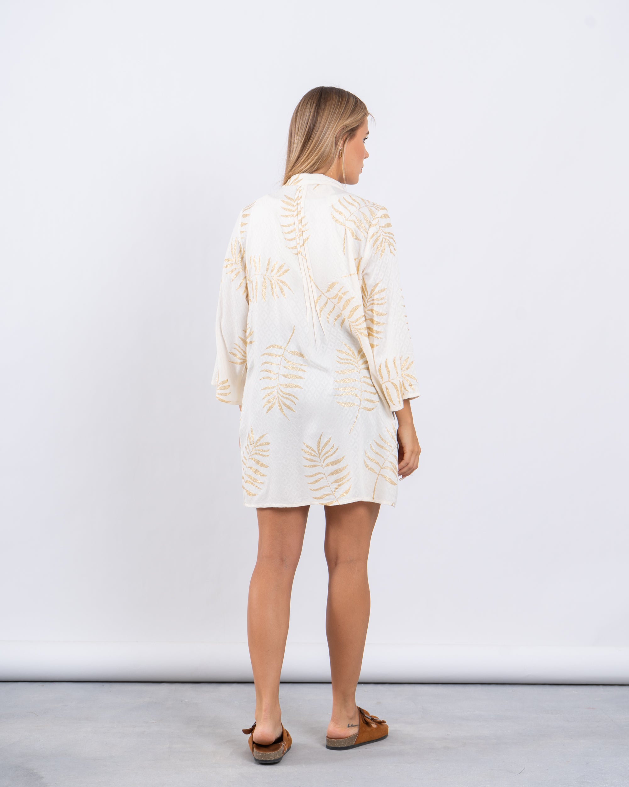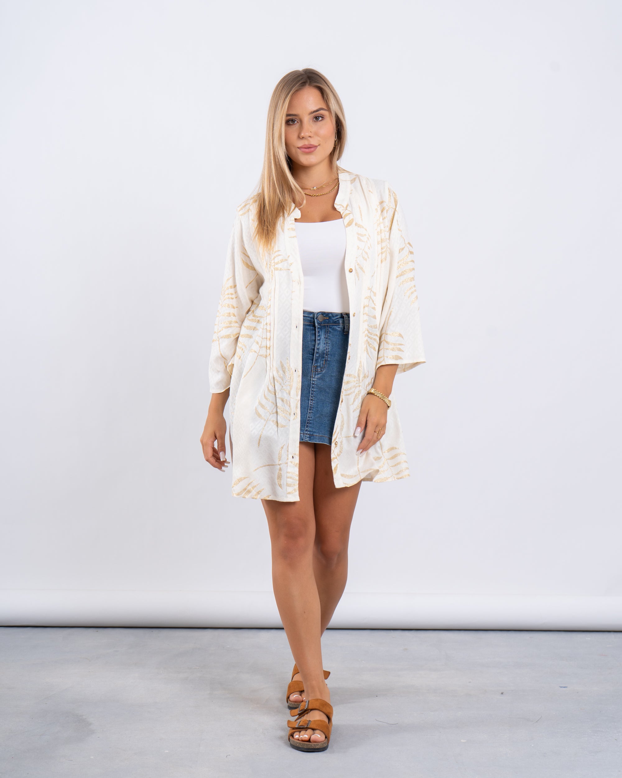 A breezy and versatile printed overshirt designed to adapt to your style. With its relaxed silhouette and subtle shine, it can be worn as an open shirt, a chemise-style dress, or layered over shorts and swimwear for an effortlessly chic look.