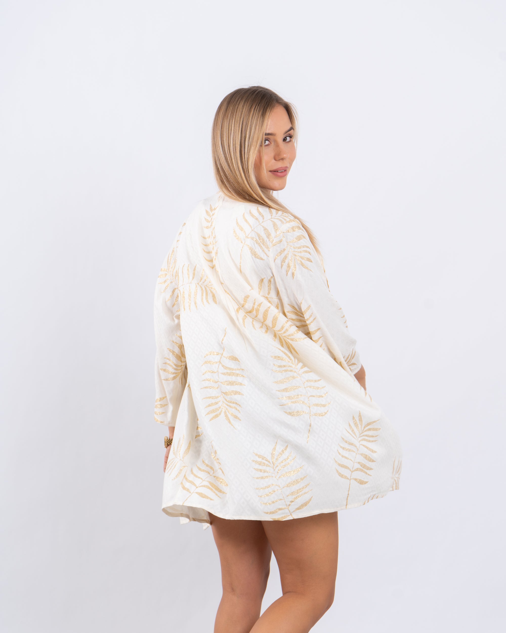 • Details: Button front, dropped shoulders, wide sleeves, elegant printed pattern