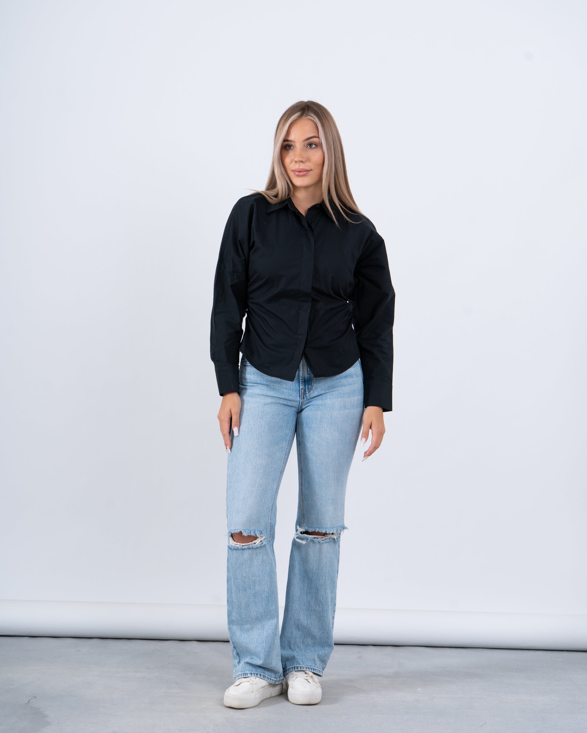 An elevated essential — this shirt has a tailored silhouette enhanced with elegant side ruching that shapes the waist for a feminine, flattering fit. Perfect for pairing with everything from jeans to sleek trousers.