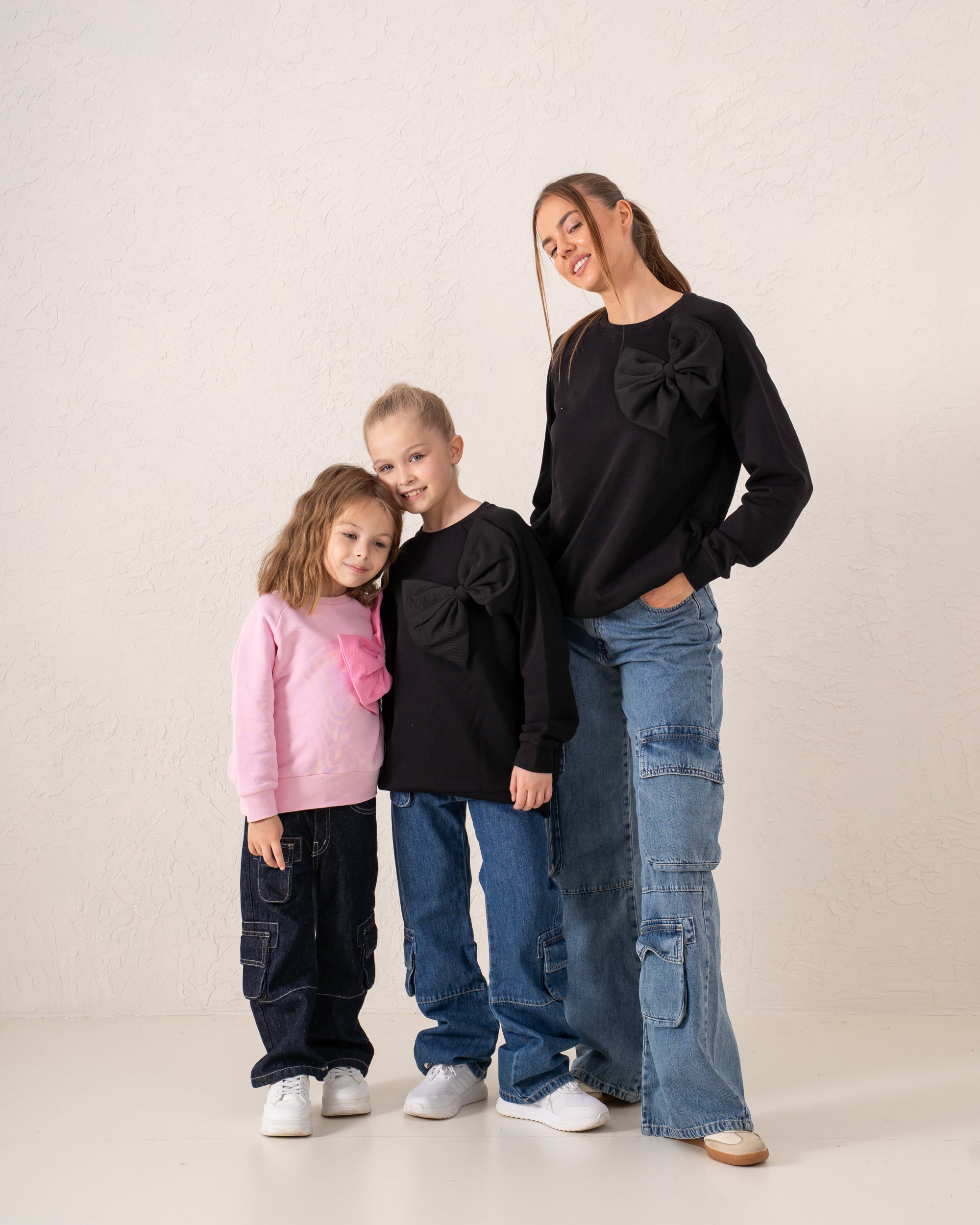 Make an entrance with this bold yet cozy sweatshirt featuring an oversized statement bow. A playful twist on a classic pullover — perfect for matching moments with your mini.