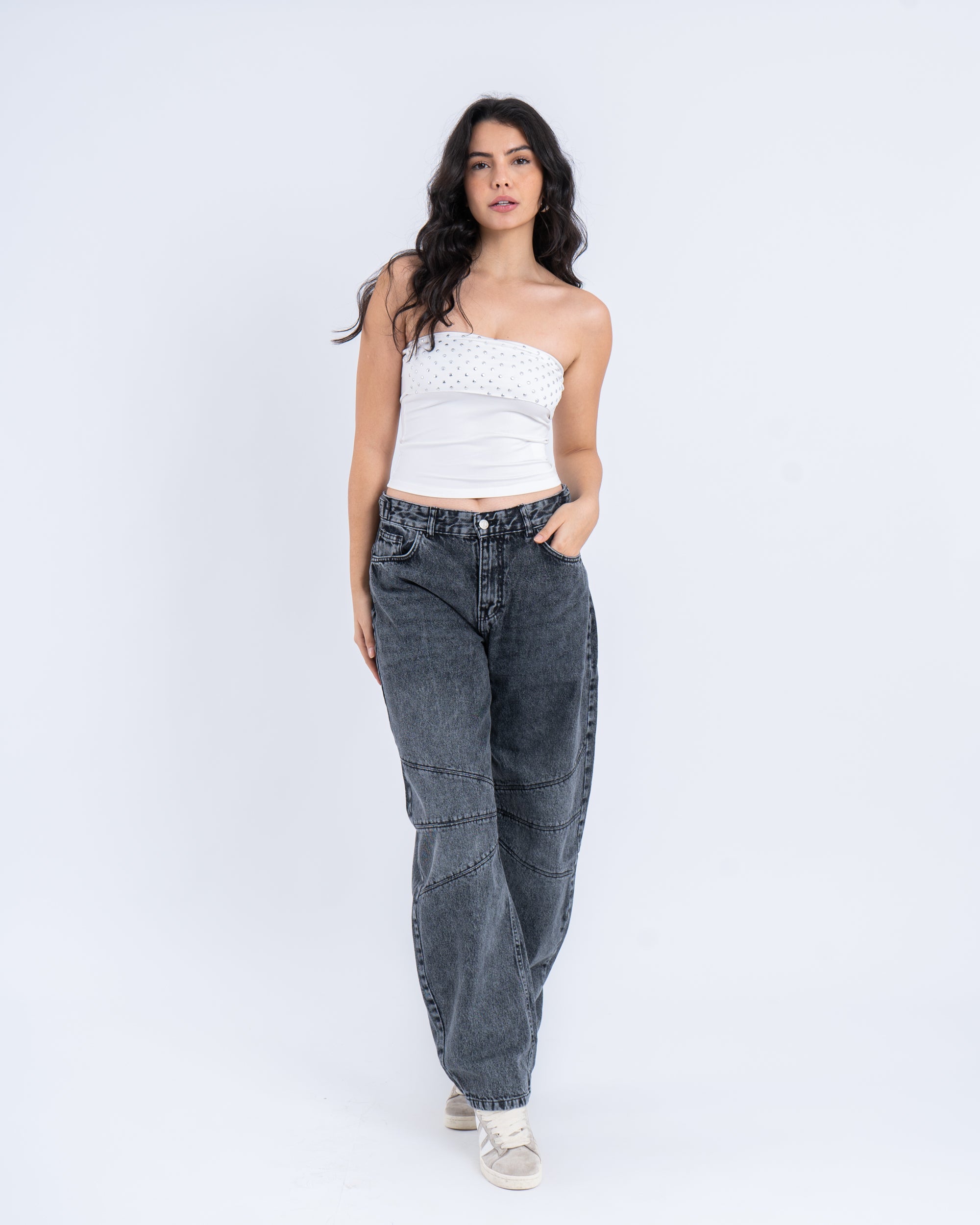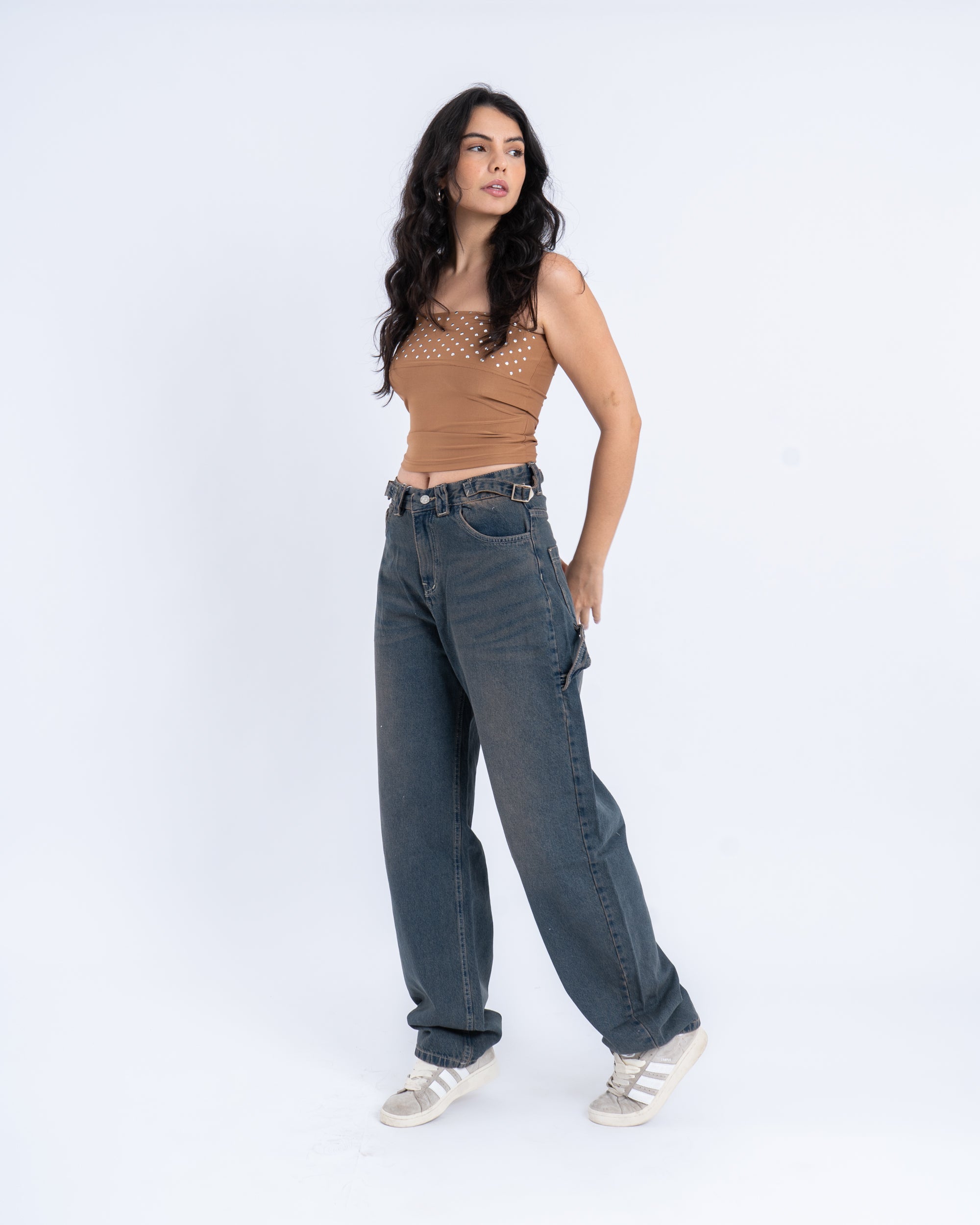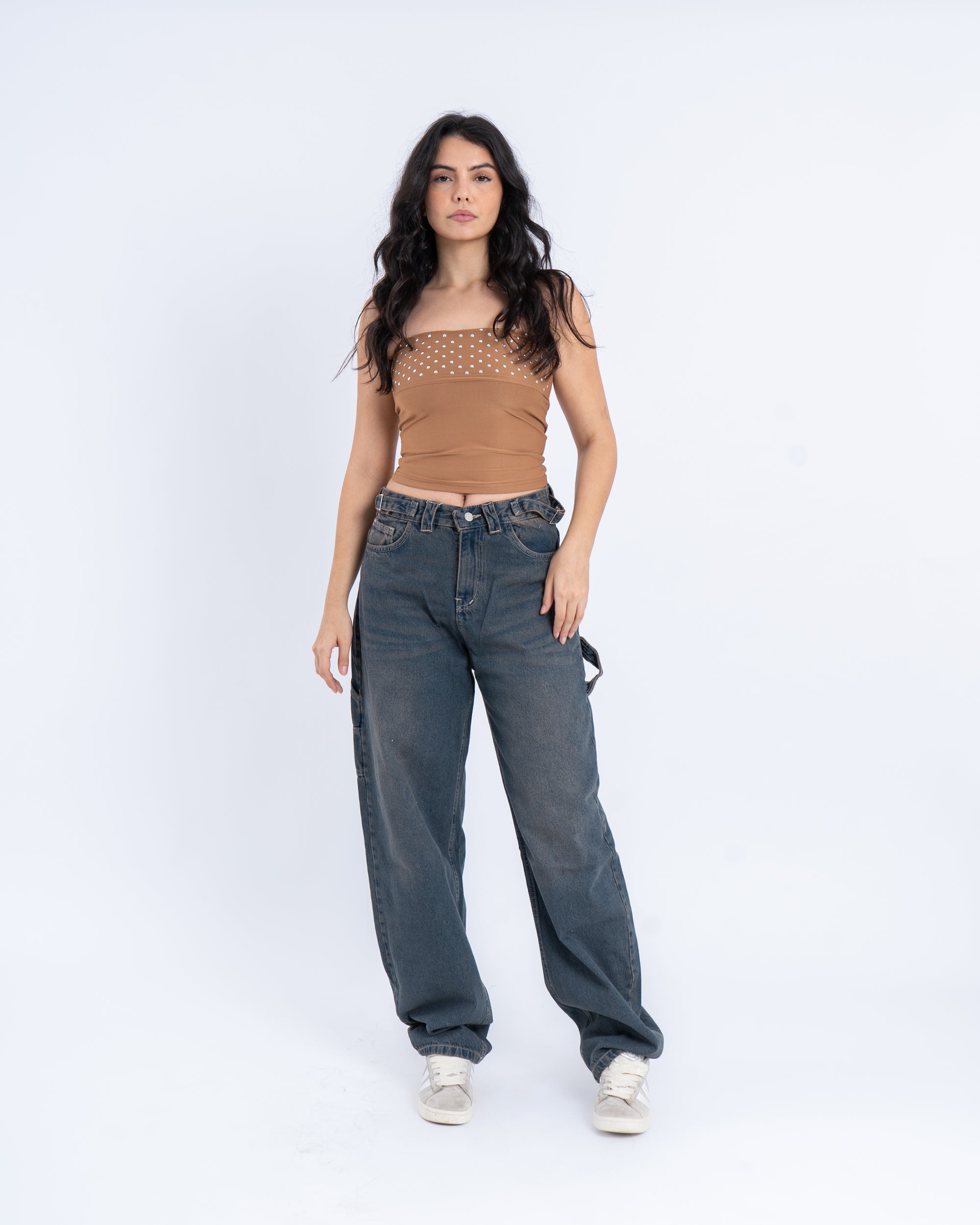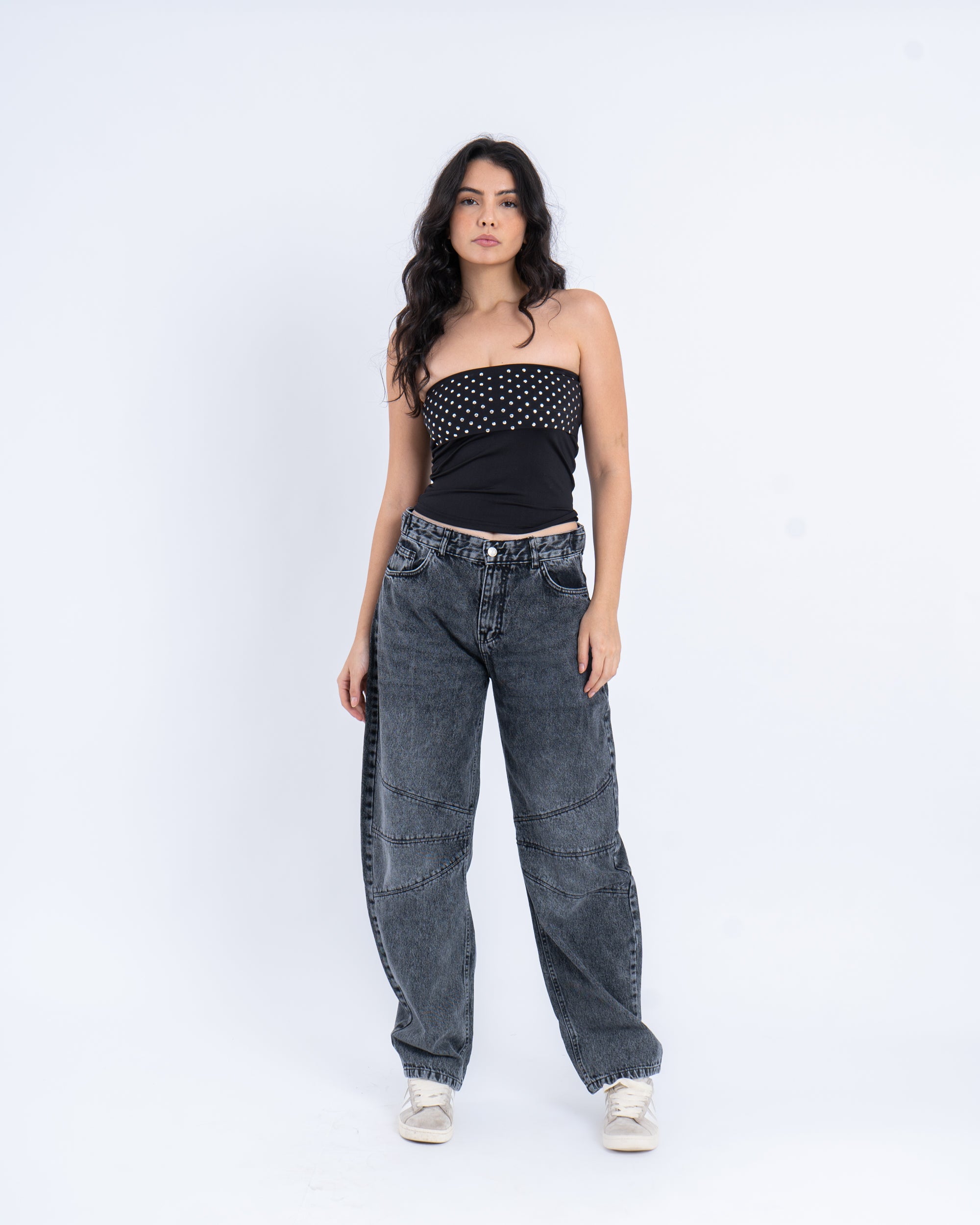 This studded tube top is a versatile and trendy piece, perfect for layering or wearing on its own for a bold statement. The top features delicate studs along the front, adding a touch of sparkle and edge to your outfit. Whether for casual looks or a night out, this top brings effortless style.