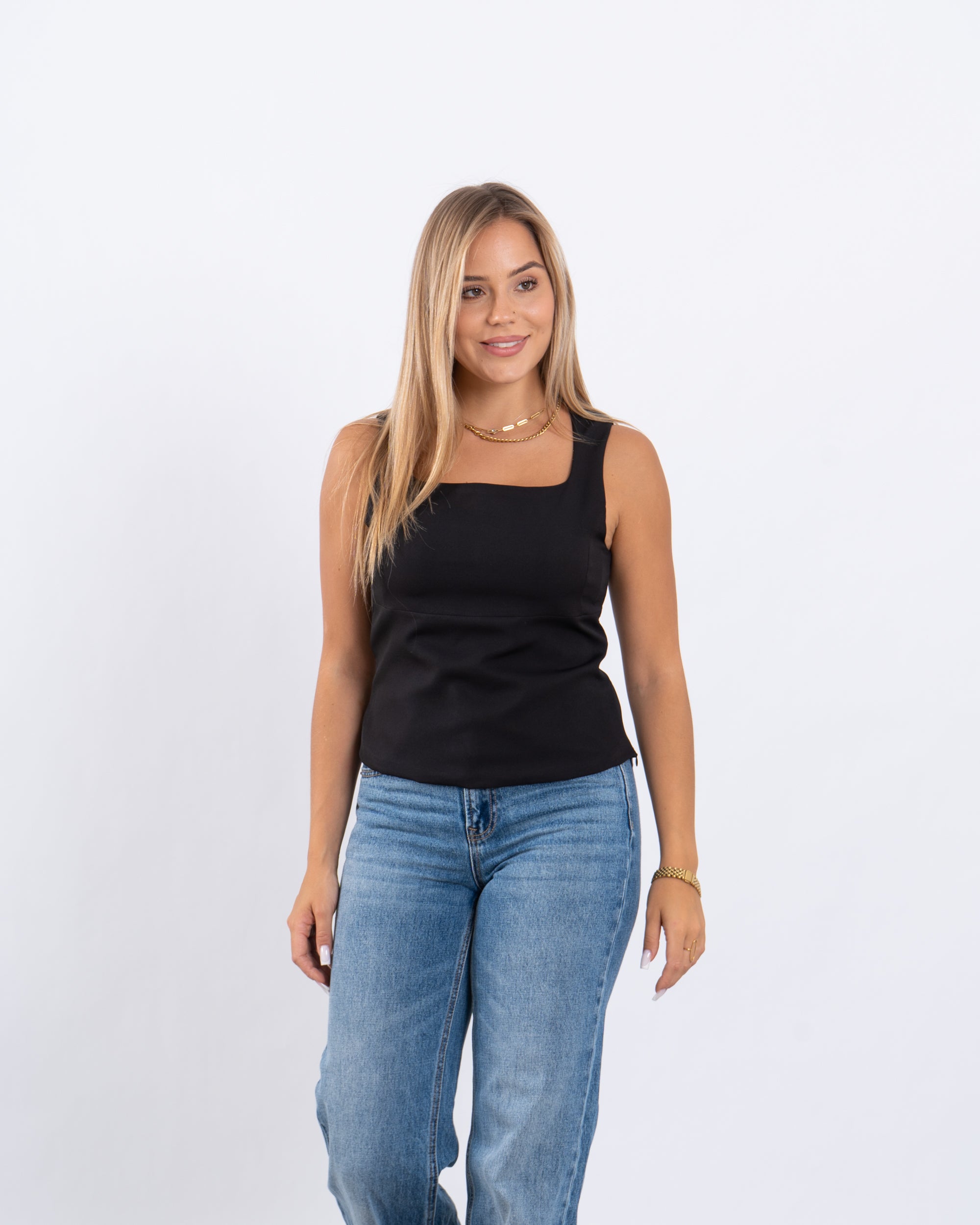 A timeless essential with a flattering silhouette, this structured tank top is crafted from a smooth woven fabric for a polished finish. Perfect for dressing up or down, it’s a versatile piece you’ll reach for all season long.